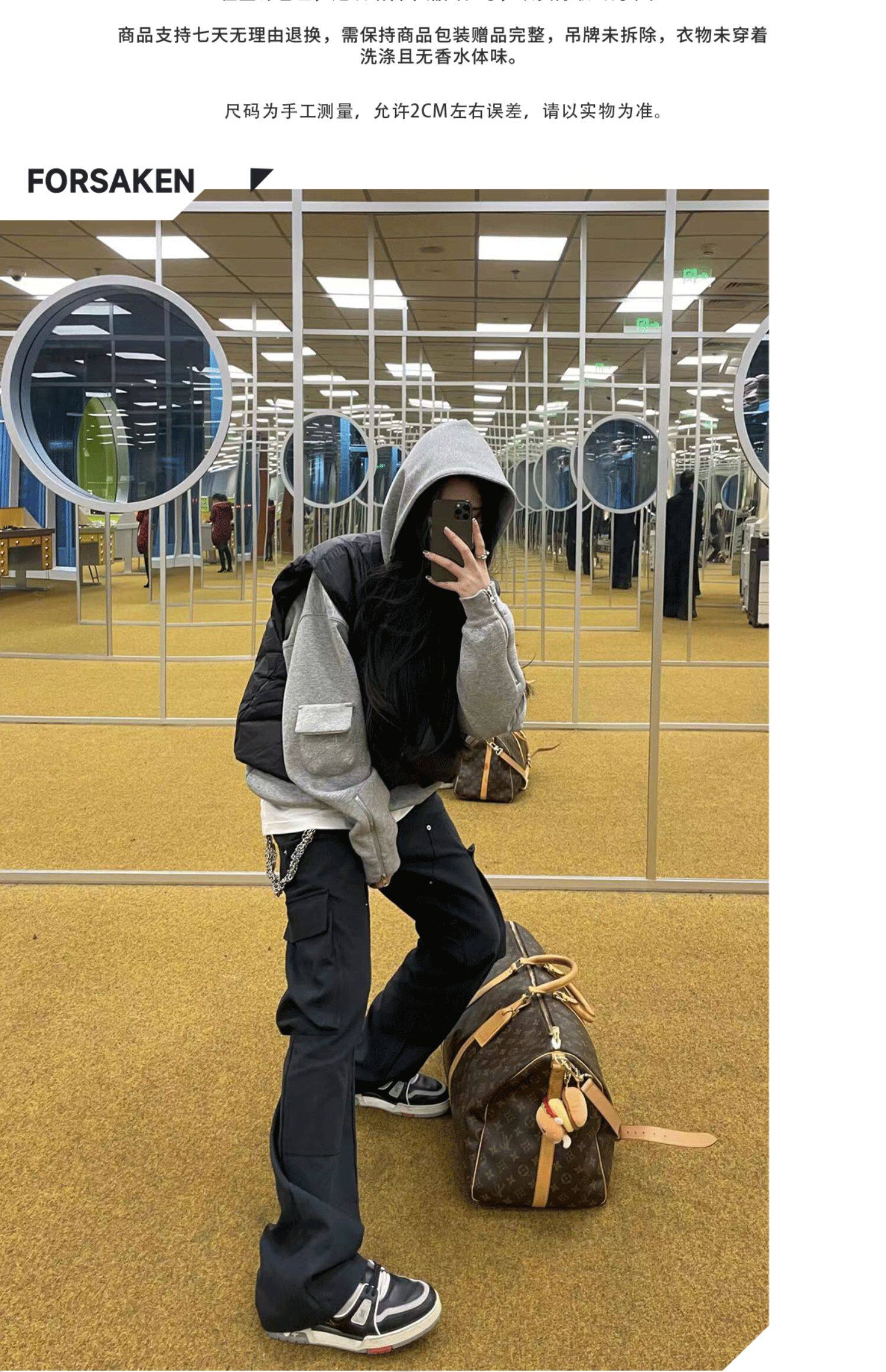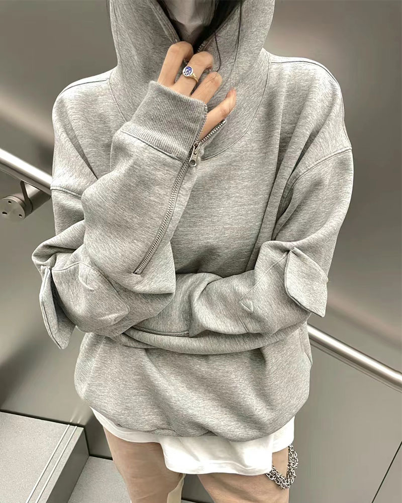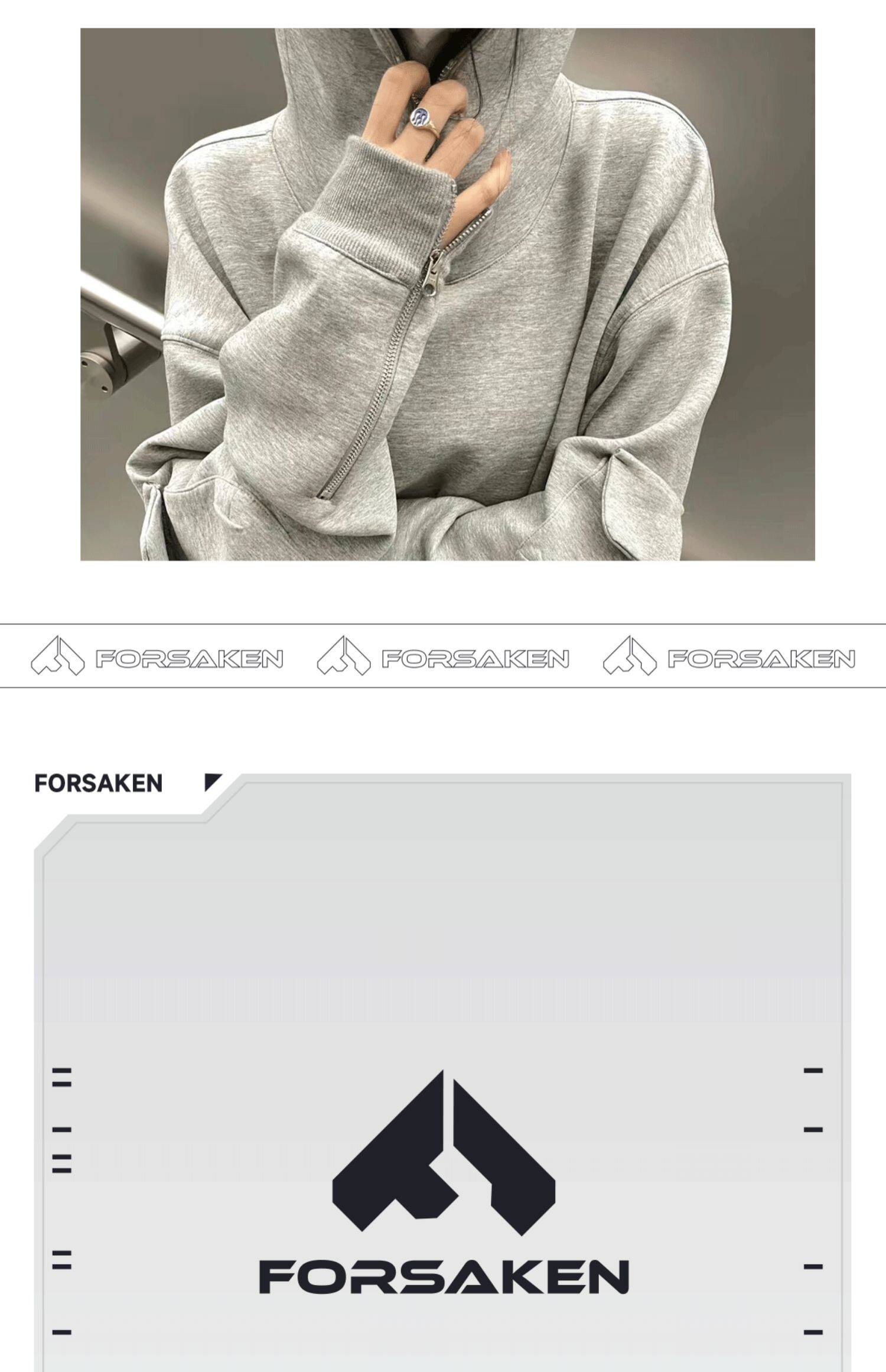 FORSAKEN FSK22AW拉鍊設計灰色寬鬆連帽運動衫cleanfit帽衫vibe風格