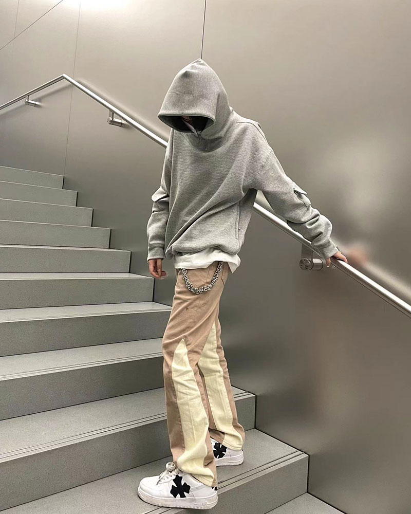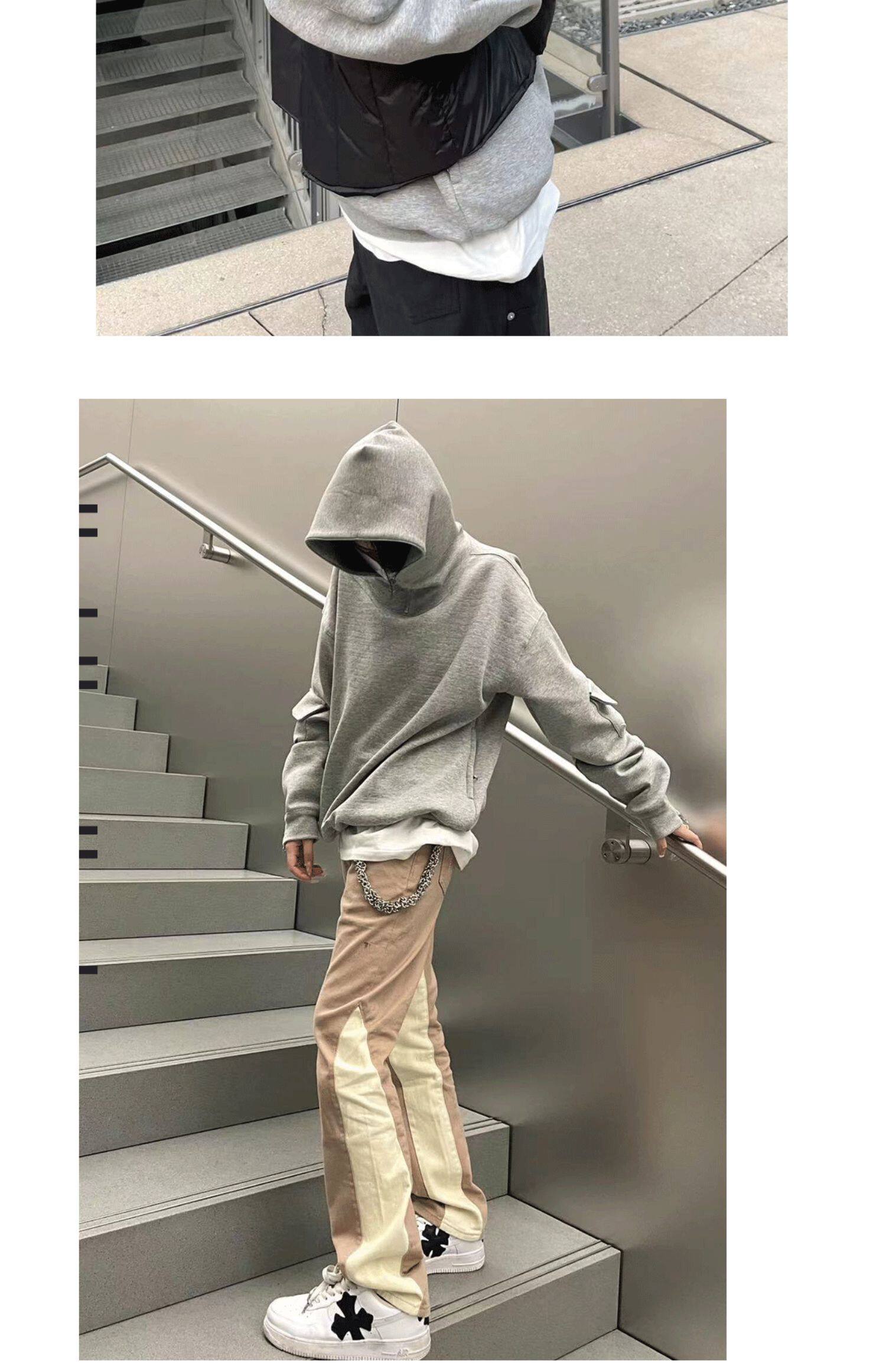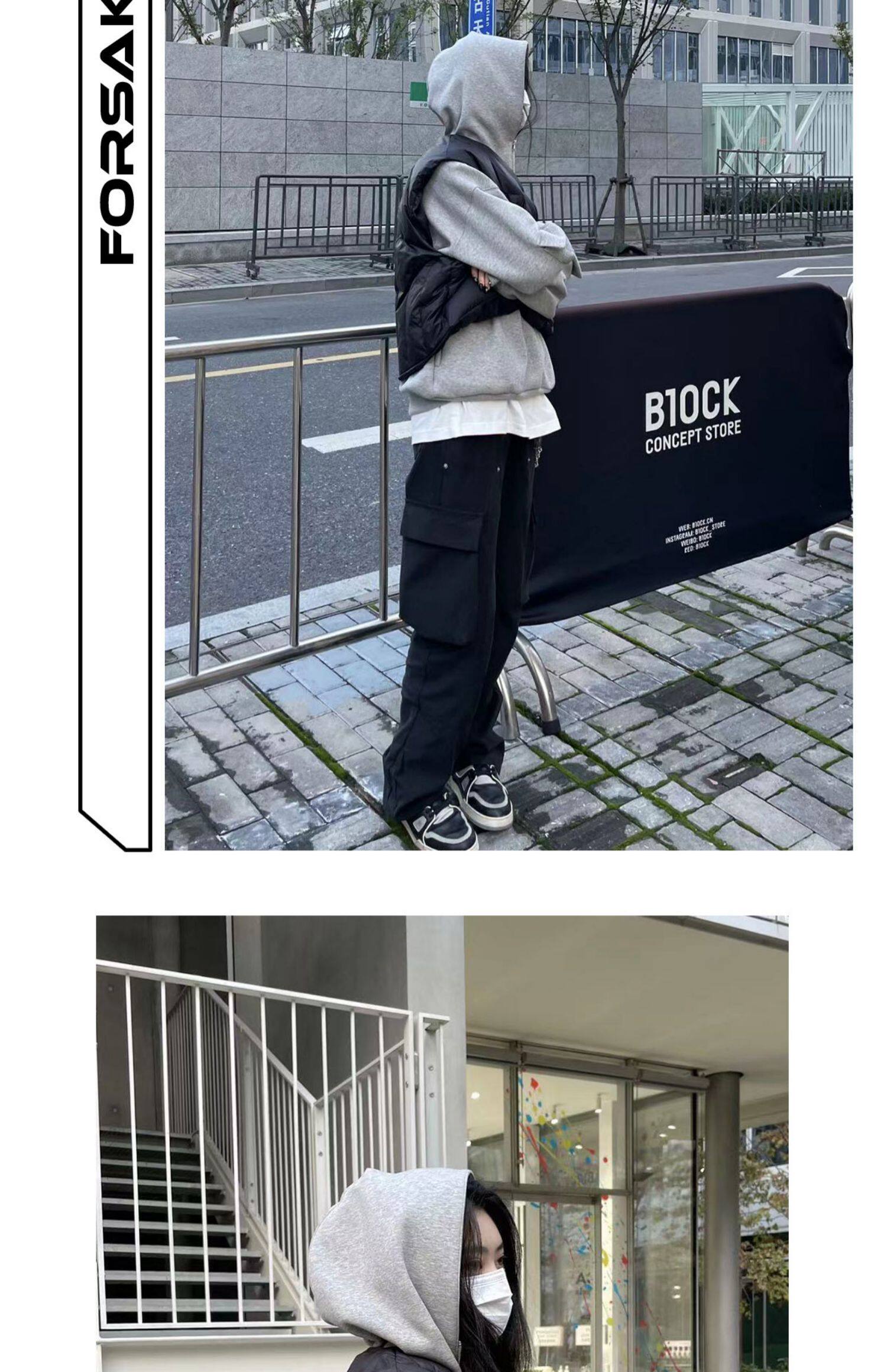 FORSAKEN FSK22AW拉鍊設計灰色寬鬆連帽運動衫cleanfit帽衫vibe風格