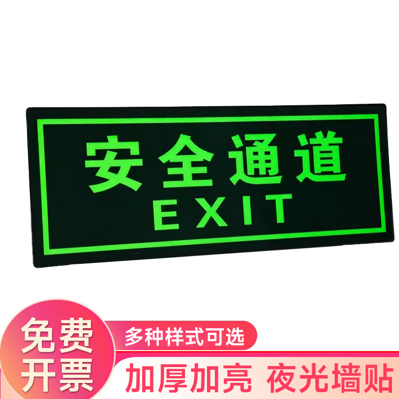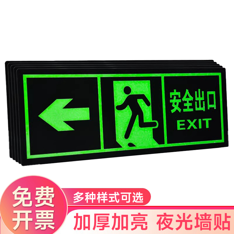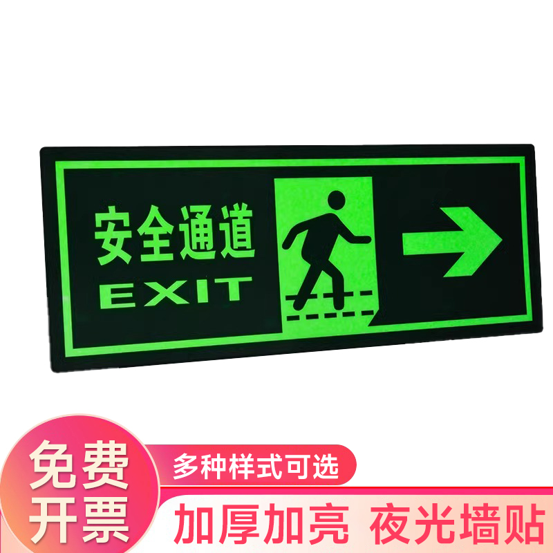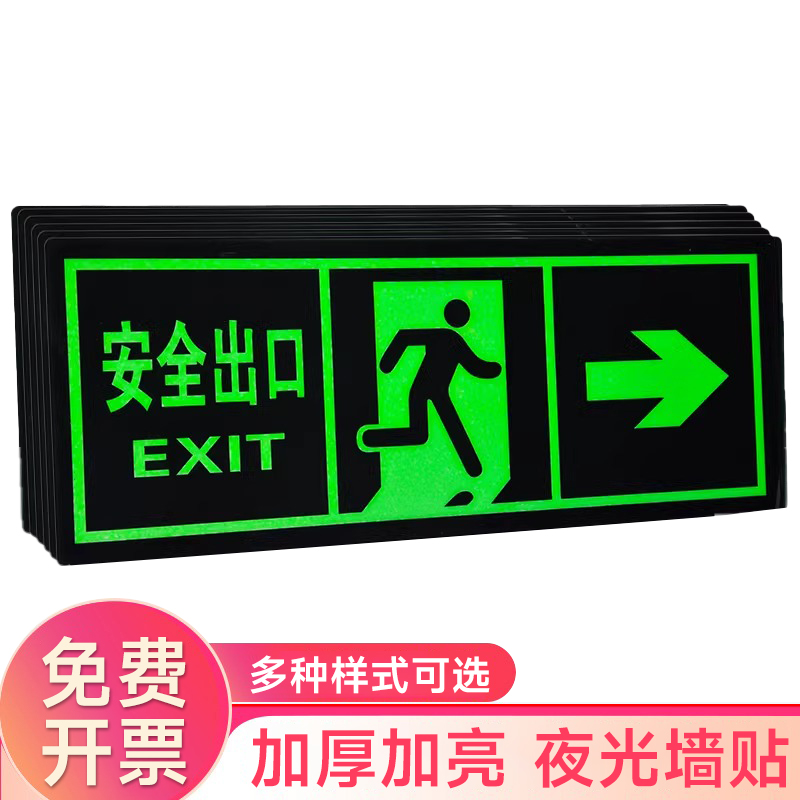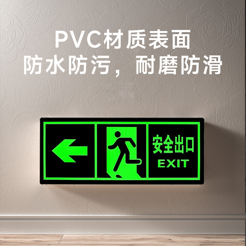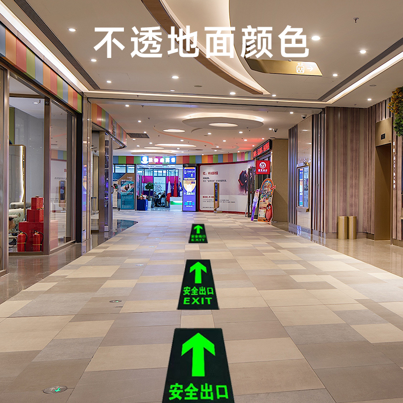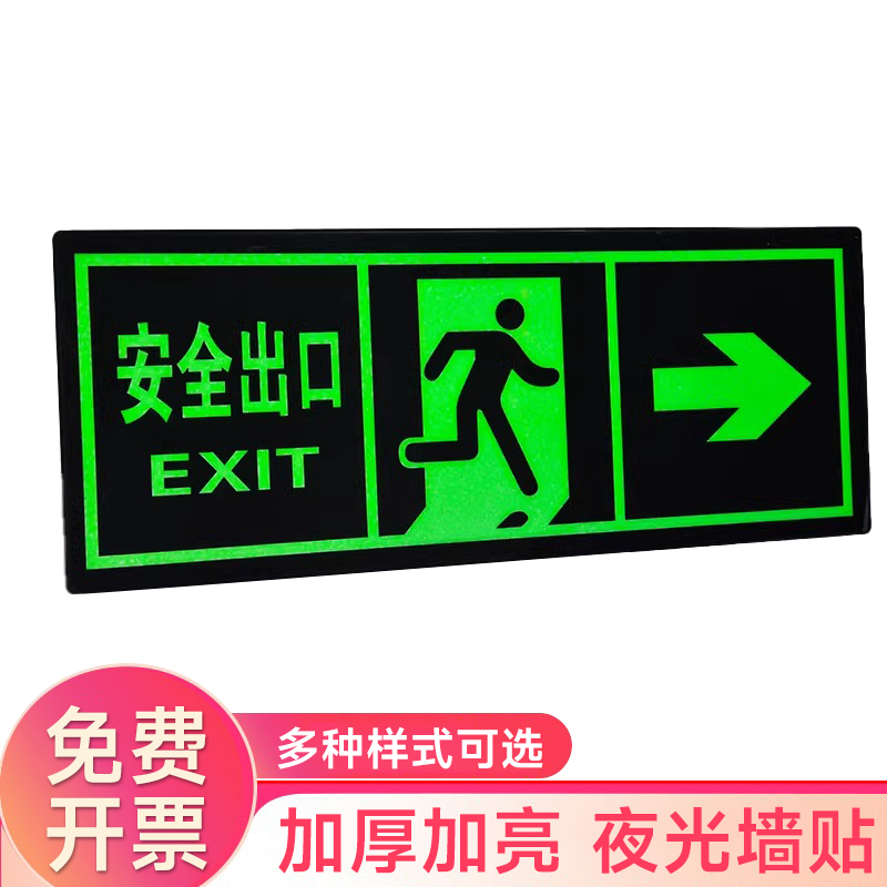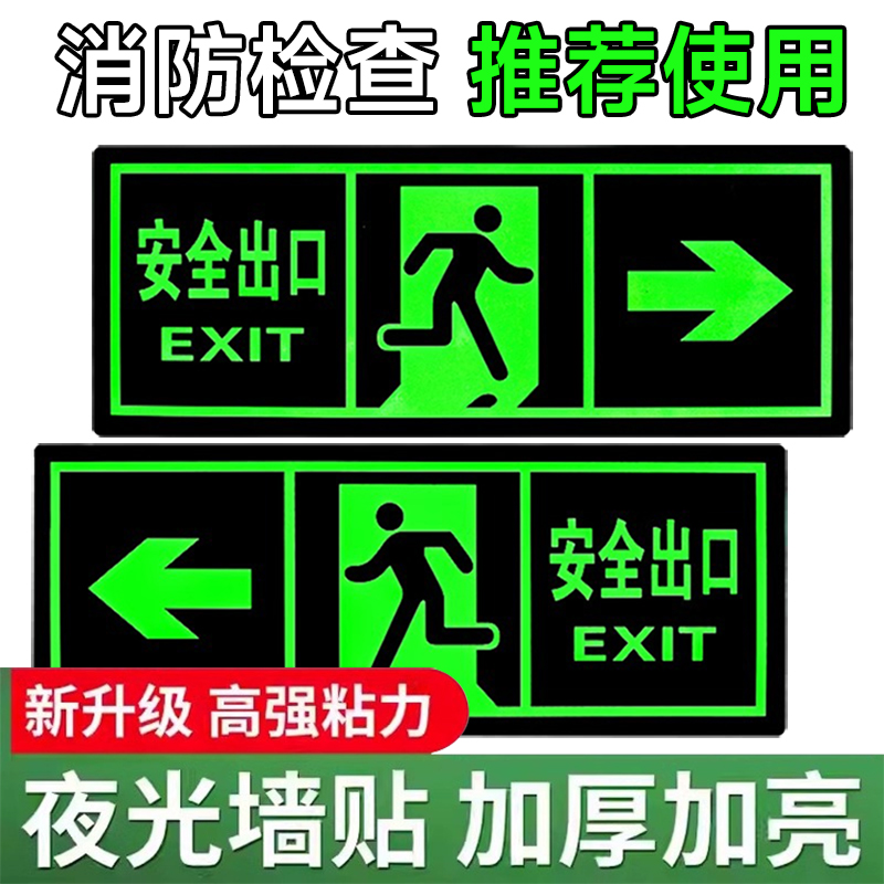夜光安全出口指示牌安全通道地贴墙贴标志紧急贴提示警示标消特特