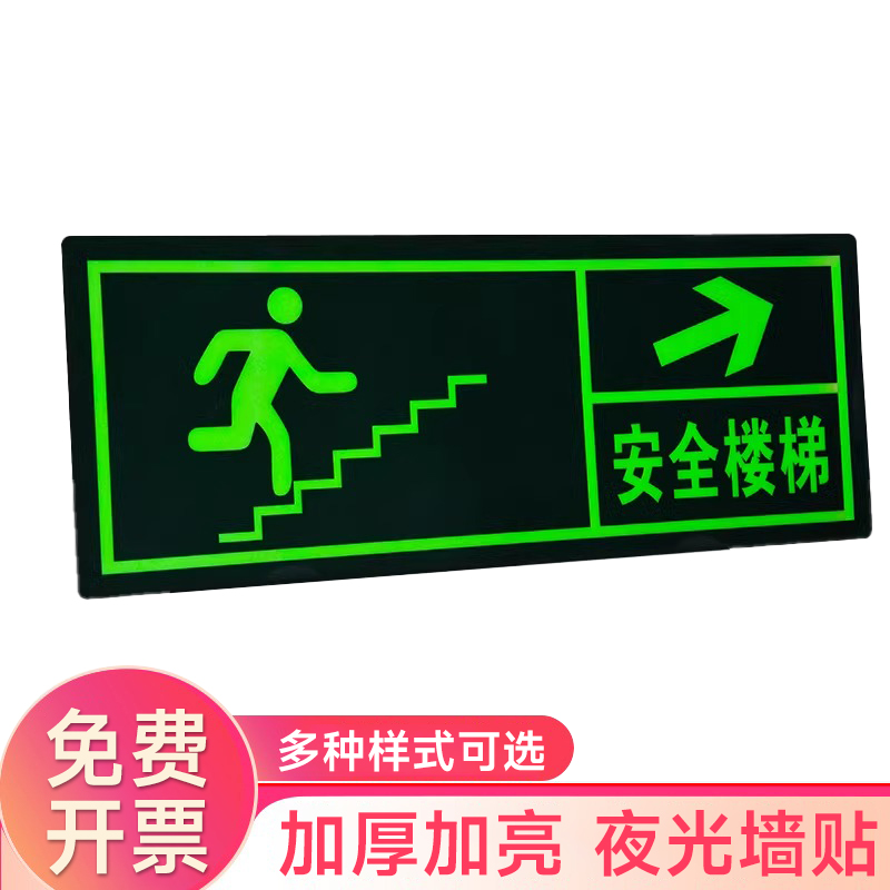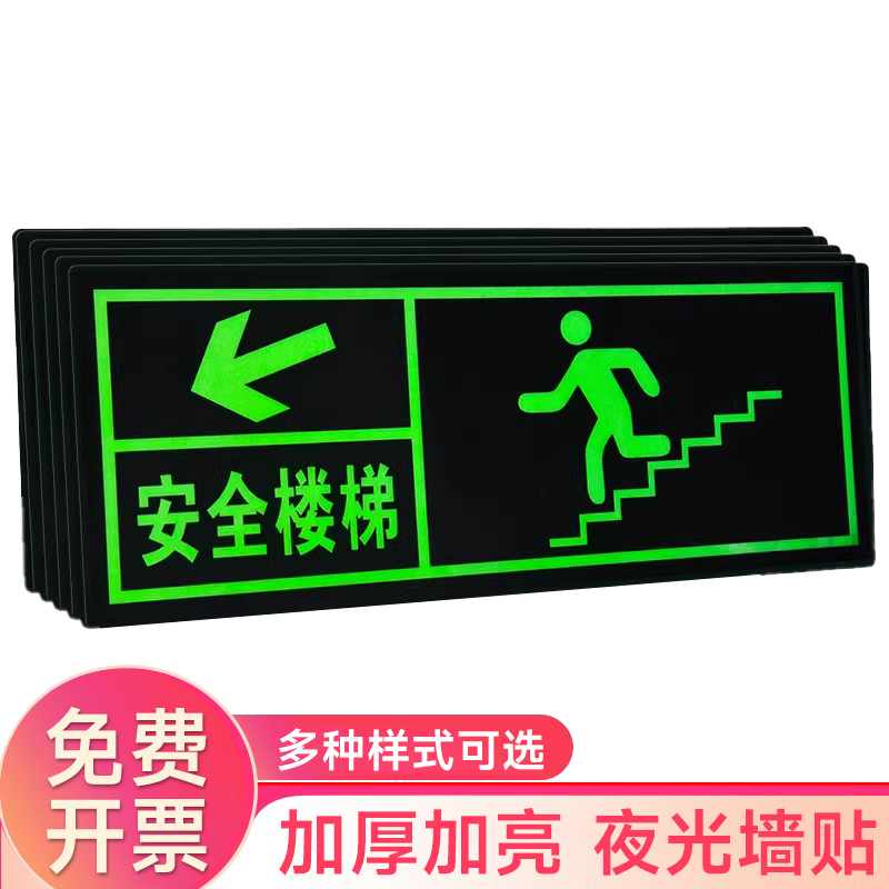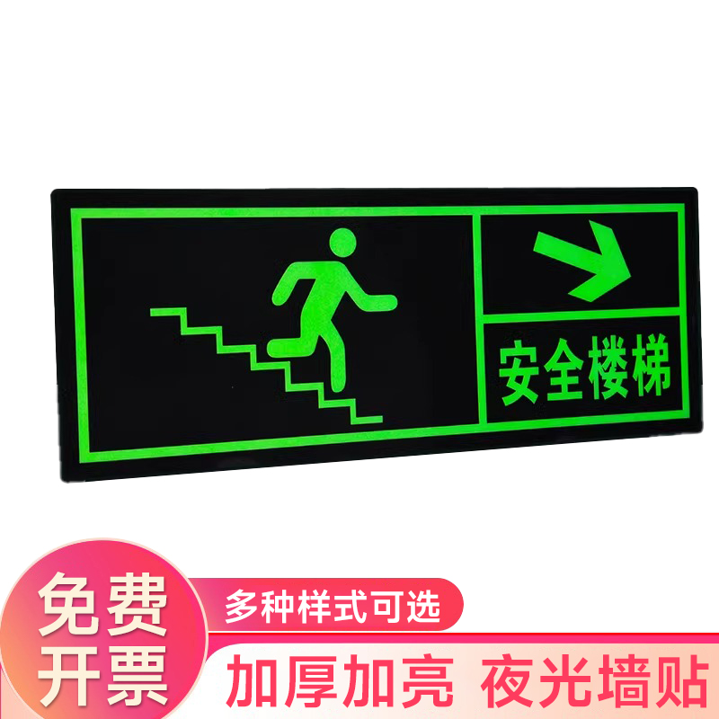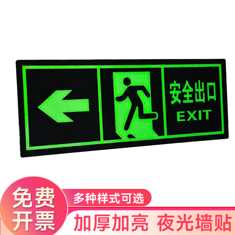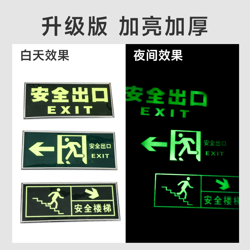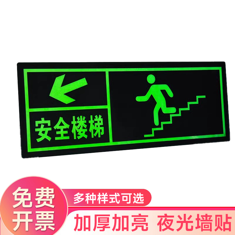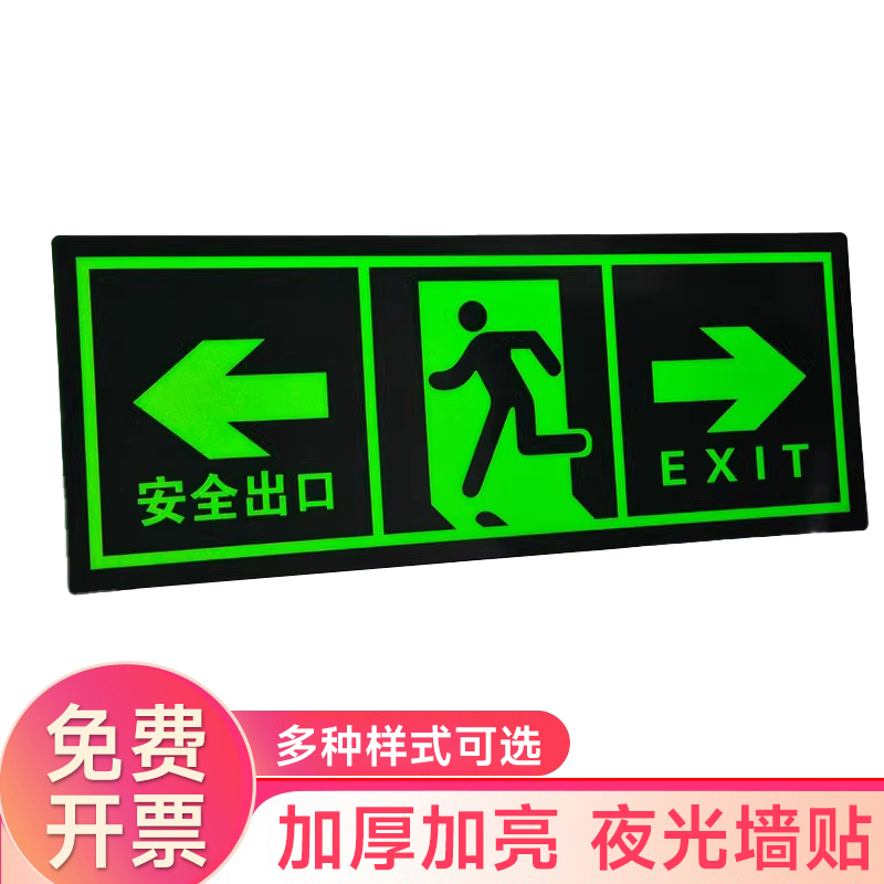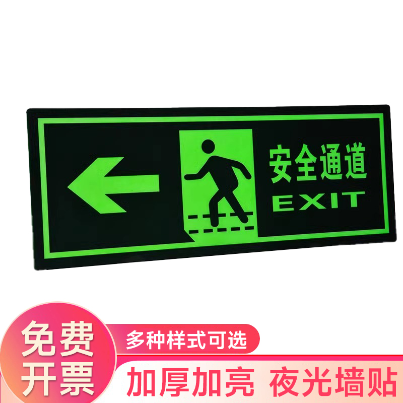 夜光安全出口指示牌安全通道地贴墙贴标志紧急贴提示警示标消特特