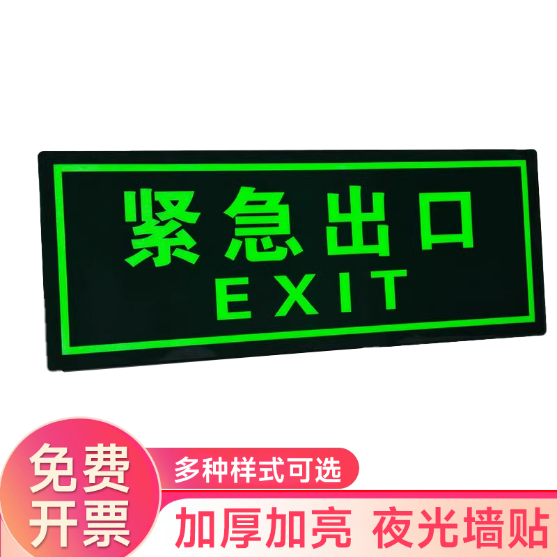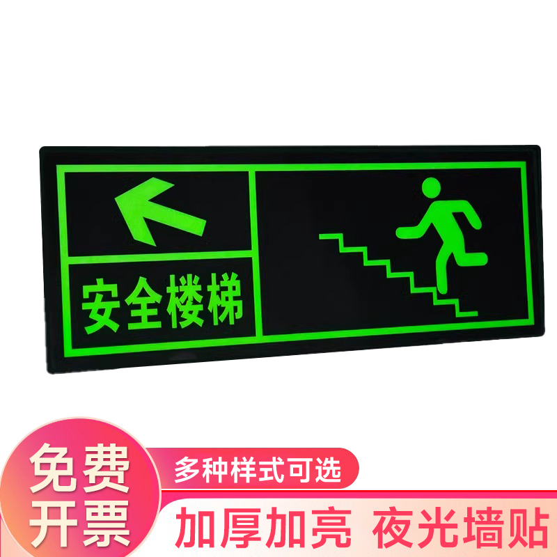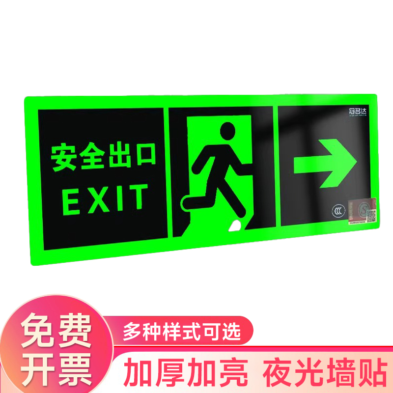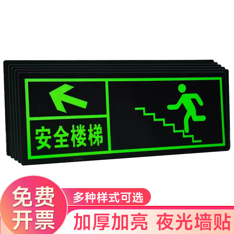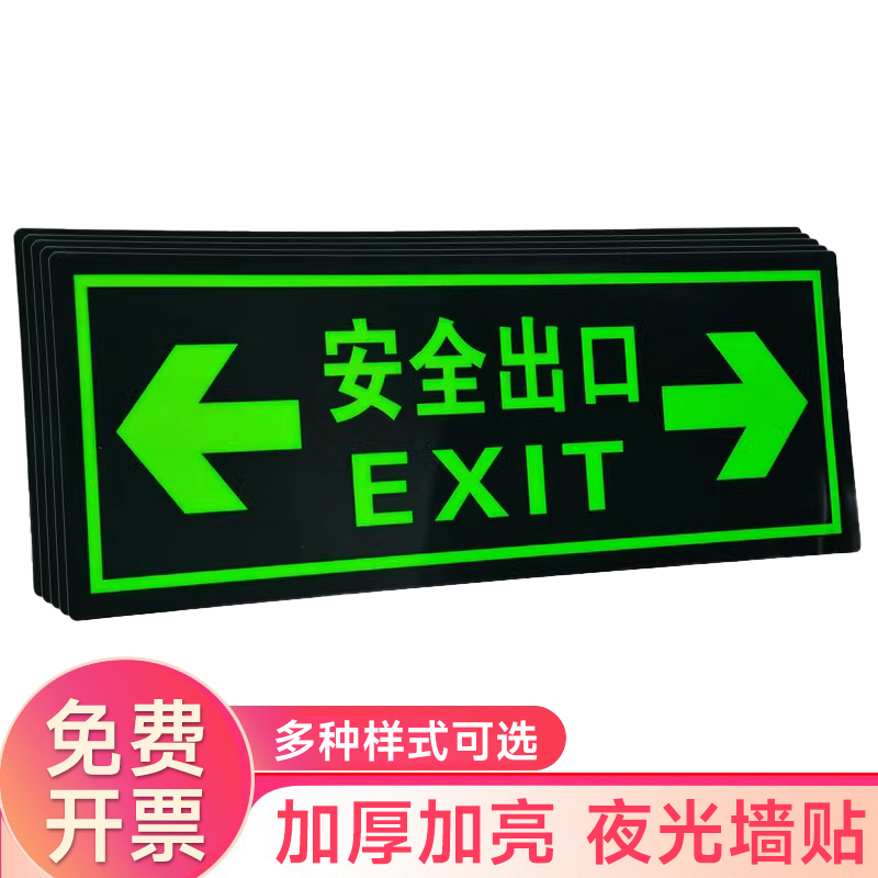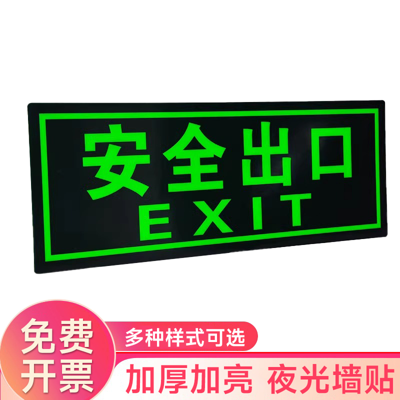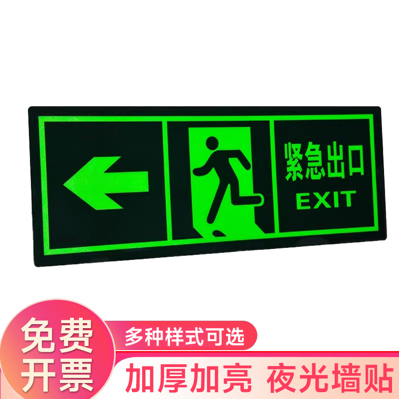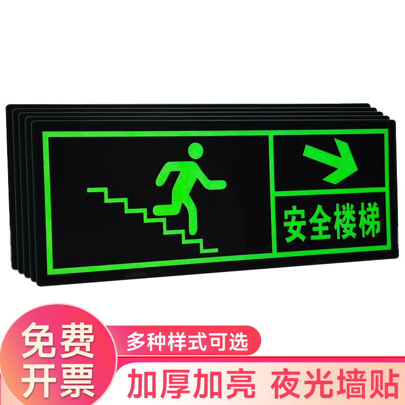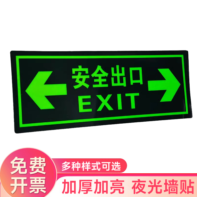 夜光安全出口指示牌安全通道地贴墙贴标志紧急贴提示警示标消特特
