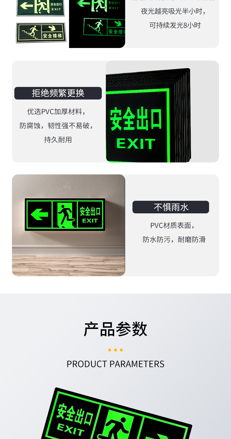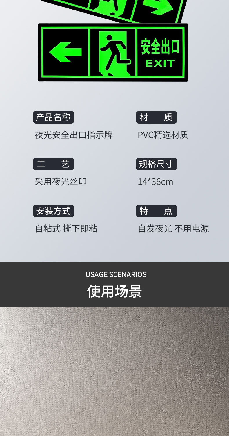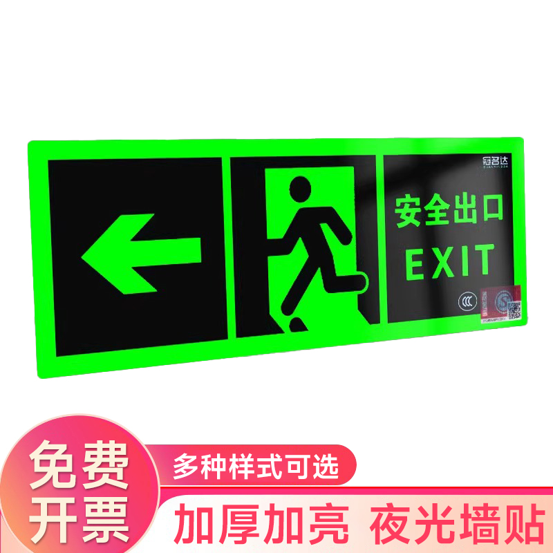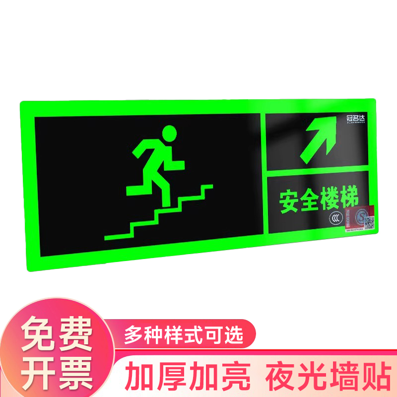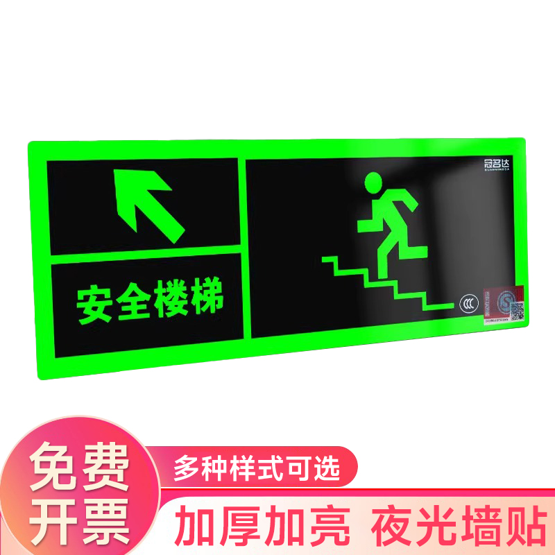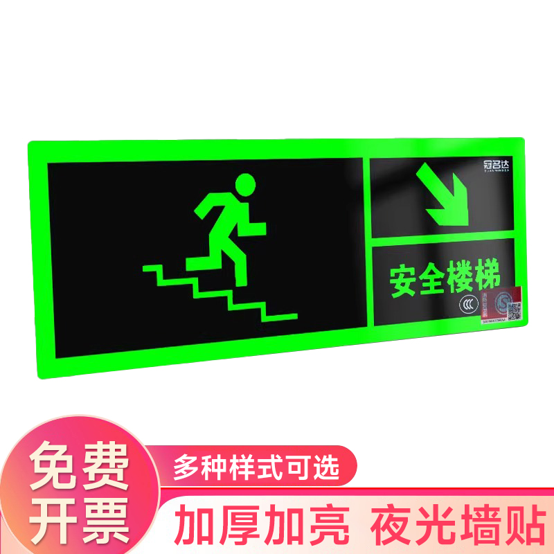 夜光安全出口指示牌安全通道地贴墙贴标志紧急贴提示警示标消特特