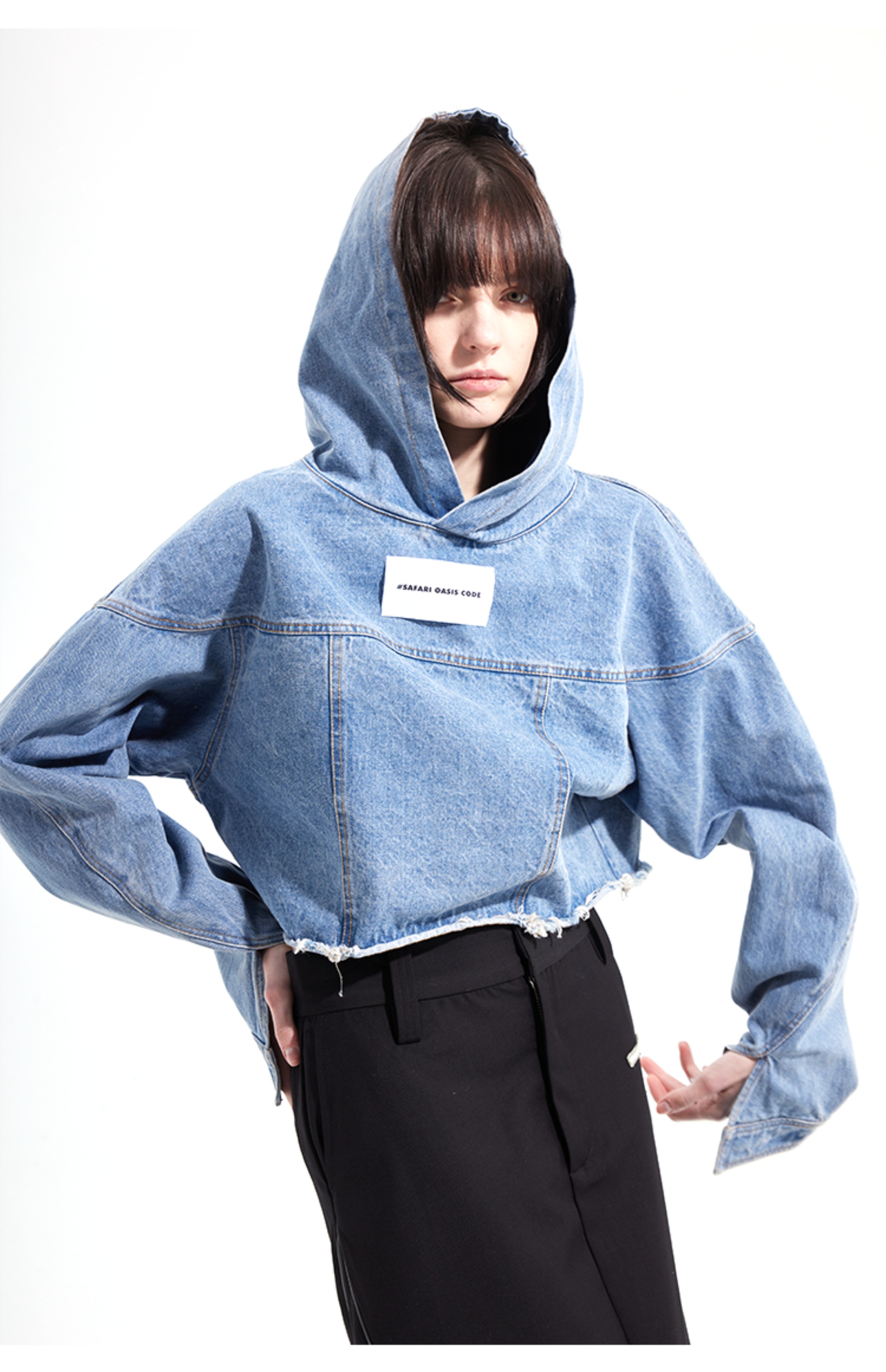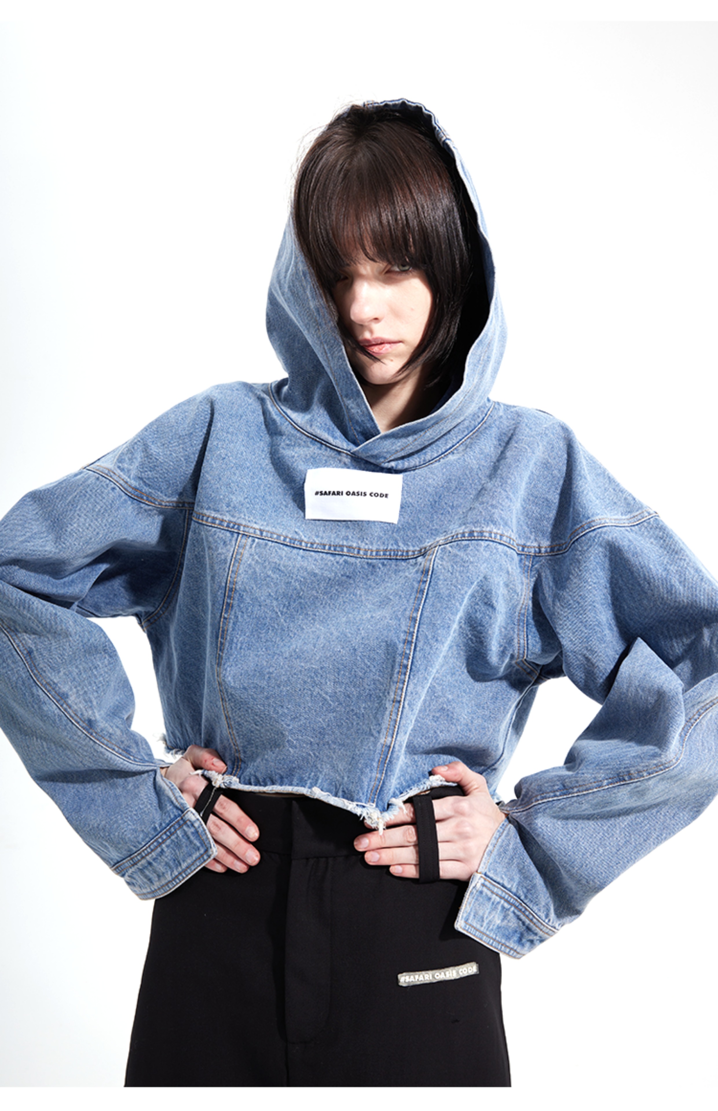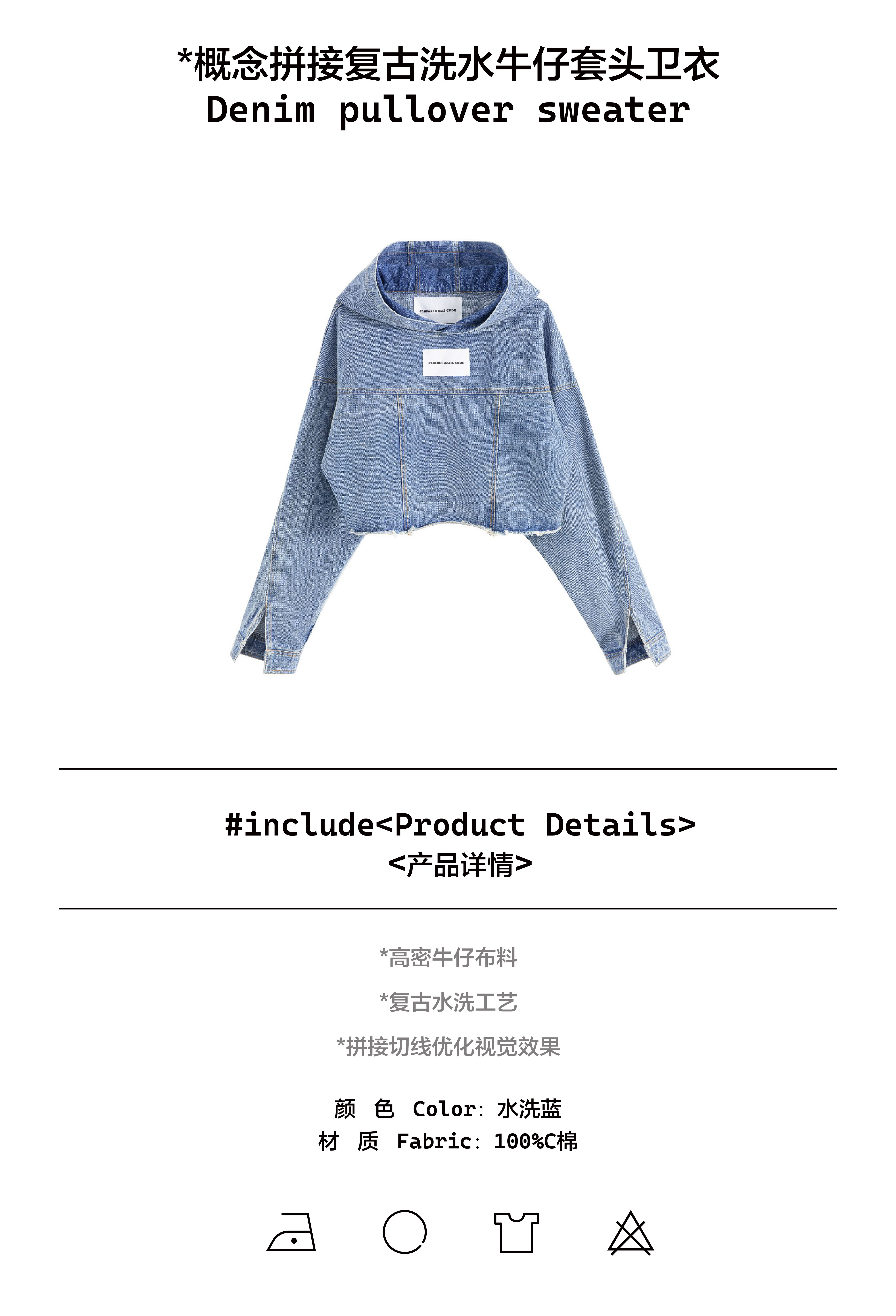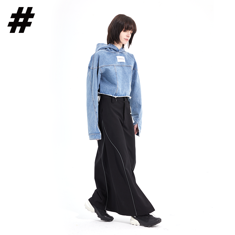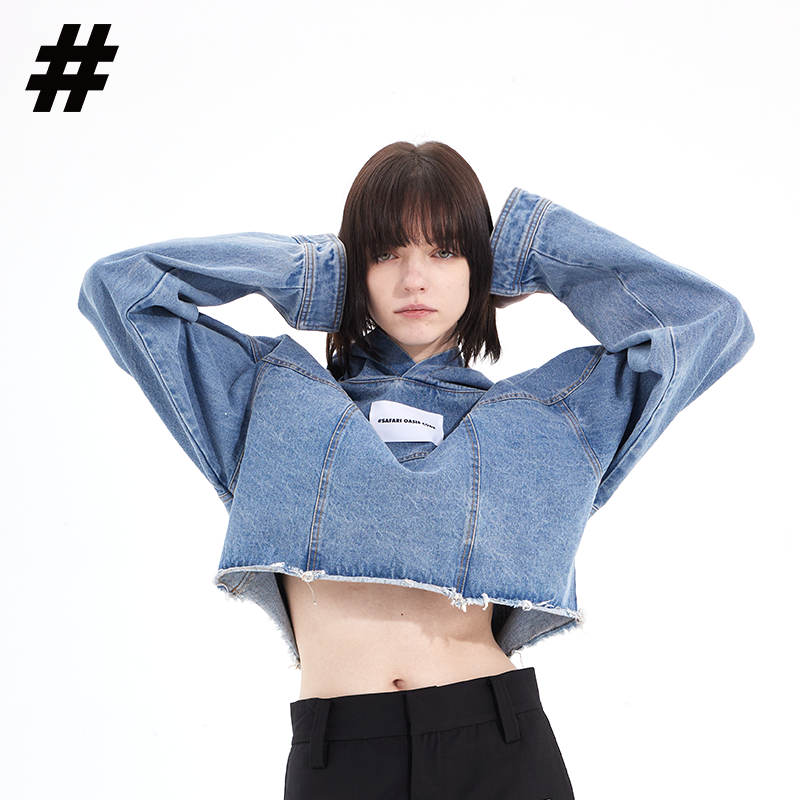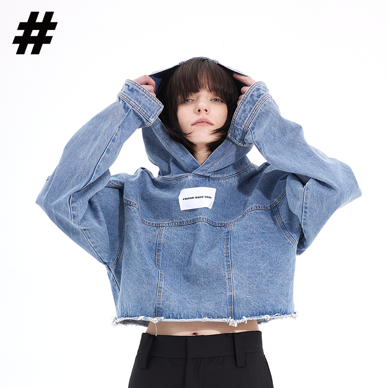 #SOC 秋冬概念拼縫慵懶風水洗牛仔套頭休閒上衣女款2023新款爆款上衣