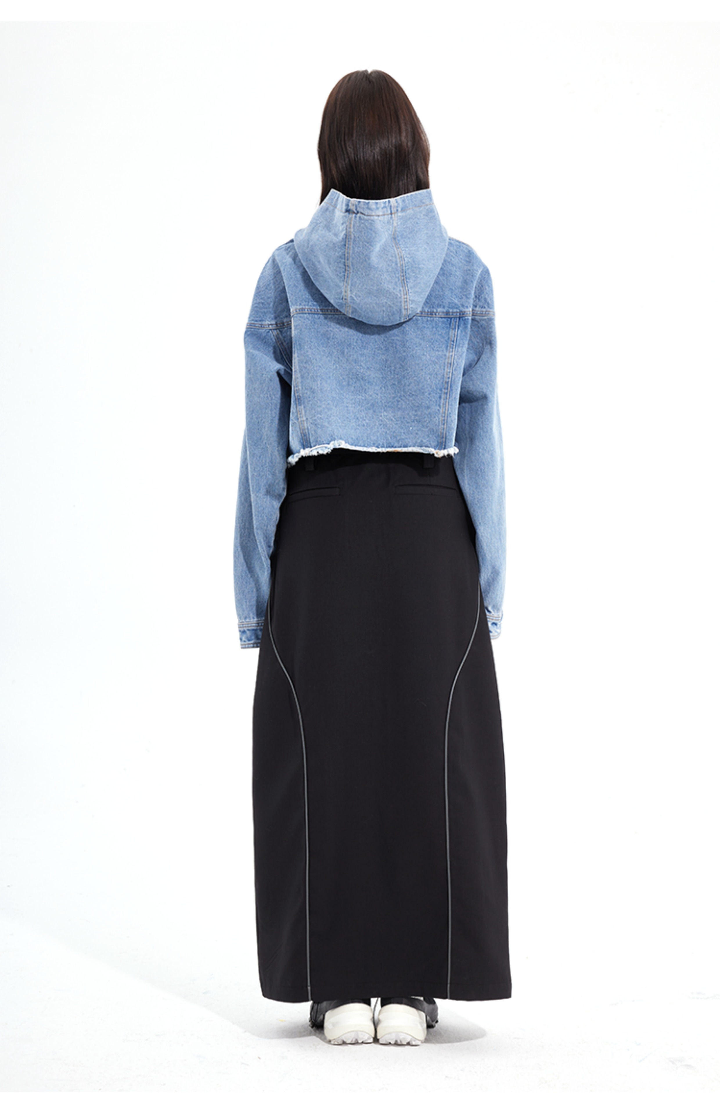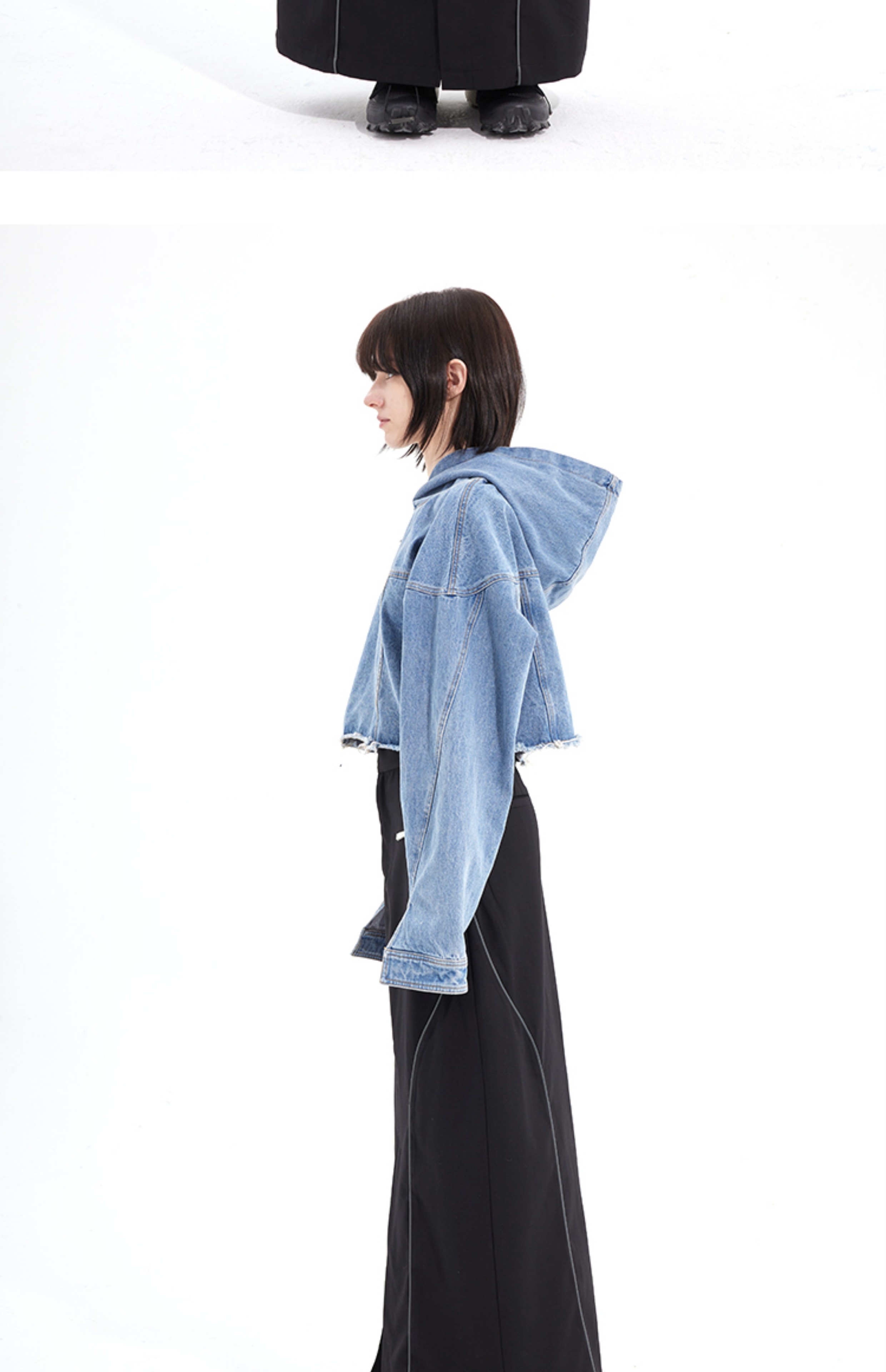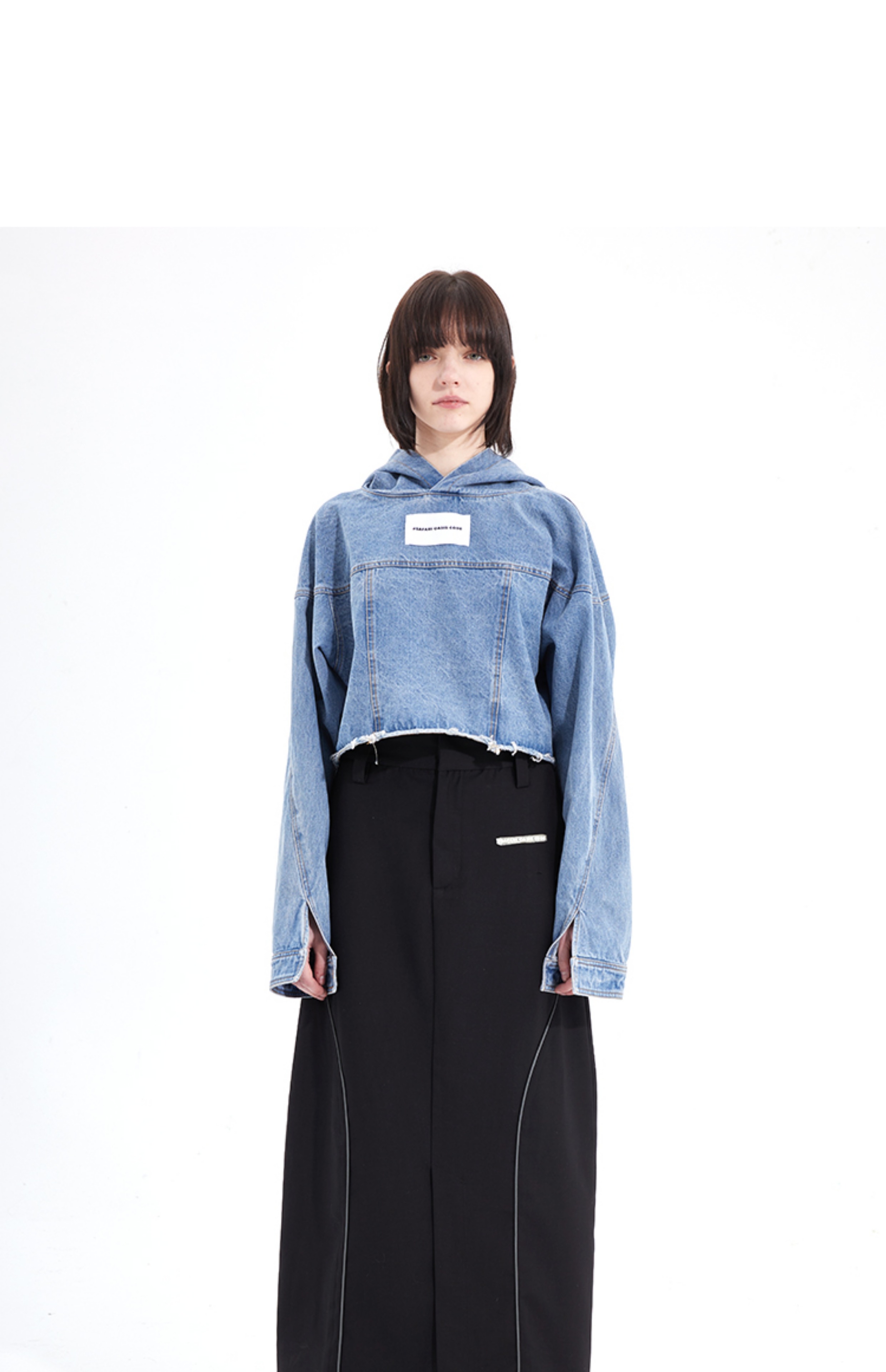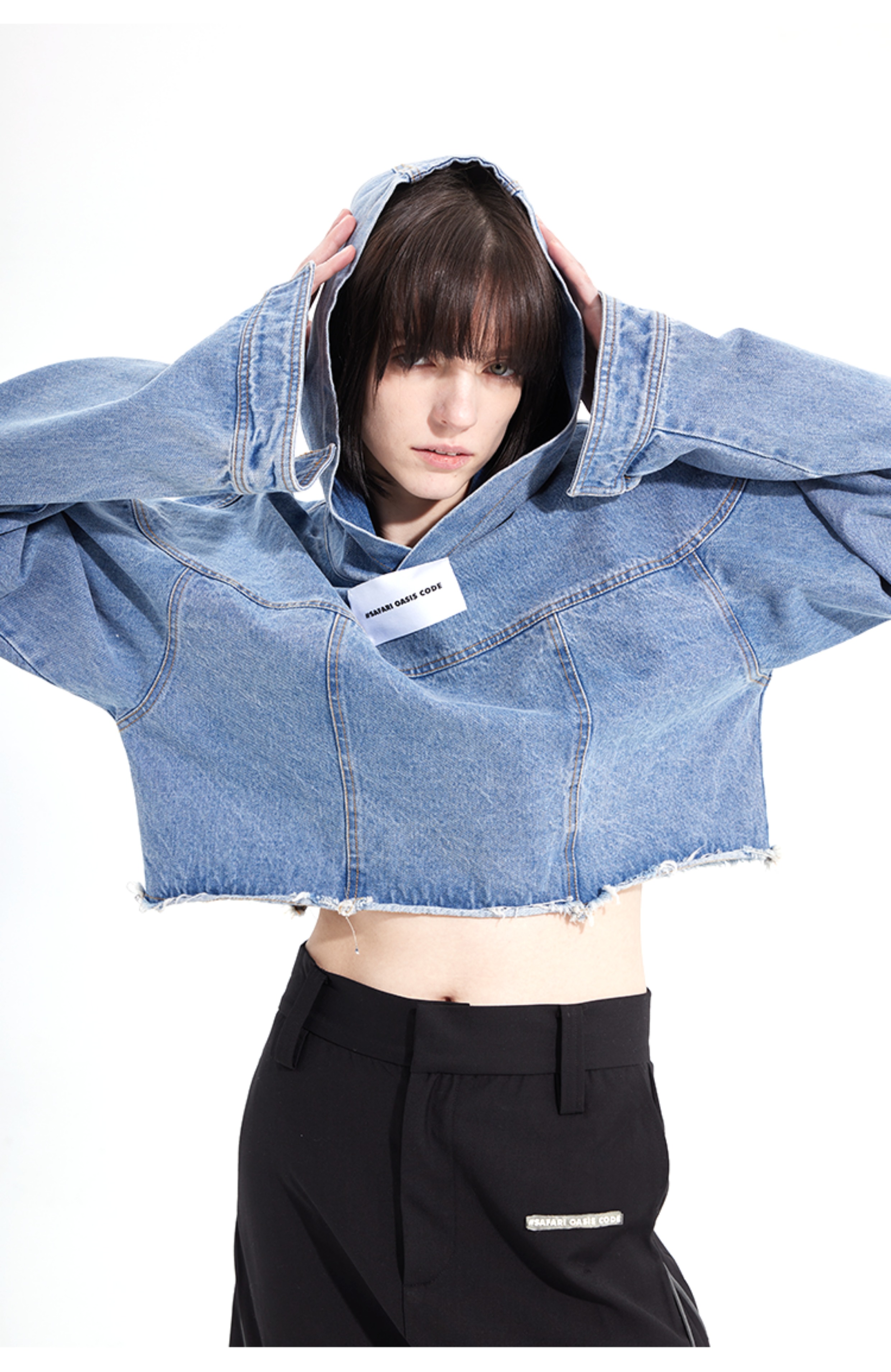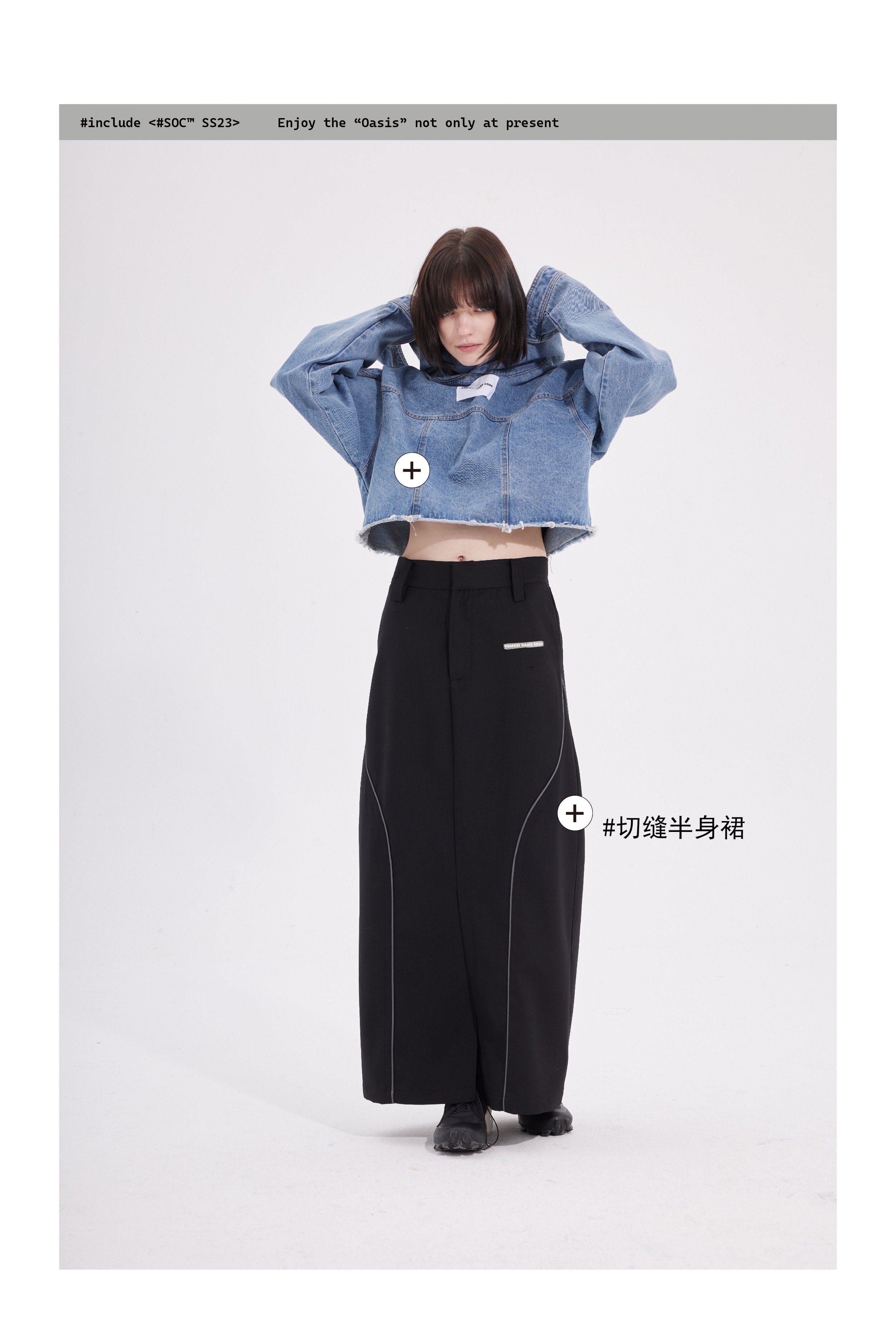 #SOC 秋冬概念拼縫慵懶風水洗牛仔套頭休閒上衣女款2023新款爆款上衣