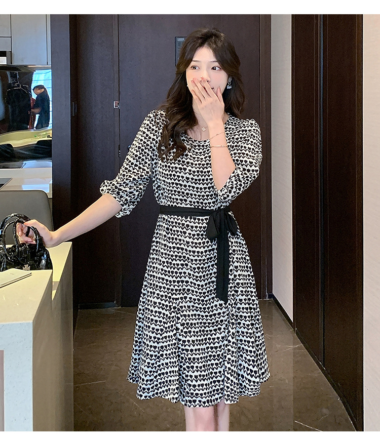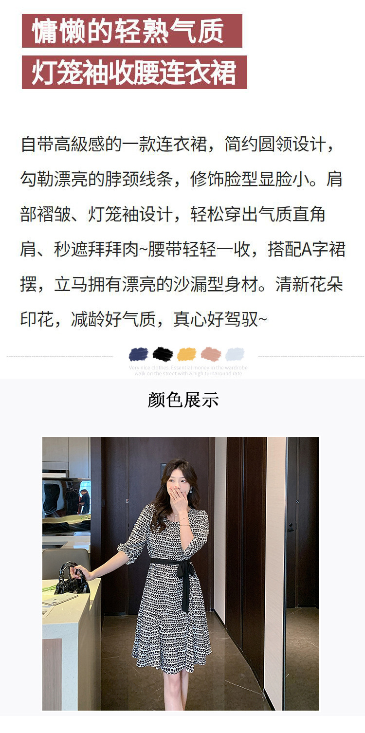 2023夏季新款显瘦碎花雪纺中长款连衣裙高级感法式复古印花裙子女