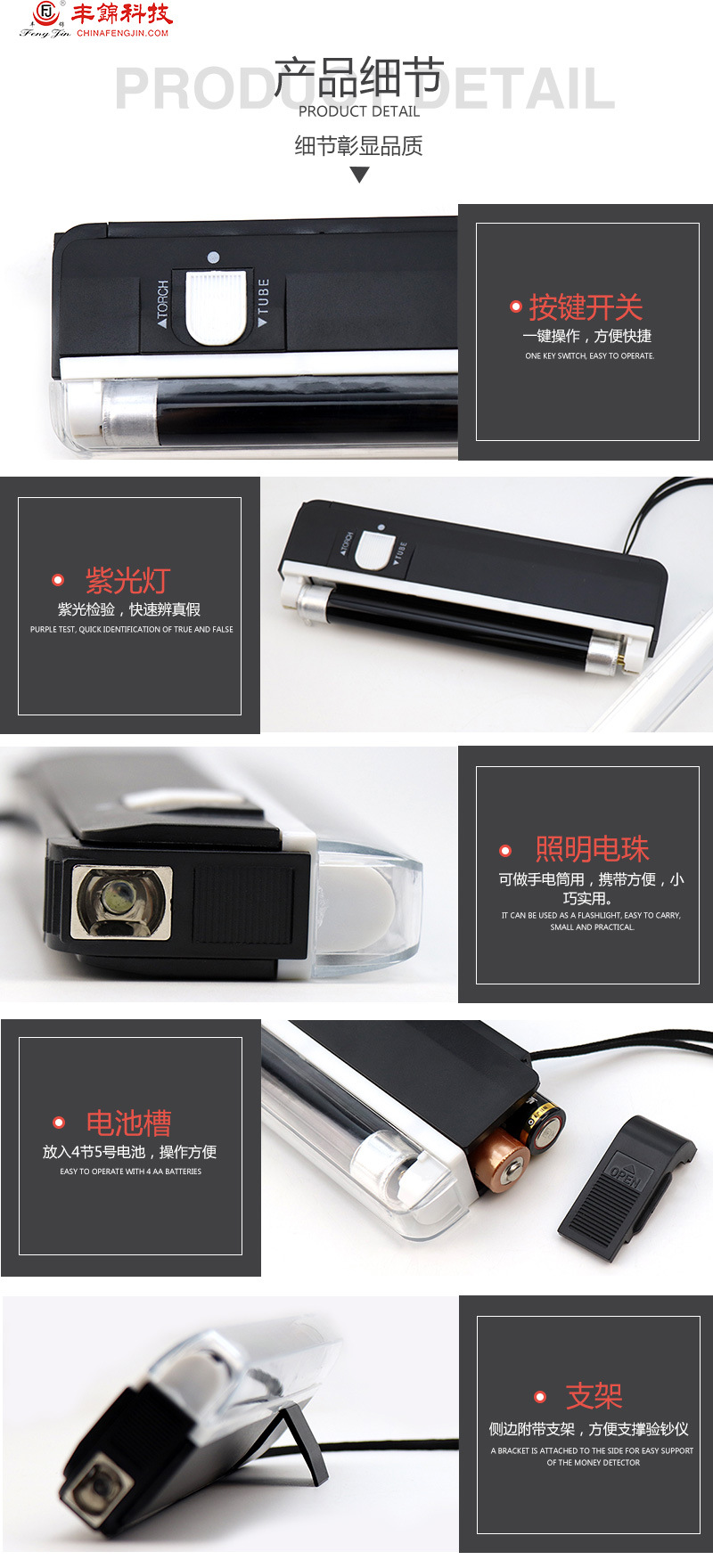 紫光迷你验钞机点钞机便携式手持电筒验钞灯5号电池小型验钞机