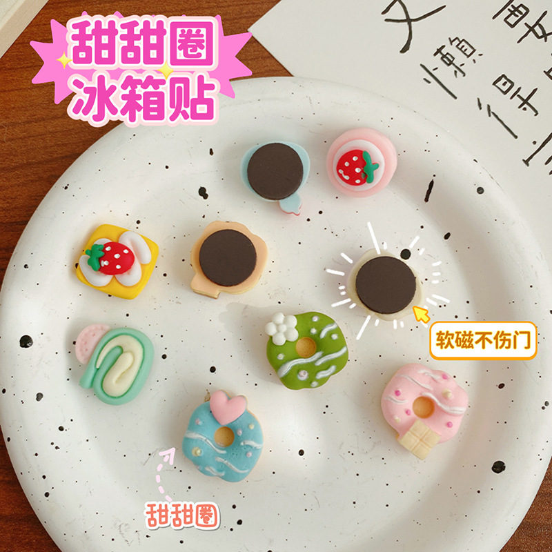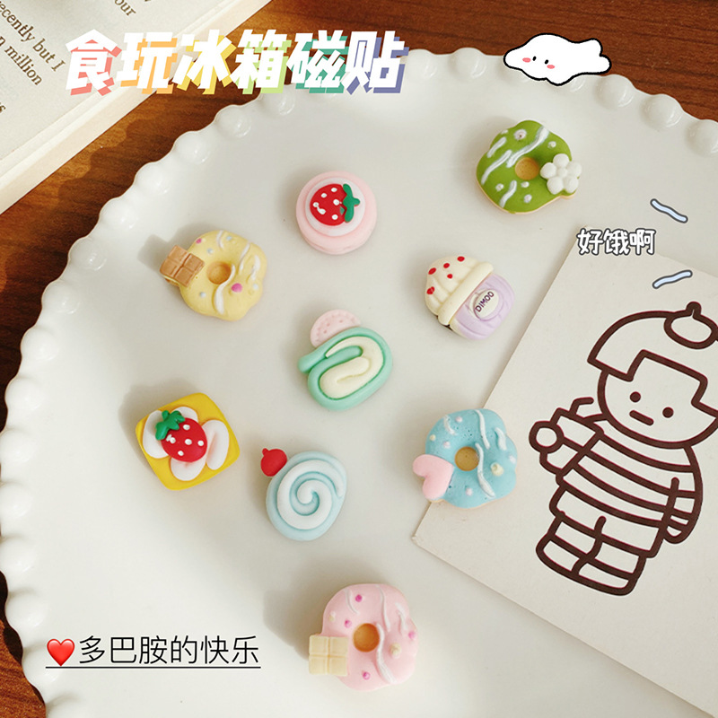 甜甜圈蛋糕冰箱贴可爱卡通ins 3d立体磁贴个性创意装饰磁吸留言贴