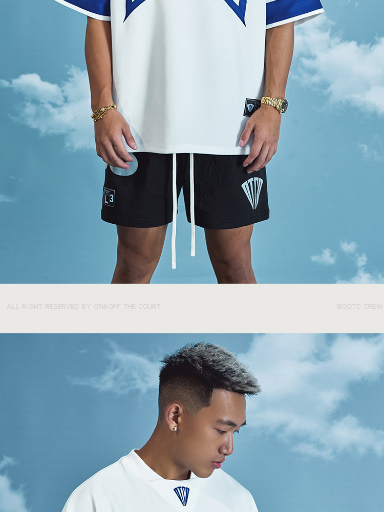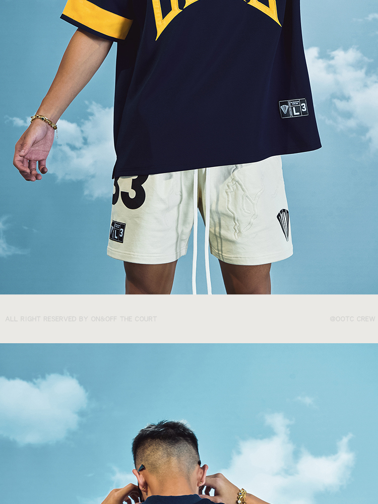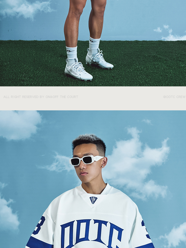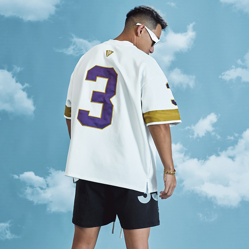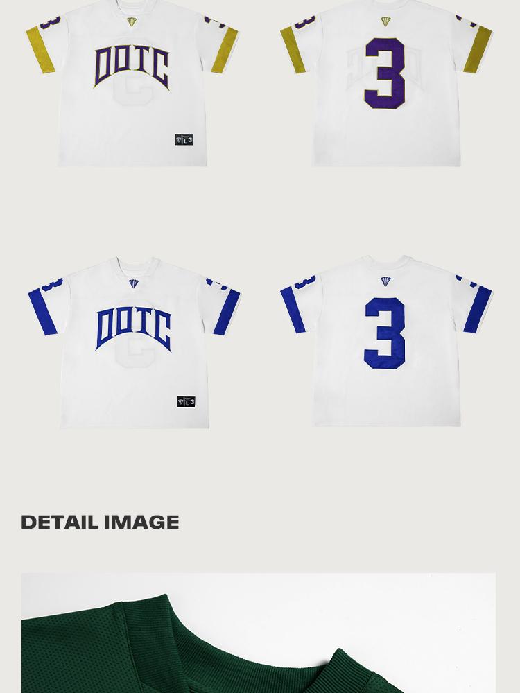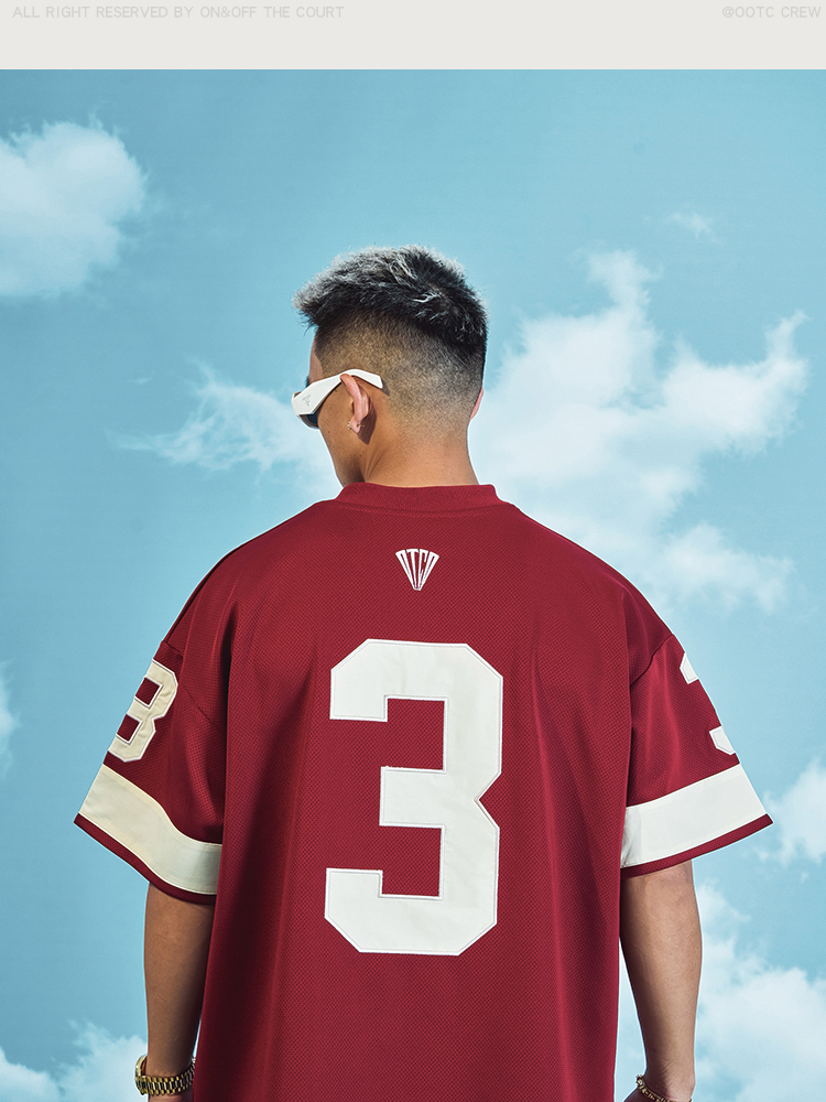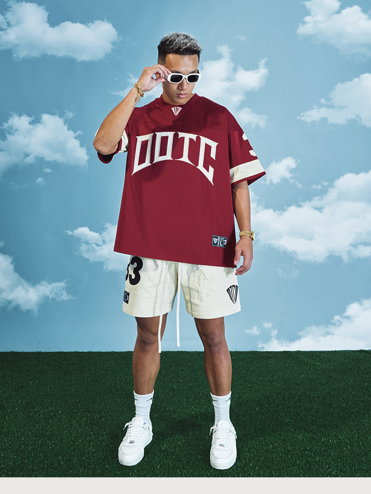 OOTC重磅美式復古街頭運動寬鬆網眼布貼繡橄欖球服短袖T恤男女ins
