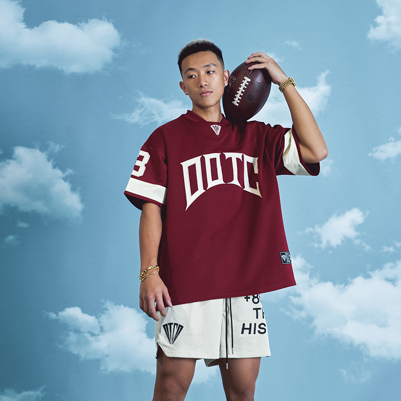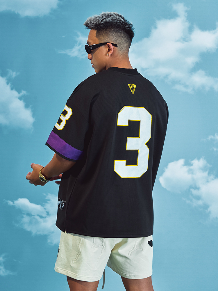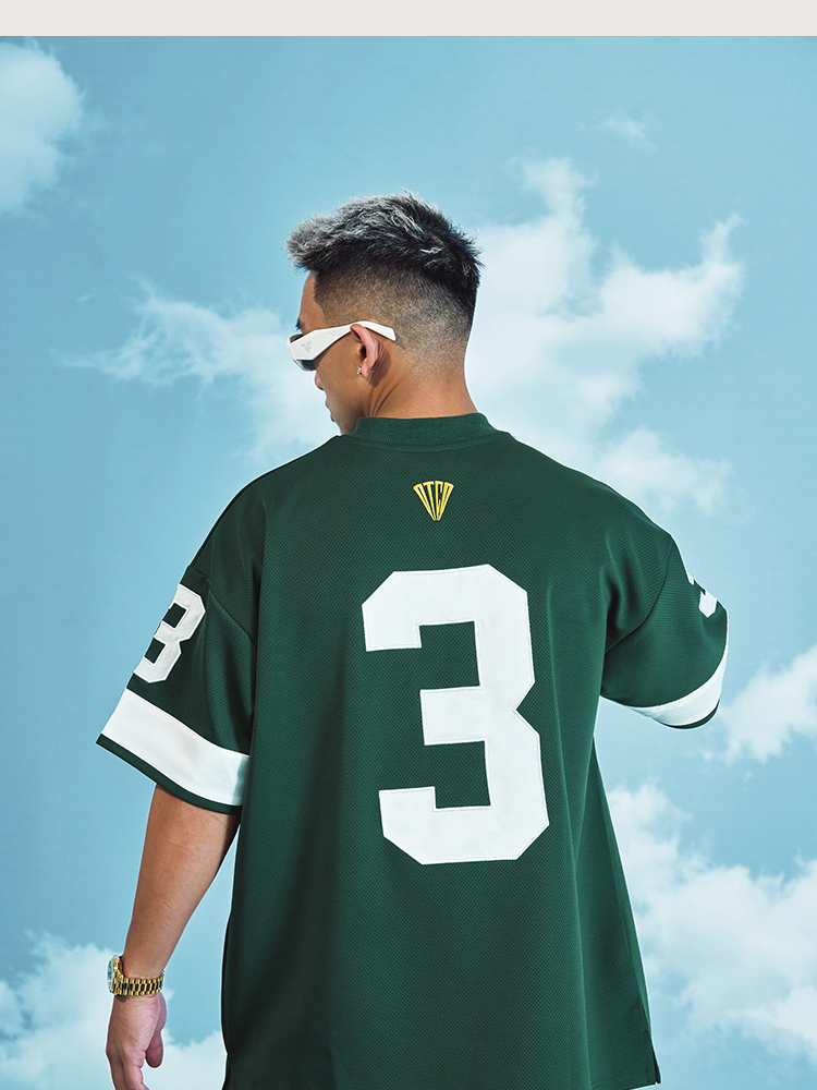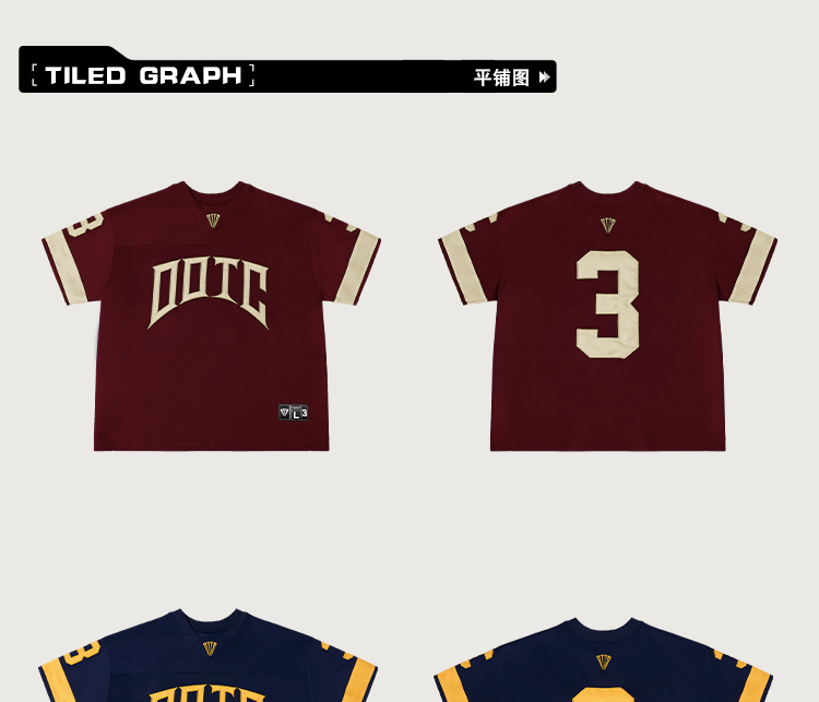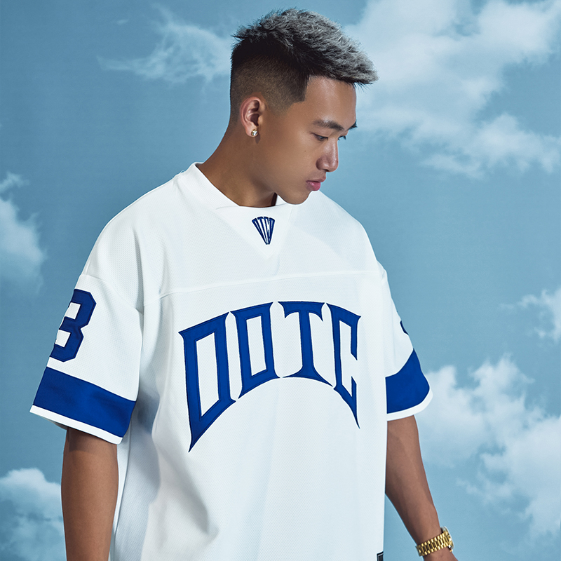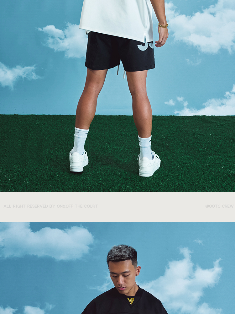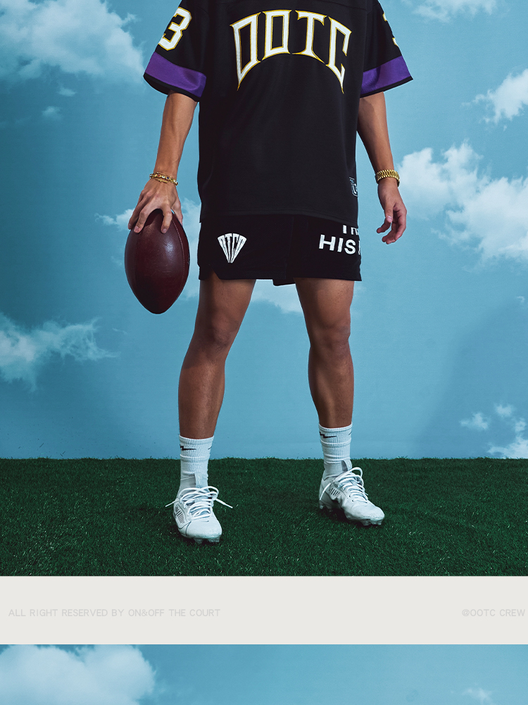 OOTC重磅美式復古街頭運動寬鬆網眼布貼繡橄欖球服短袖T恤男女ins