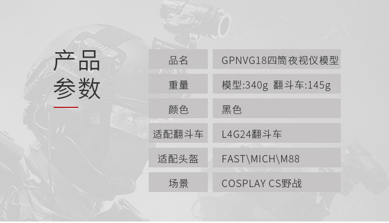 FMA軍迷海豹四筒四目夜視儀GPNVG18模型COS裝備無功能安全帽配件