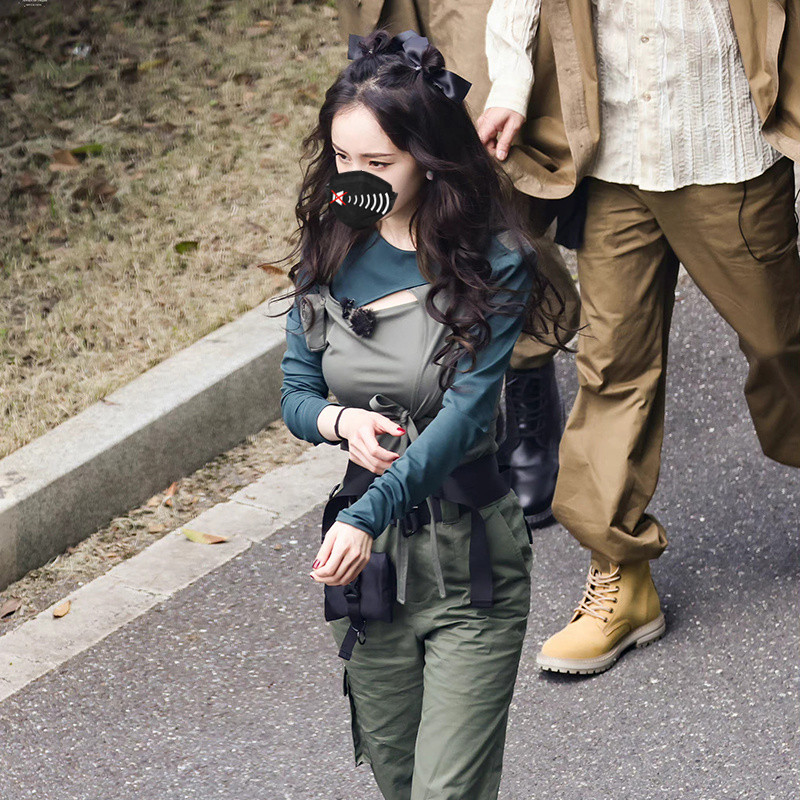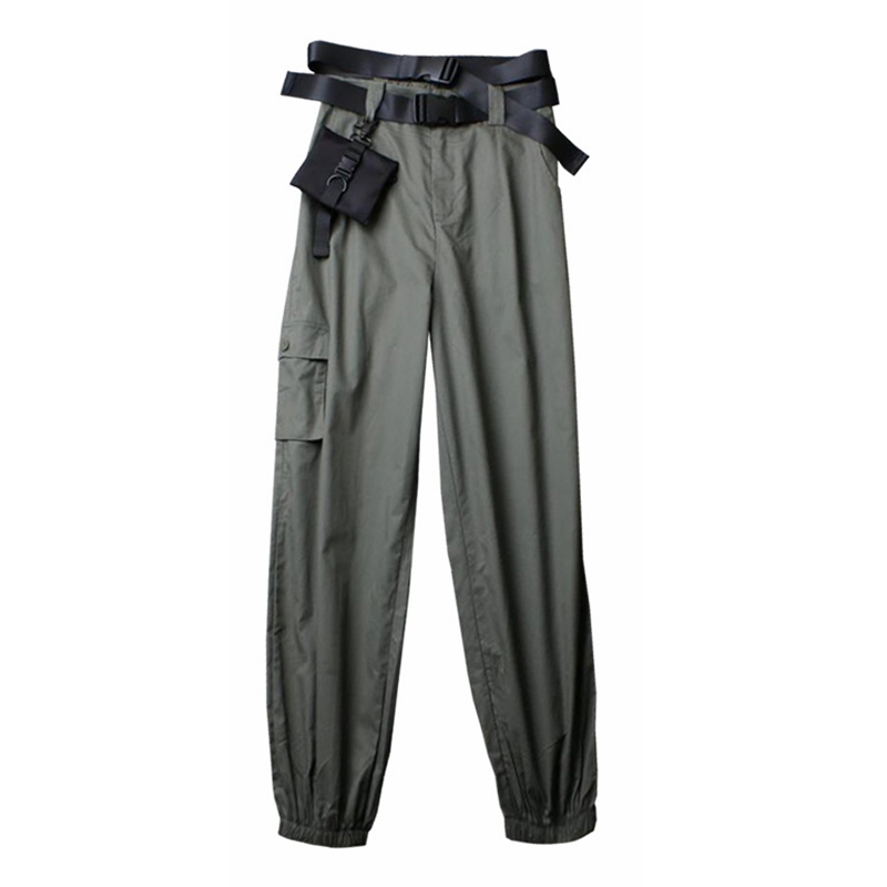 大冪冪同款軍綠色工裝褲休閒長褲女小眾設計感束口褲子