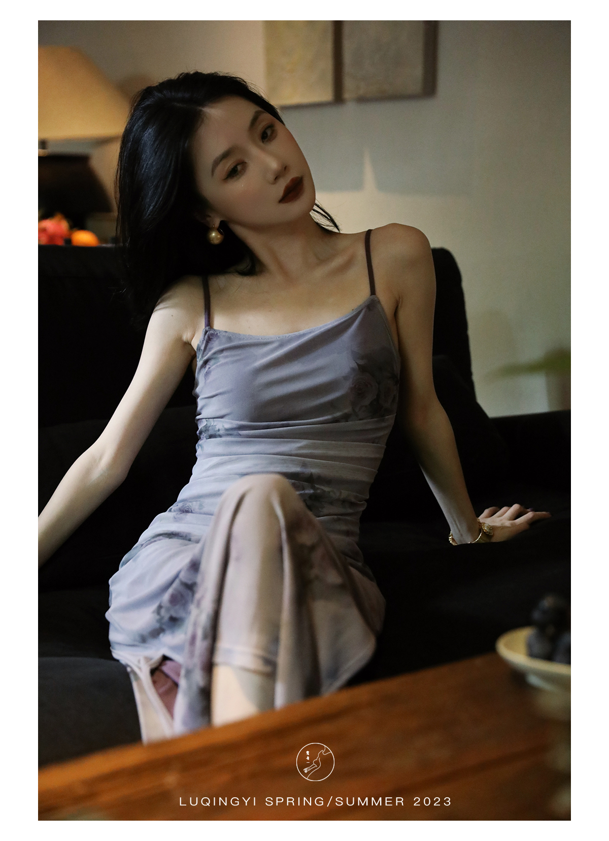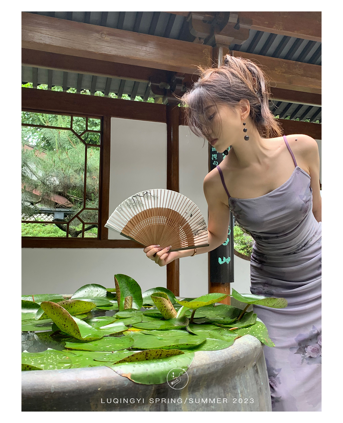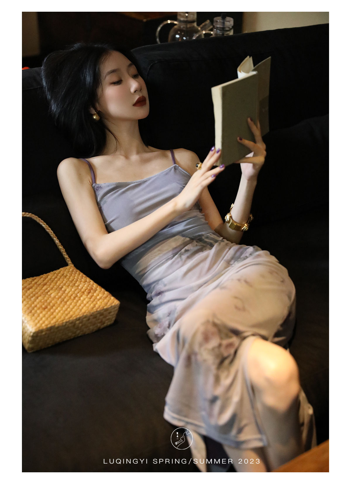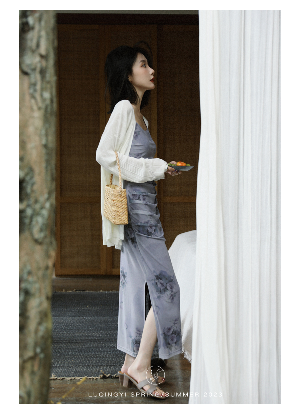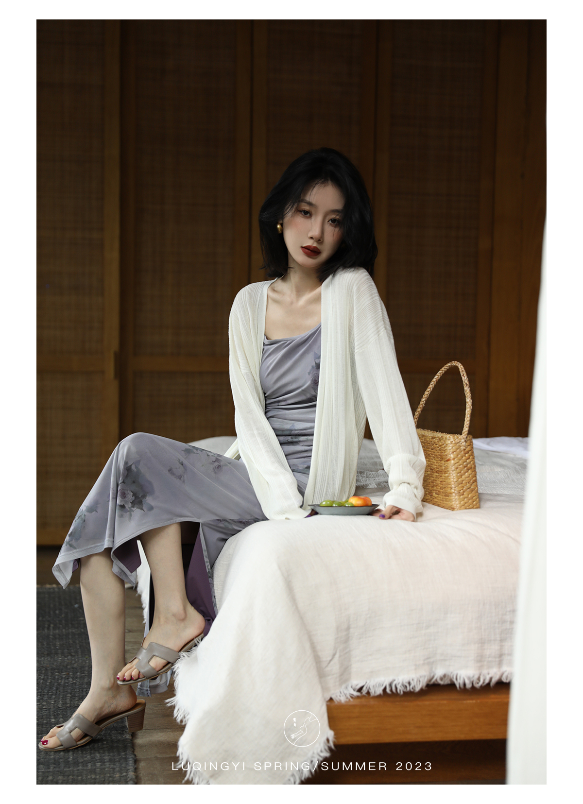 鷺青一【紫玉釵】玫瑰暈染吊帶裙女夏立體褶皺設計復古印花洋裝