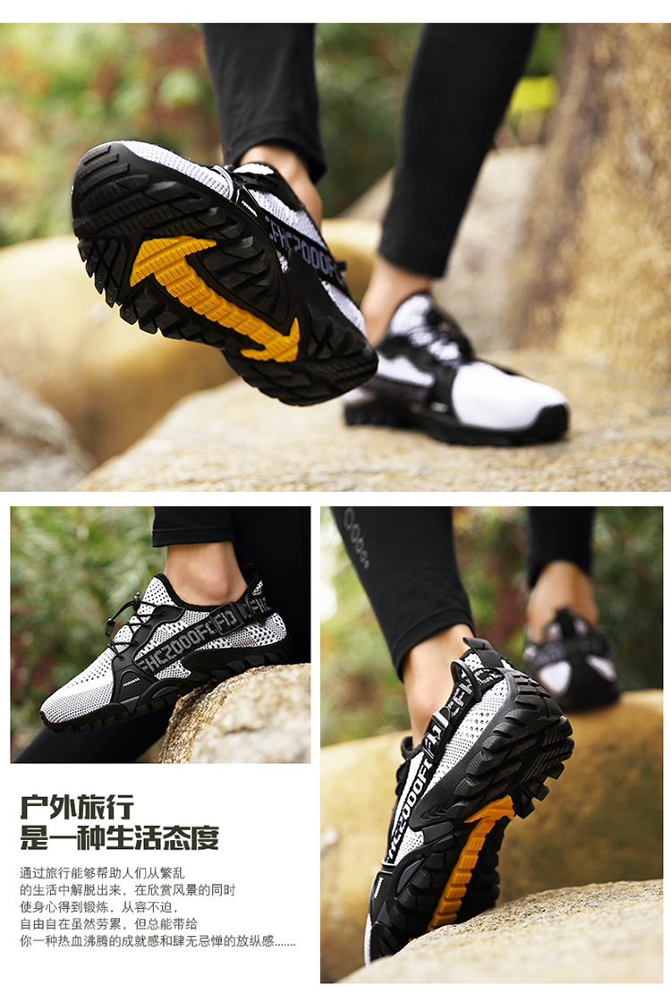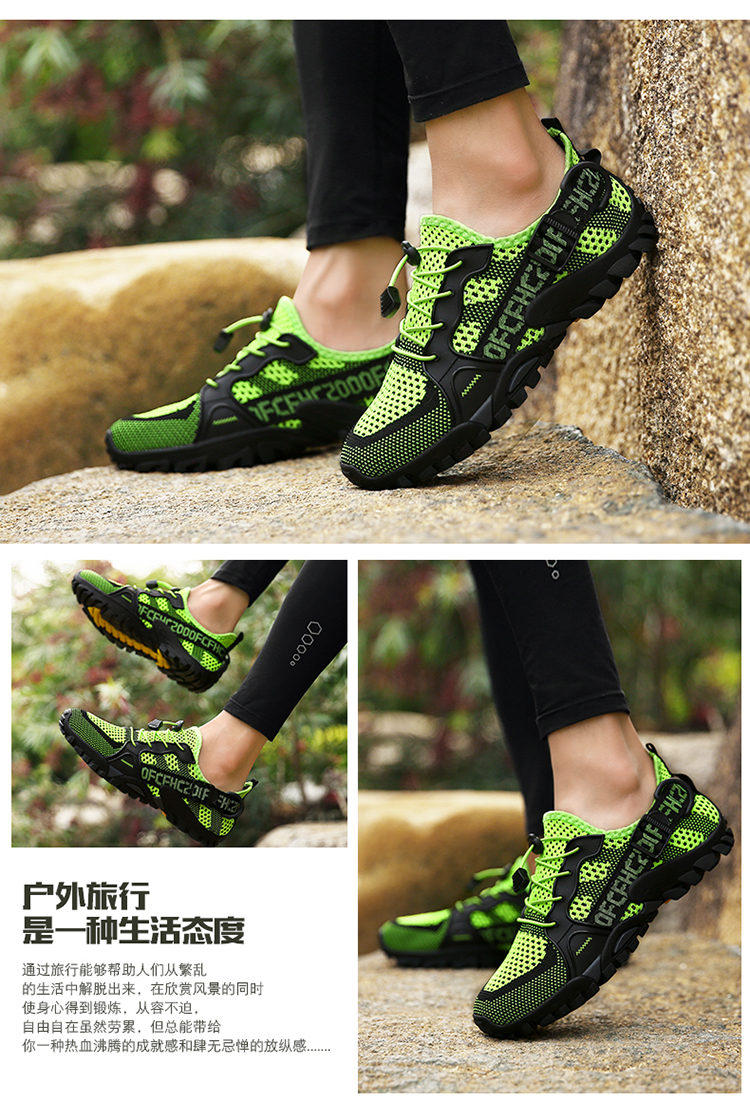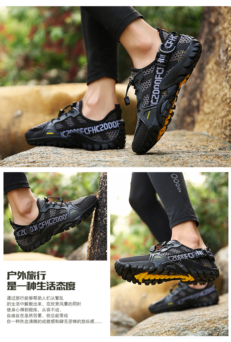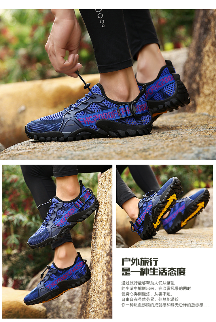 運動登山鞋男防滑透氣網面戶外釣魚溯溪鞋女鞋輕便騎行越野徒步鞋