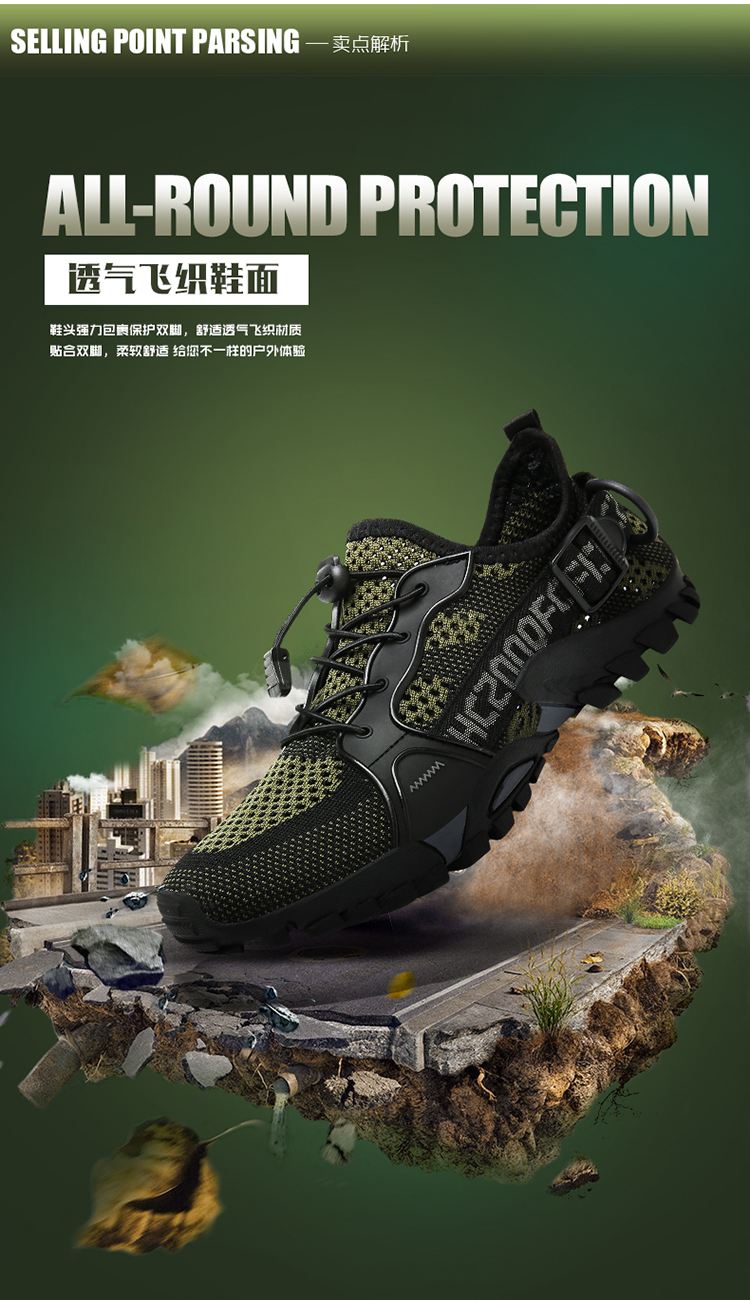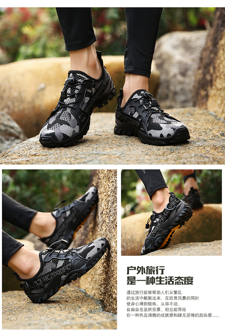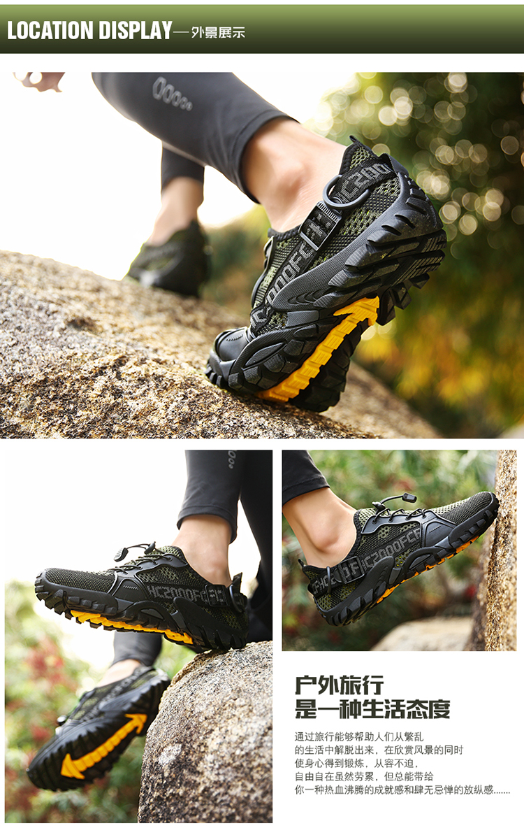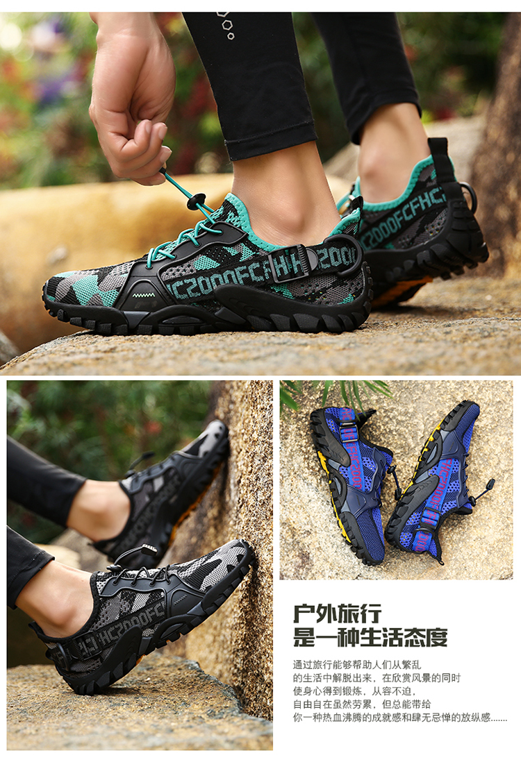 運動登山鞋男防滑透氣網面戶外釣魚溯溪鞋女鞋輕便騎行越野徒步鞋