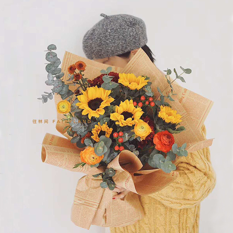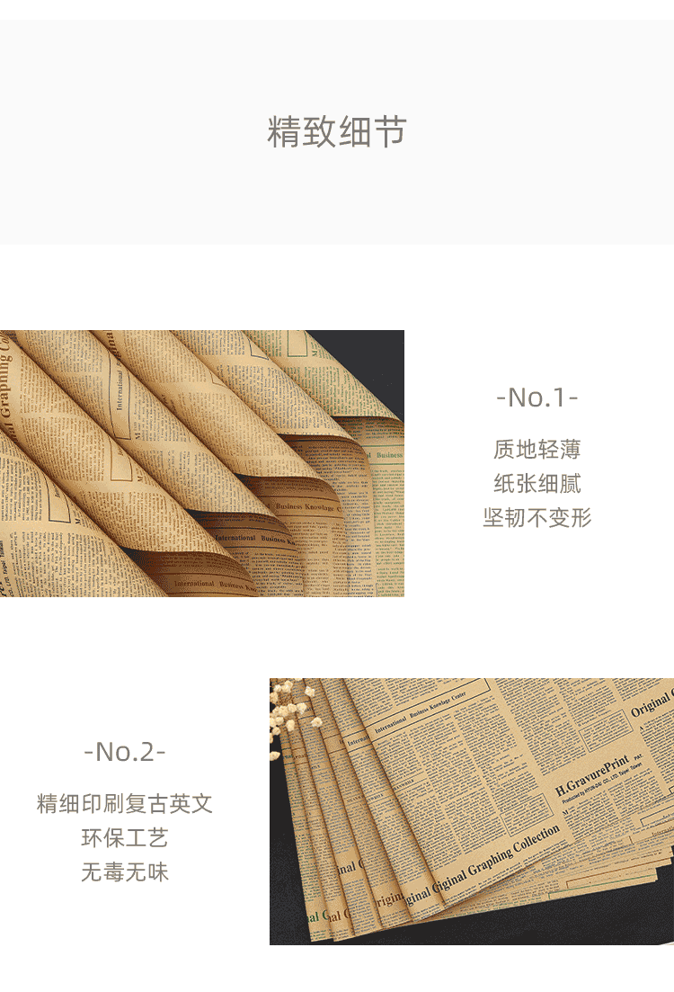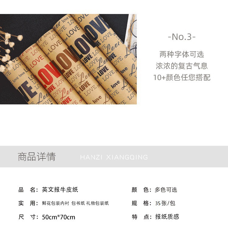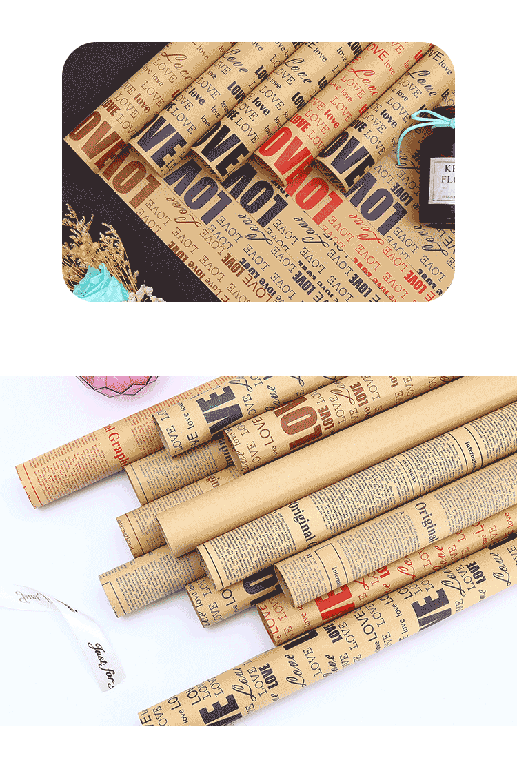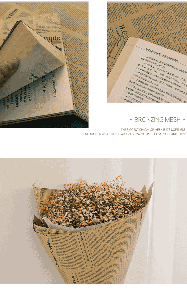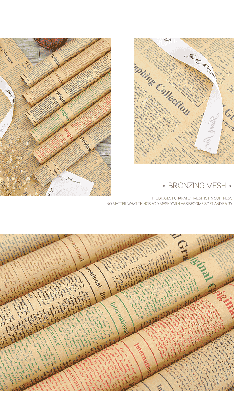 复古英文报纸花束礼品包装牛皮纸 diy花艺鲜花包装材料批发包花纸