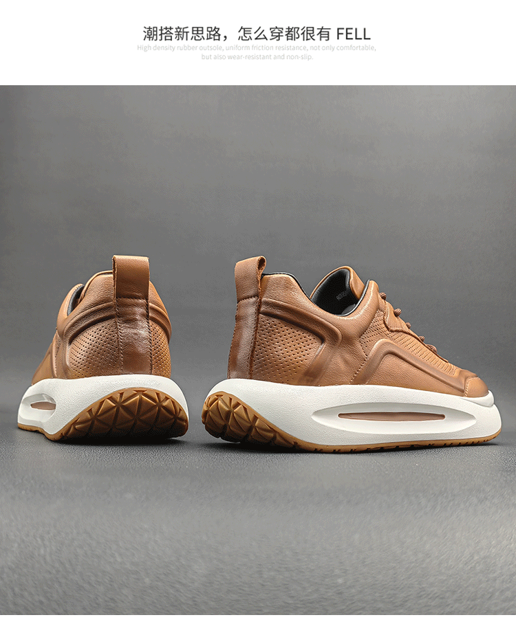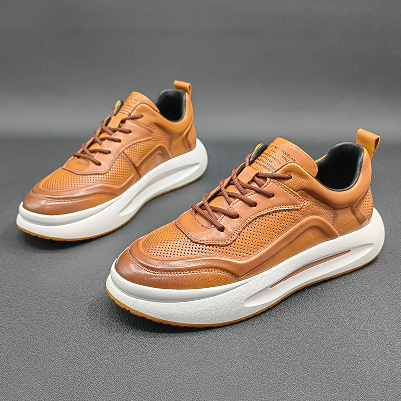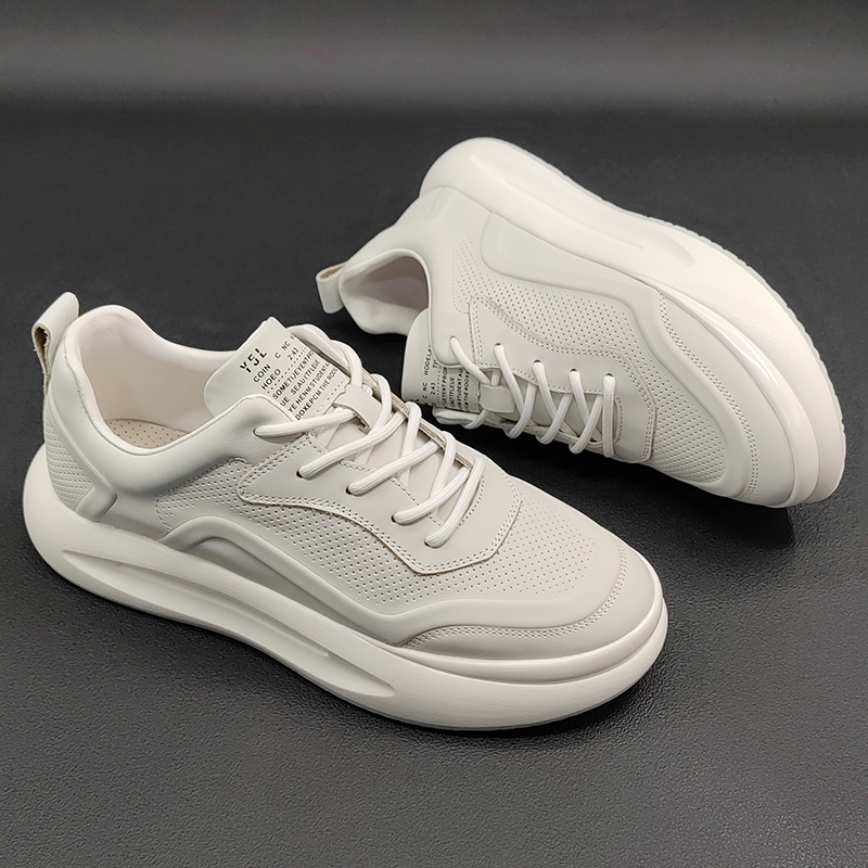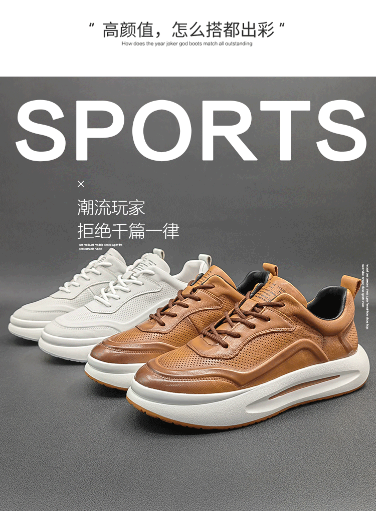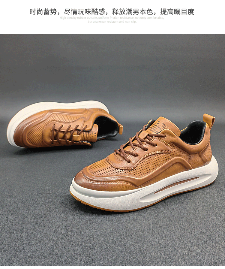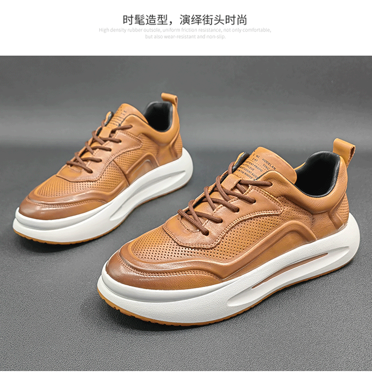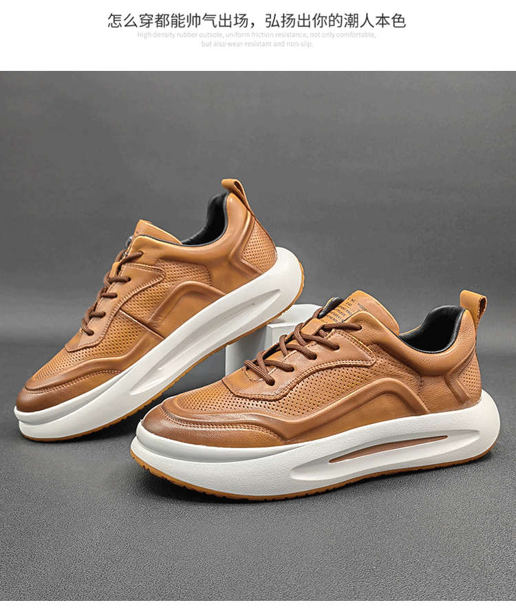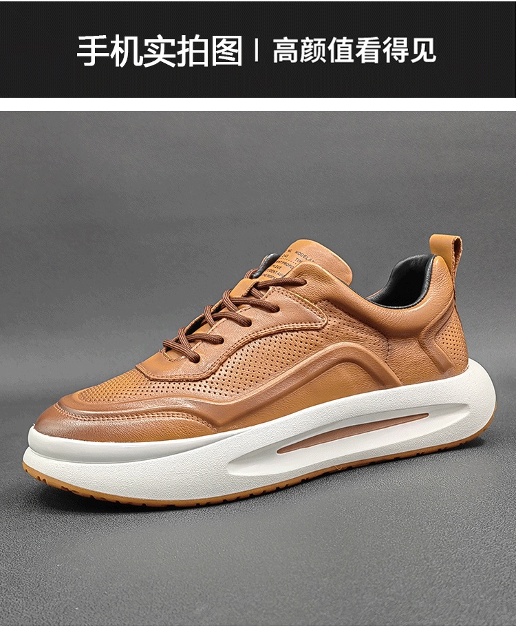 男鞋夏款透氣棕色增高男士板鞋2023新款真皮休閒運動鞋子男小白鞋