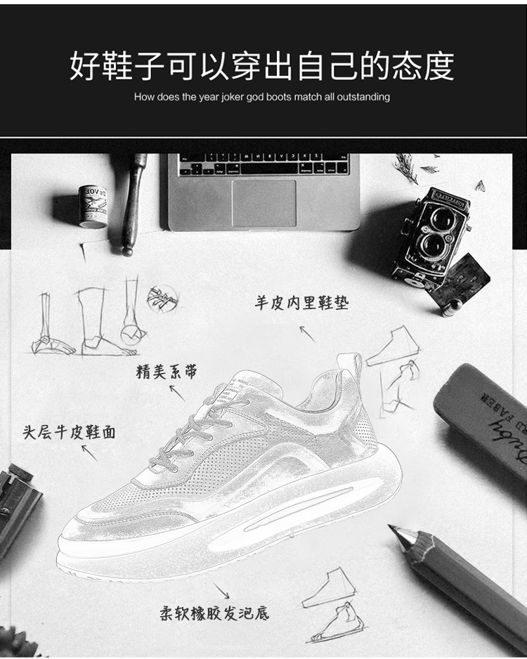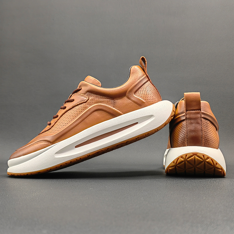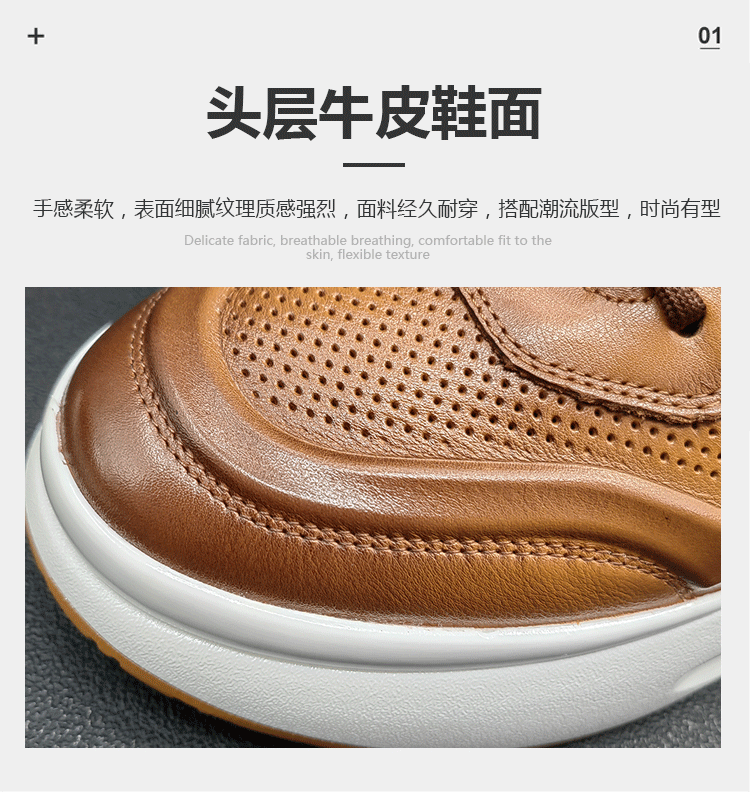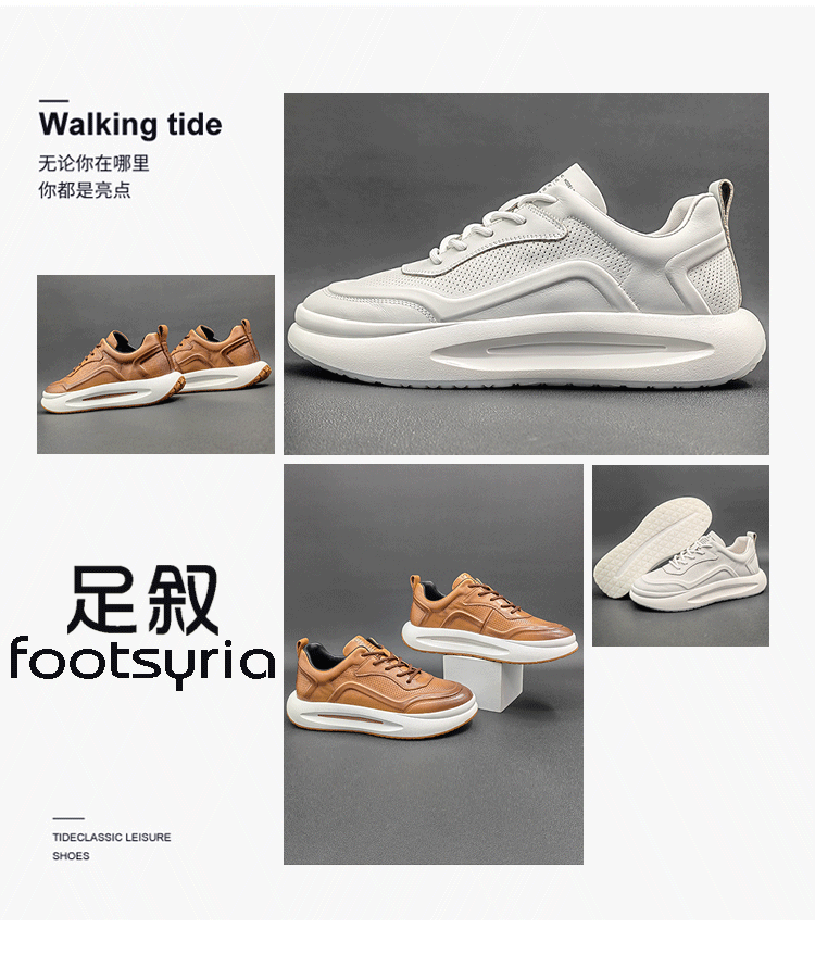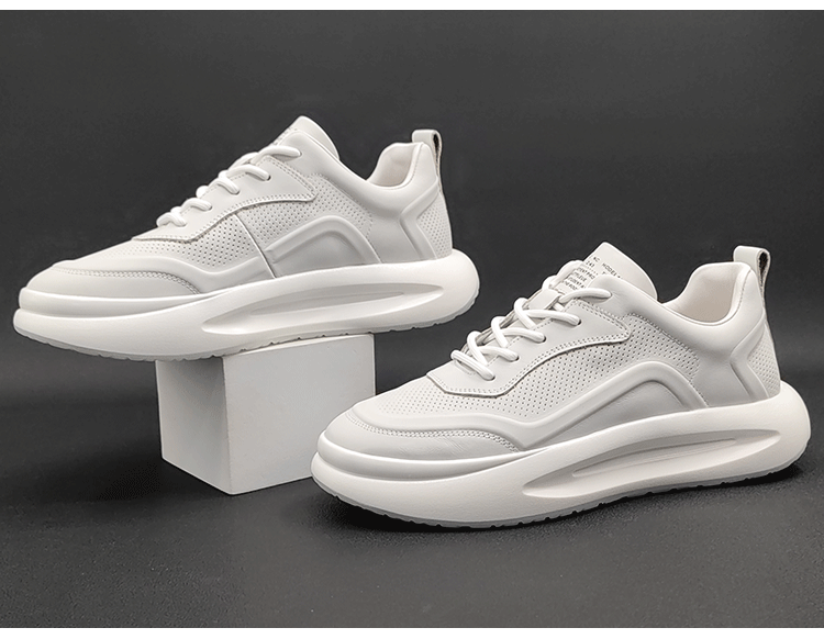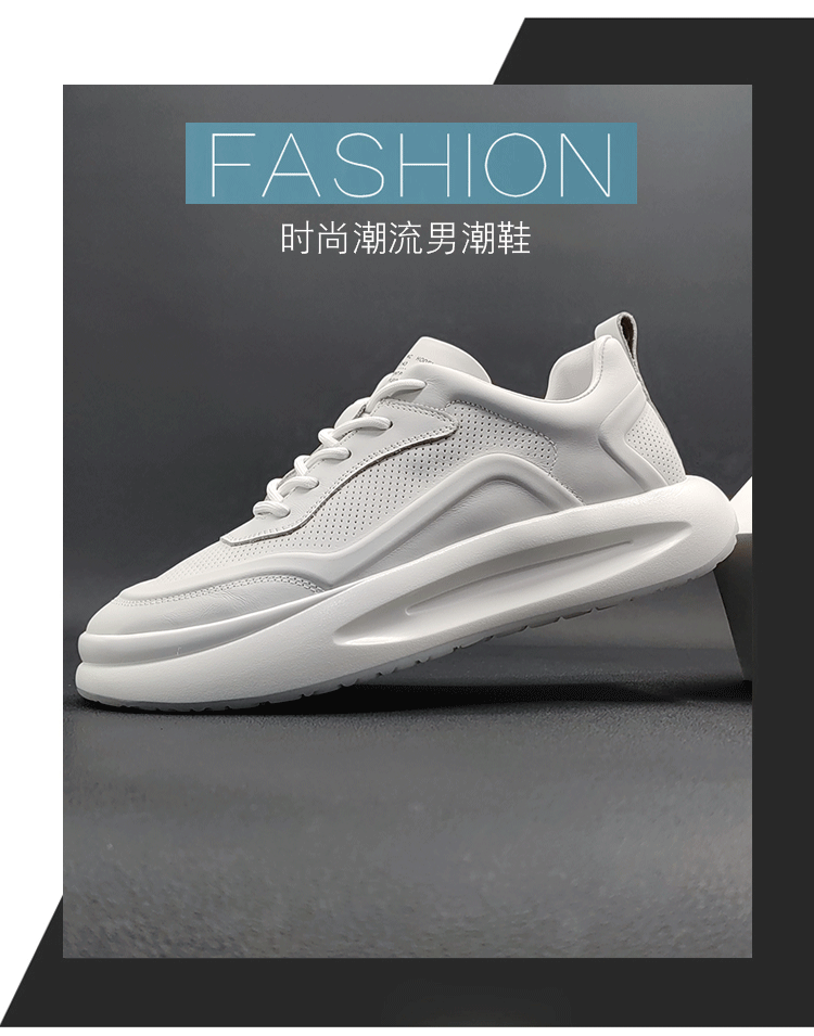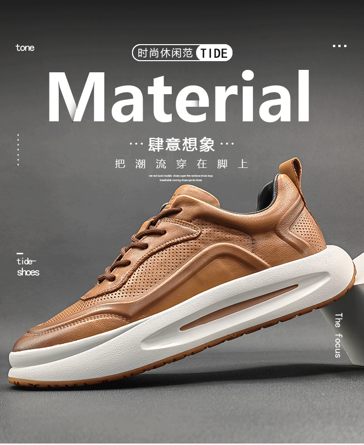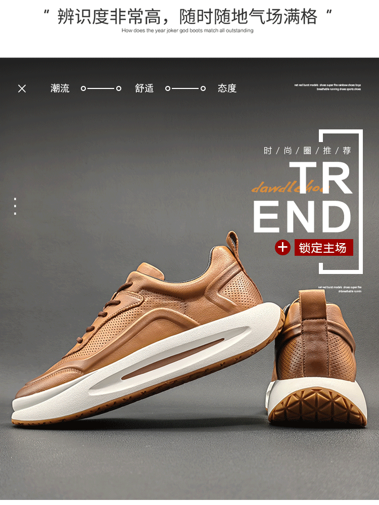 男鞋夏款透氣棕色增高男士板鞋2023新款真皮休閒運動鞋子男小白鞋