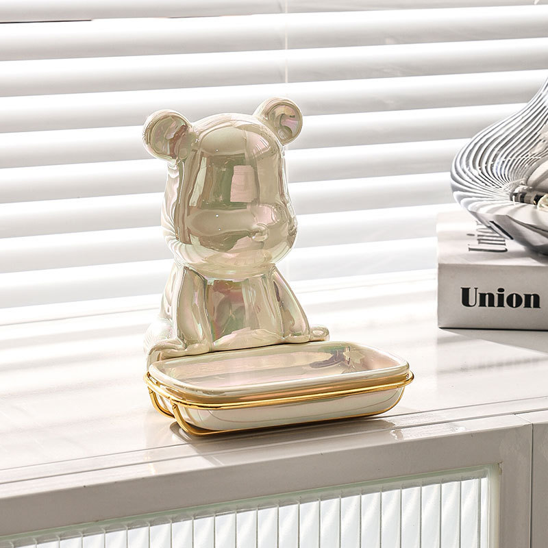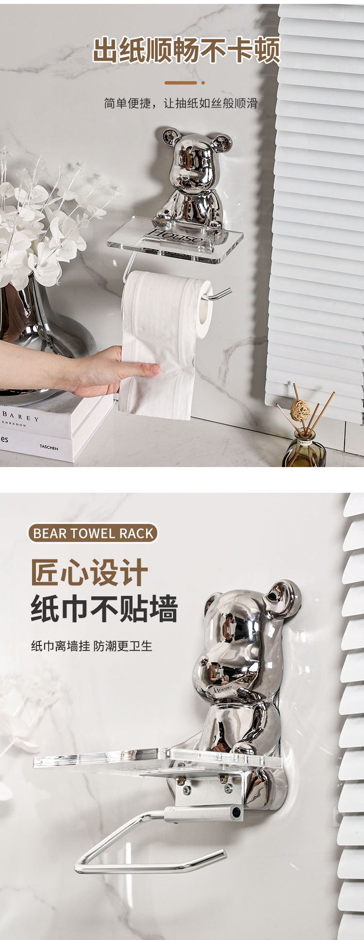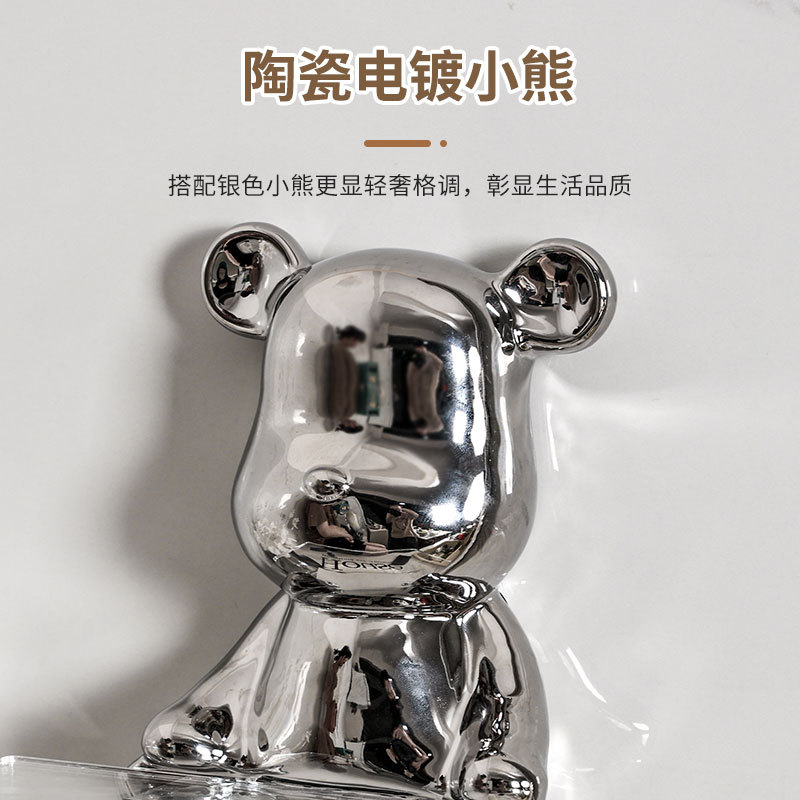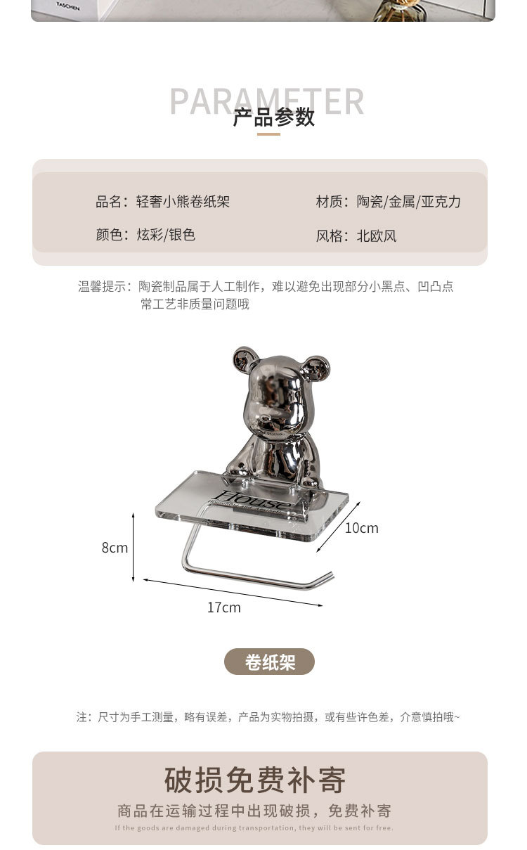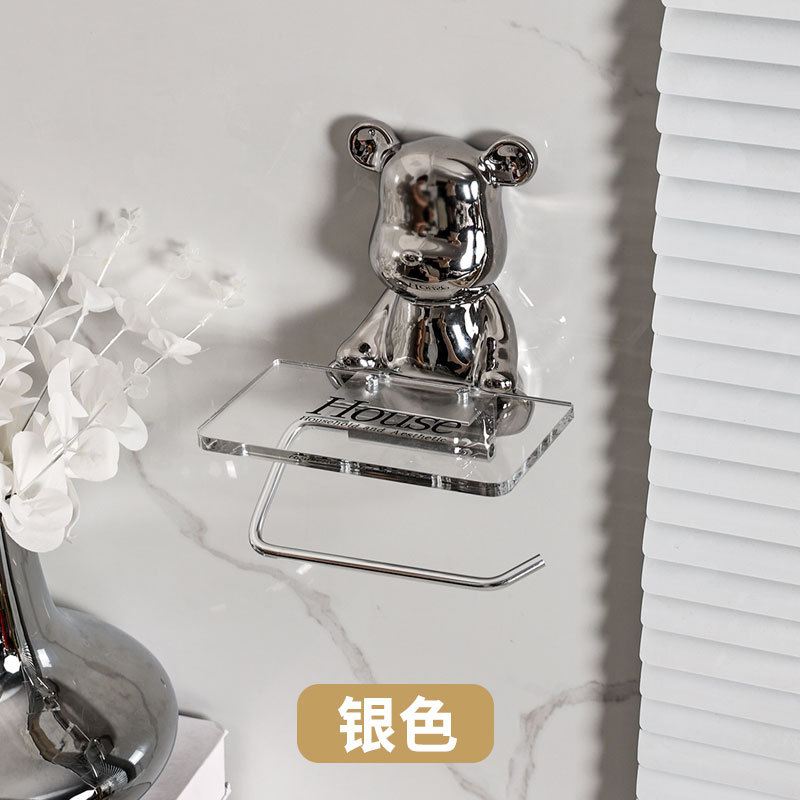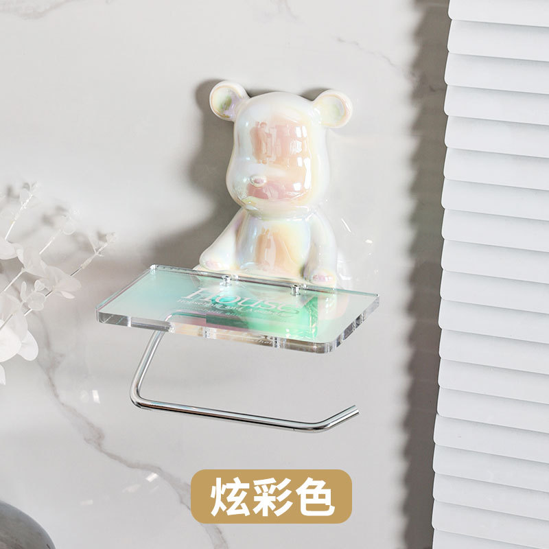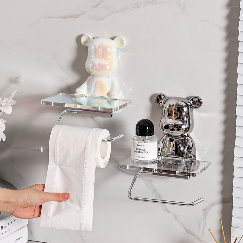 轻奢陶瓷电镀小熊卷纸架免打孔高颜值纸巾架家用卫生纸置物架批发
