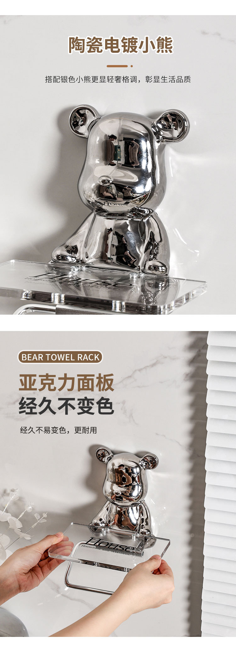 颜色 小熊卷纸架—银色,小熊卷纸架—炫彩,小熊肥皂碟—金色,小熊肥皂碟—炫彩,小熊肥皂碟—银色,HOME熊头肥皂碟(混色)+双层架,HOME熊头肥皂碟(白色)+单层架,HOME熊头肥皂碟(银色)+单层架