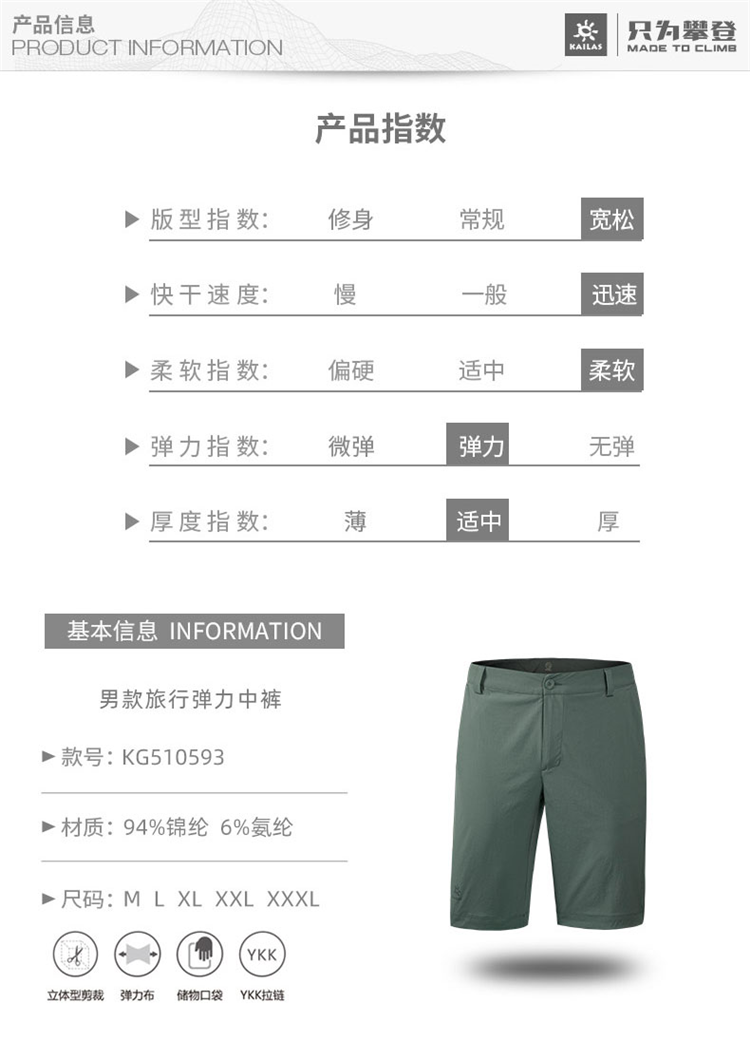 凱樂石短褲男女速乾褲夏季彈力透氣薄款跑步旅行五分褲KG510593