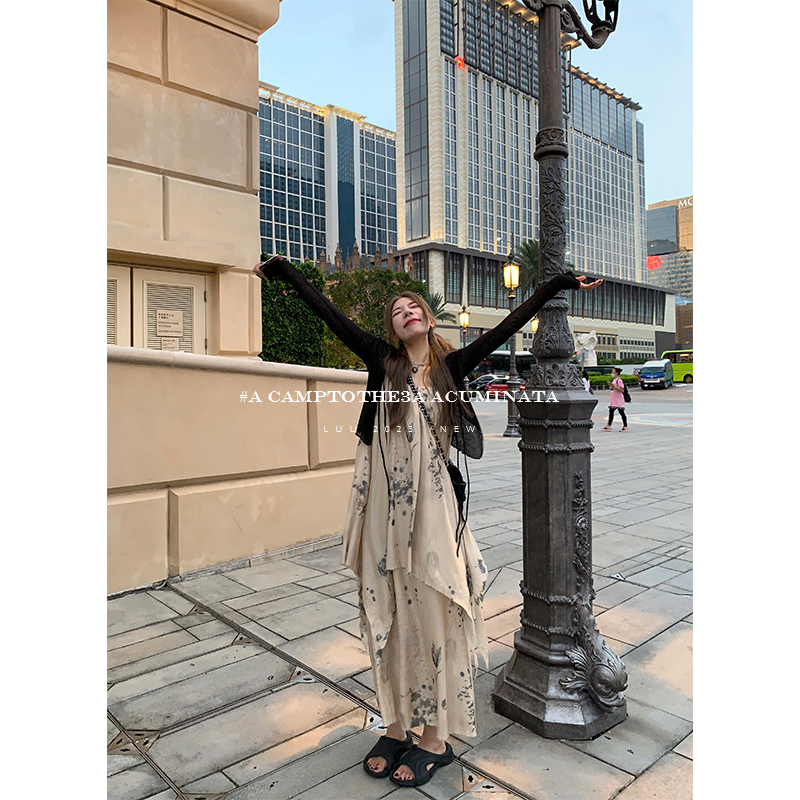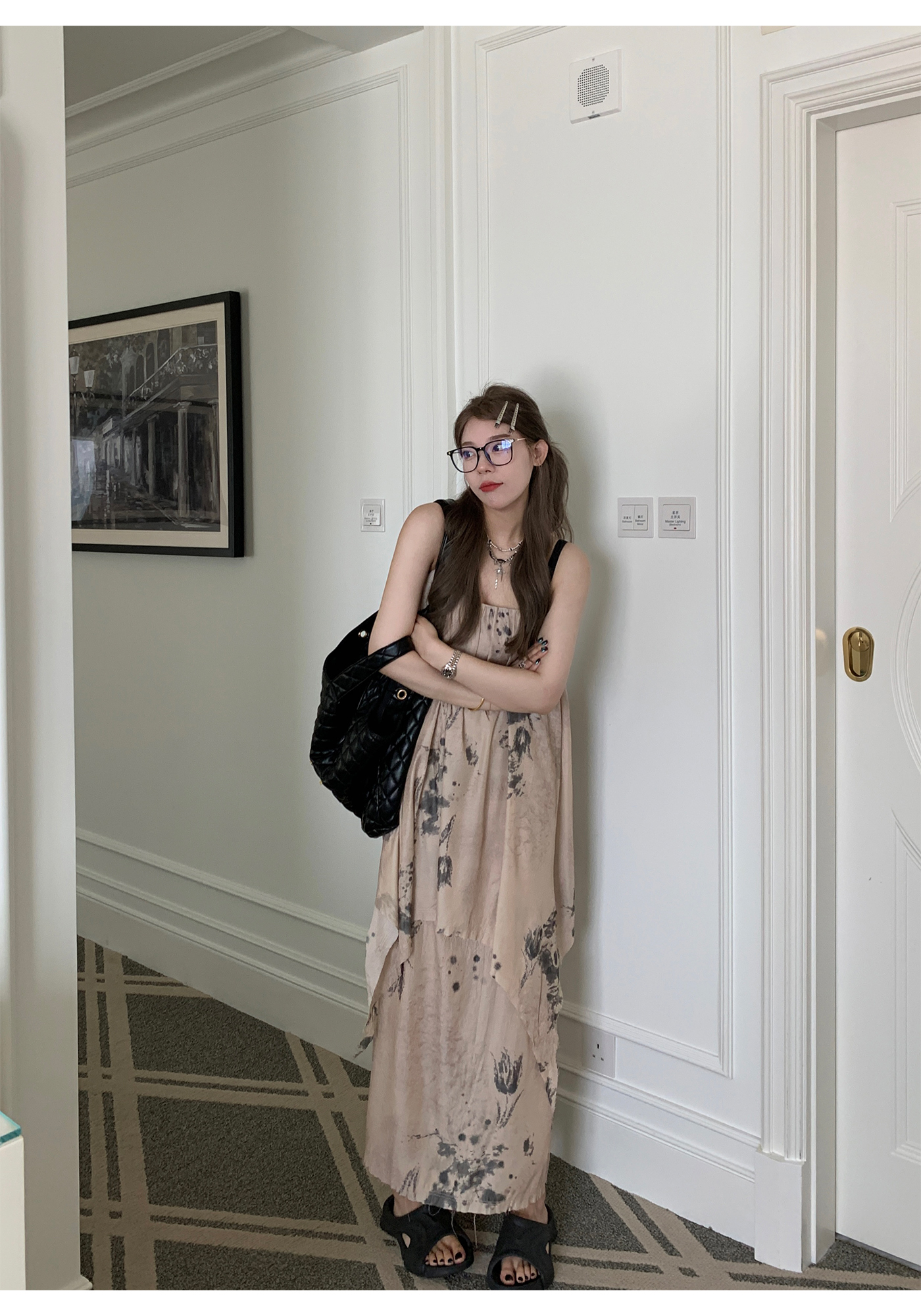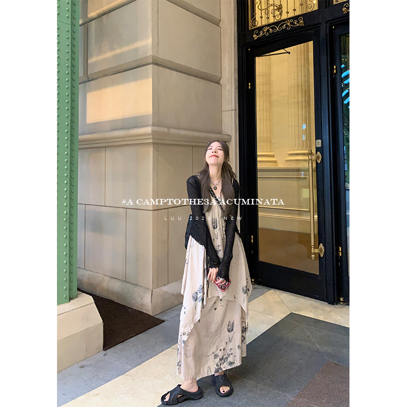LUU桃喜兒/uma風雙層吊帶洋裝過膝設計感顯瘦高級感休閒寬鬆女