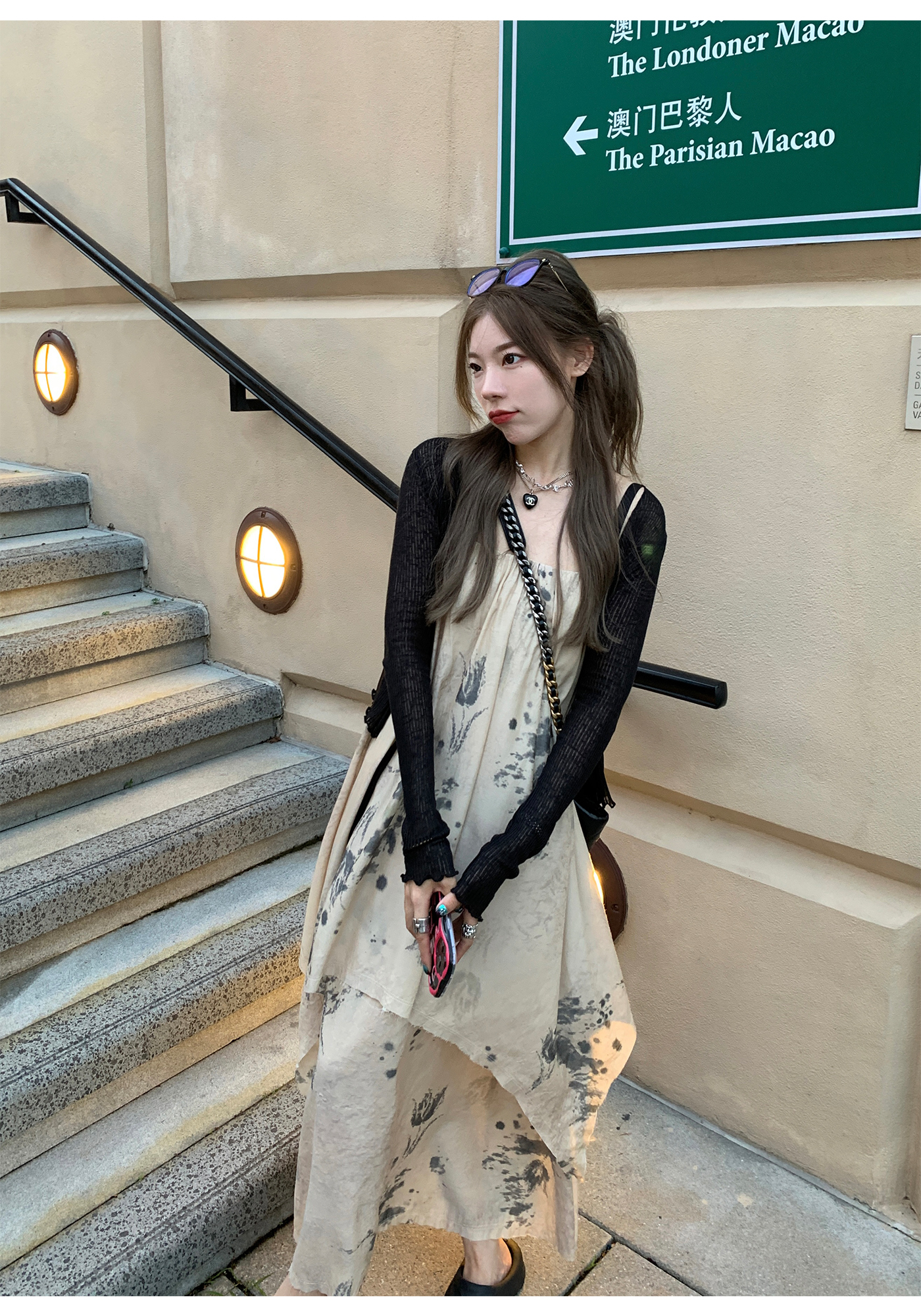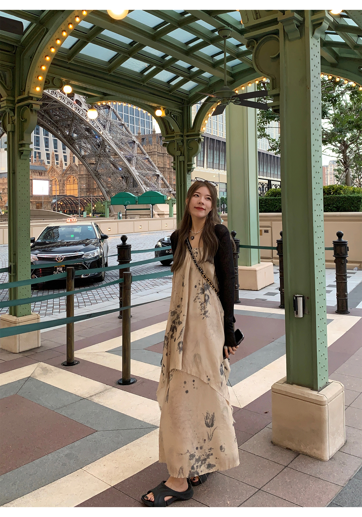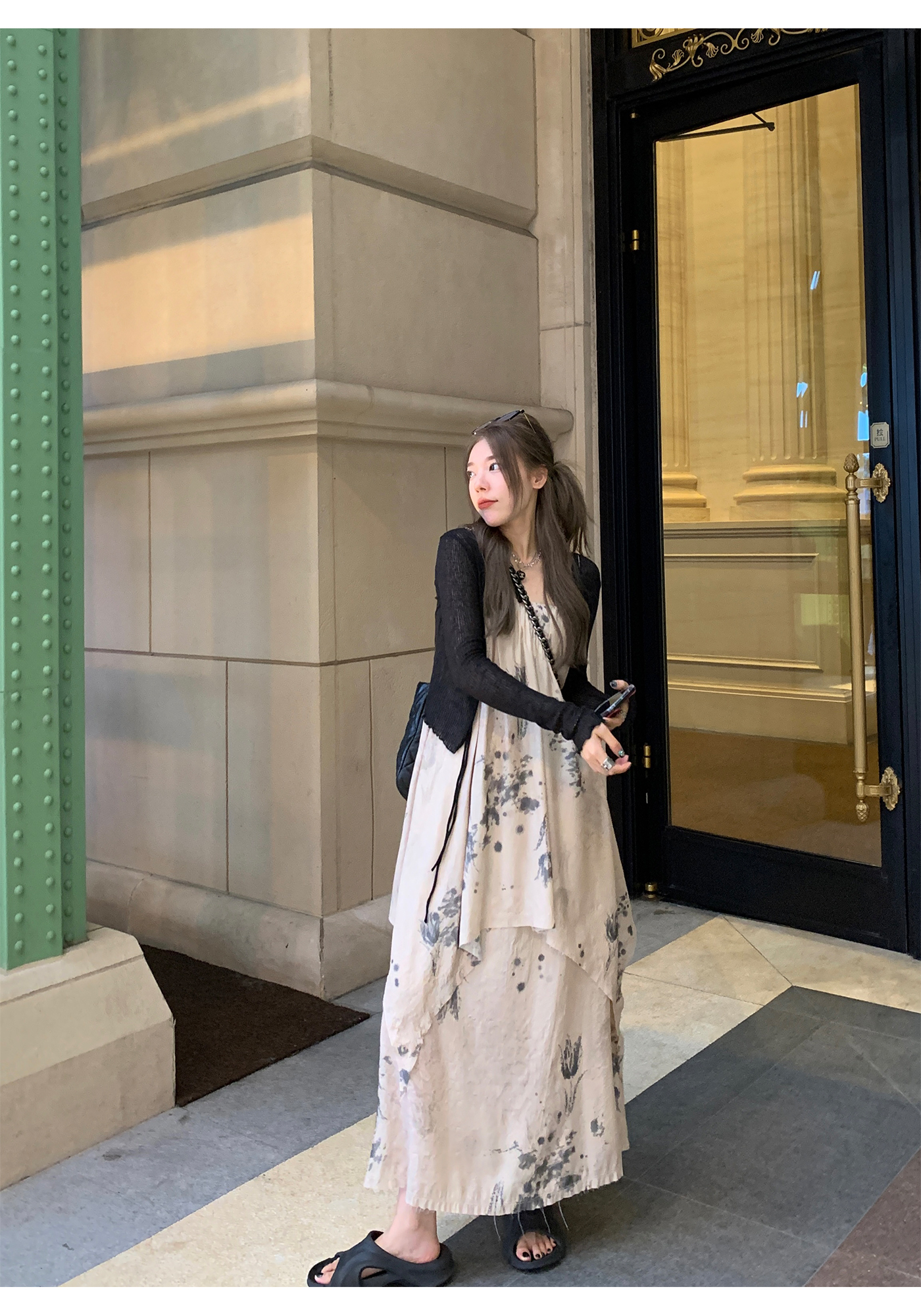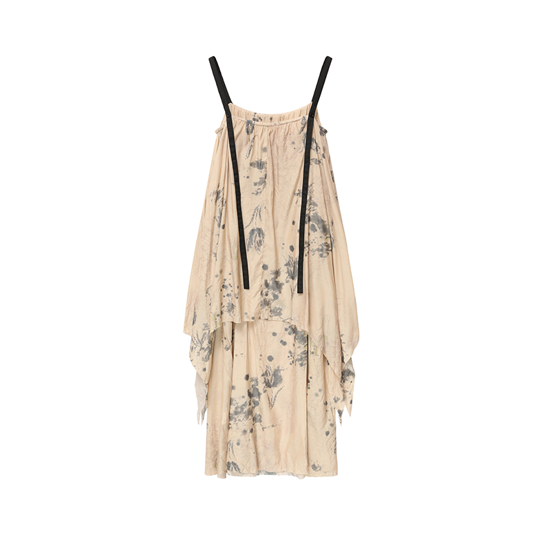 顏色分類 uma風黑肩帶雙層水墨印花洋裝
