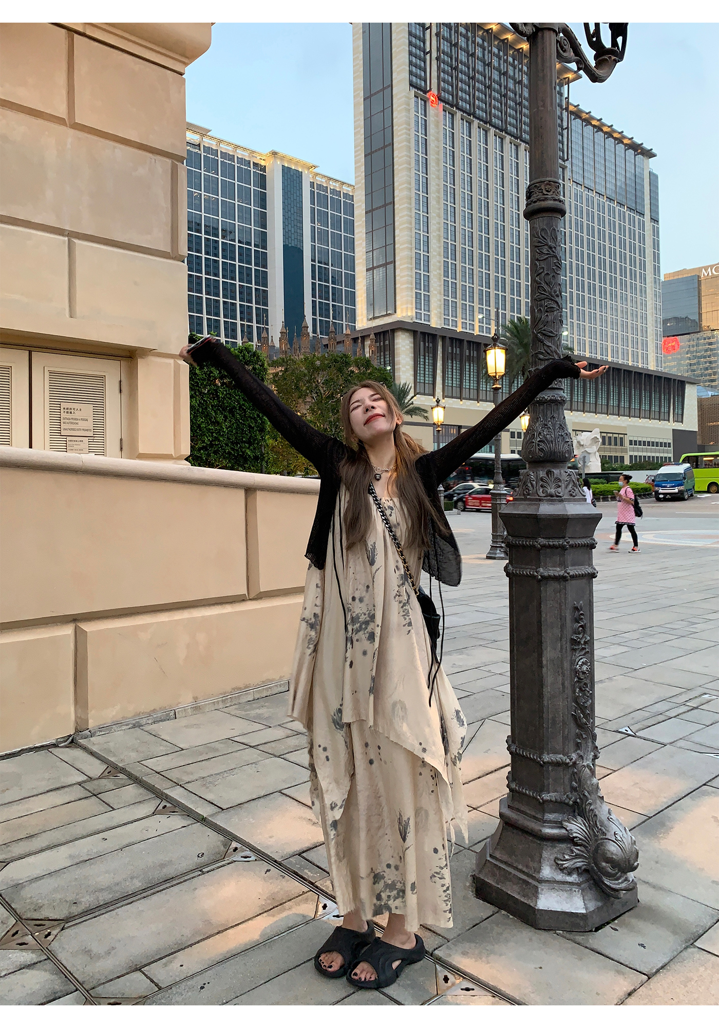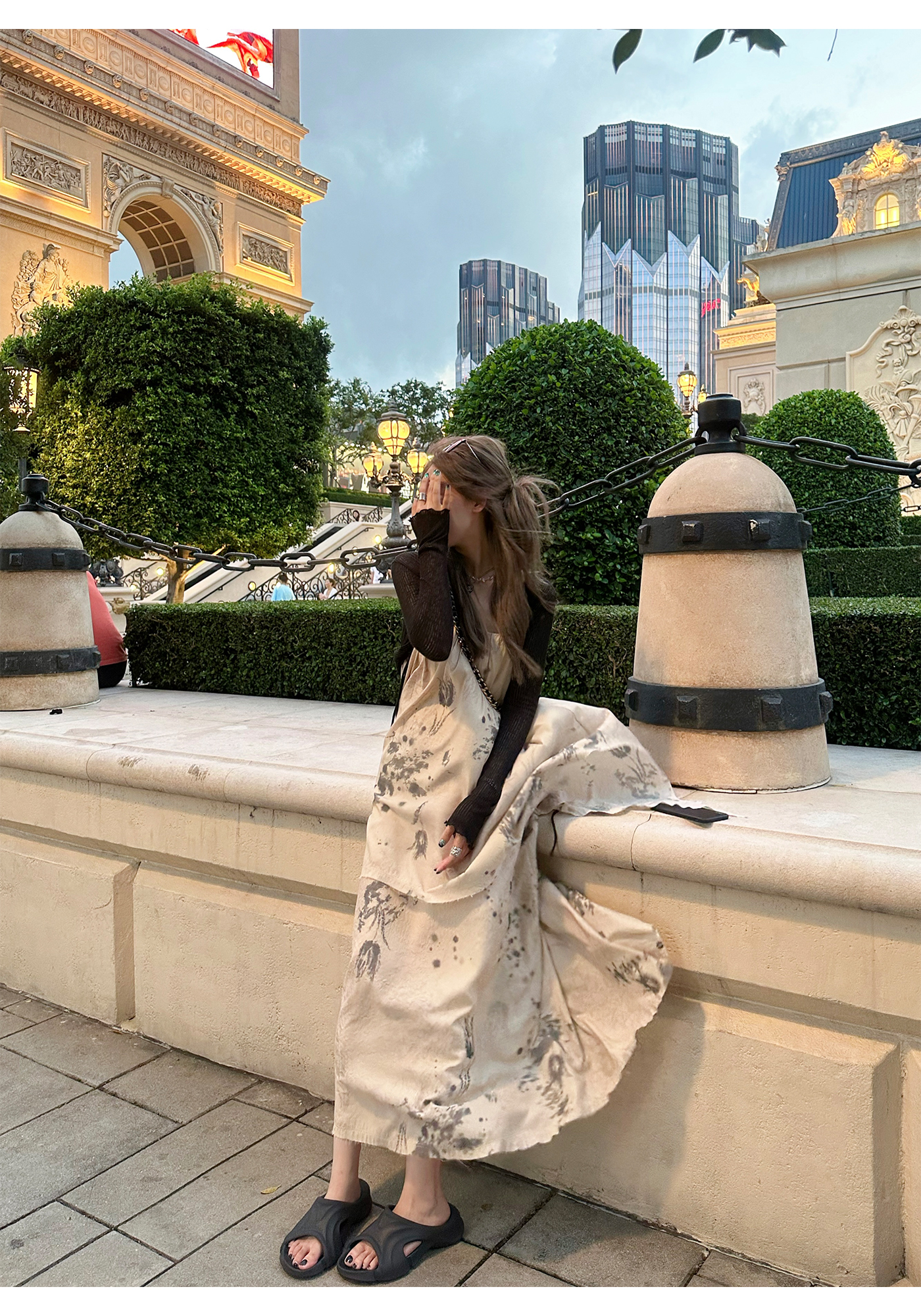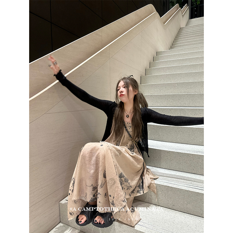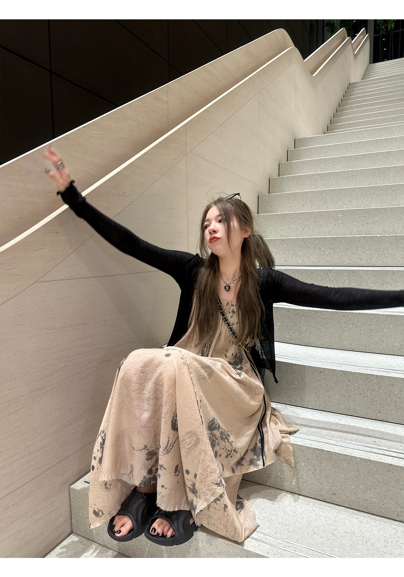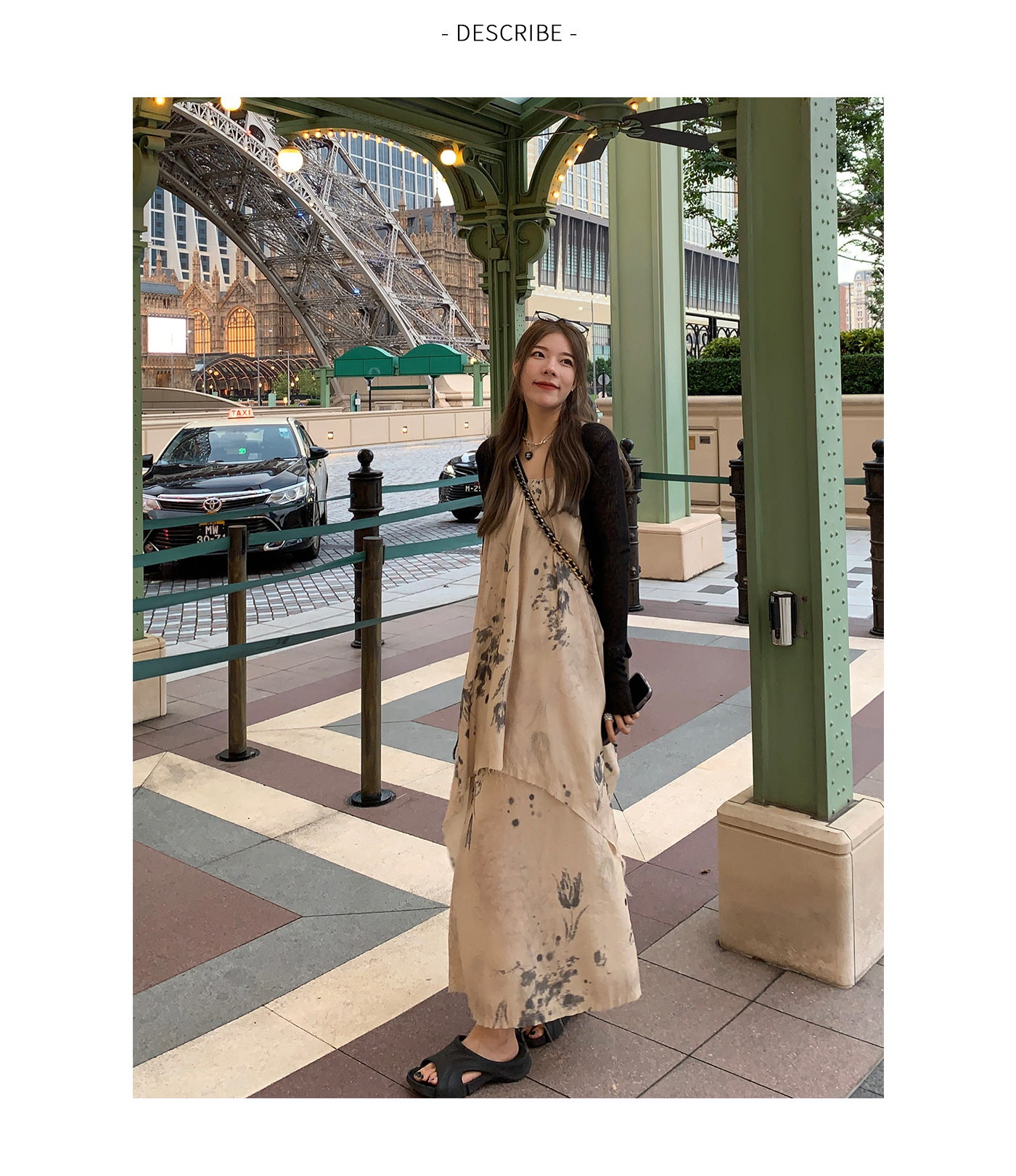 顏色分類 uma風黑肩帶雙層水墨印花洋裝