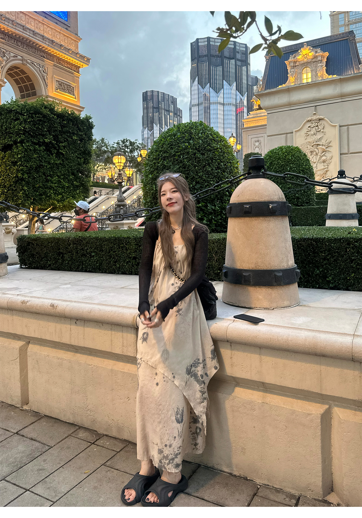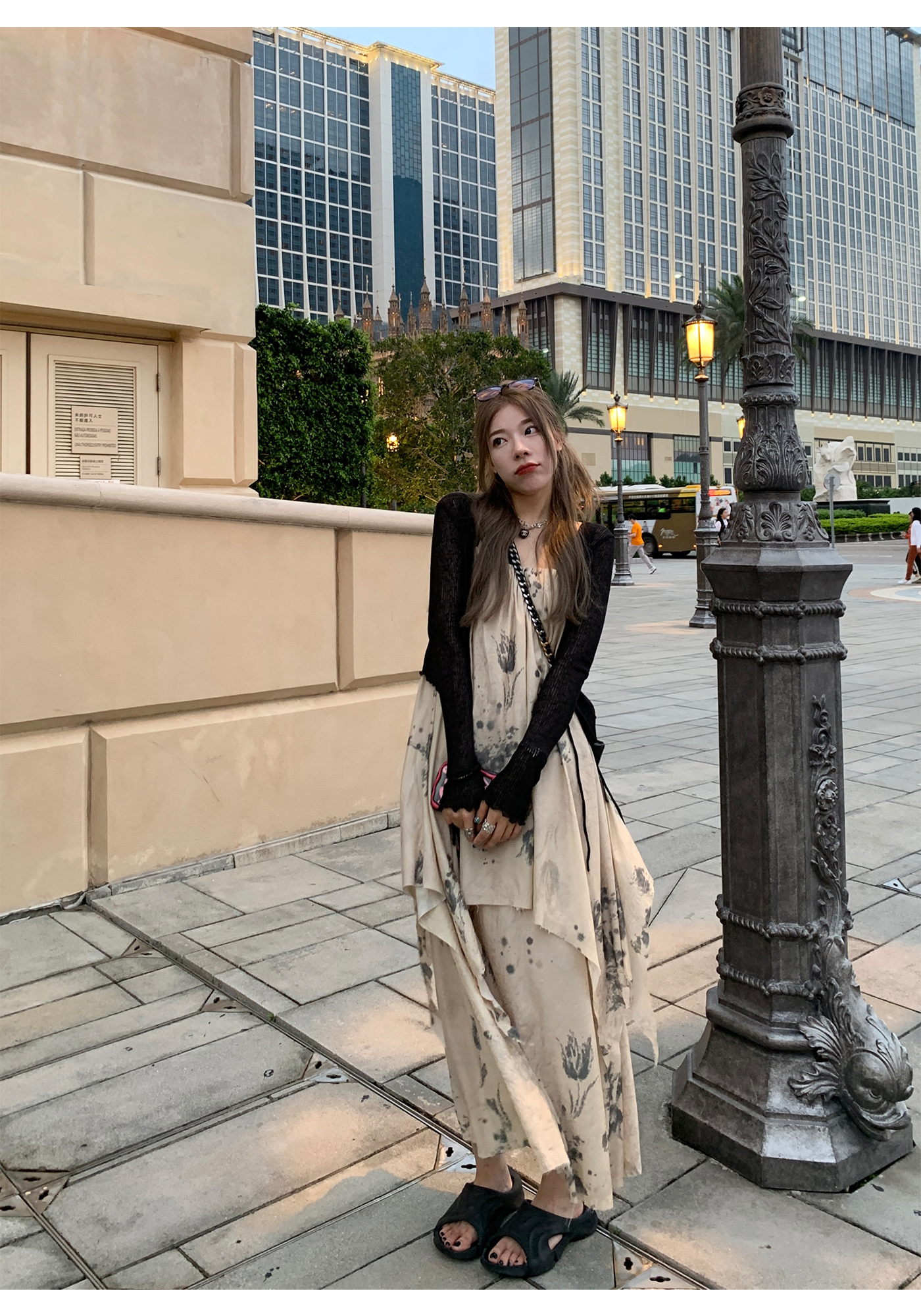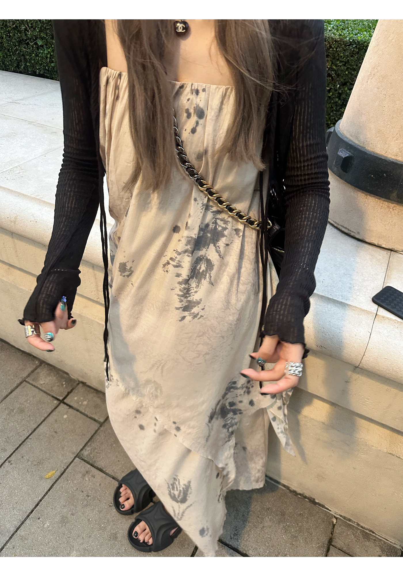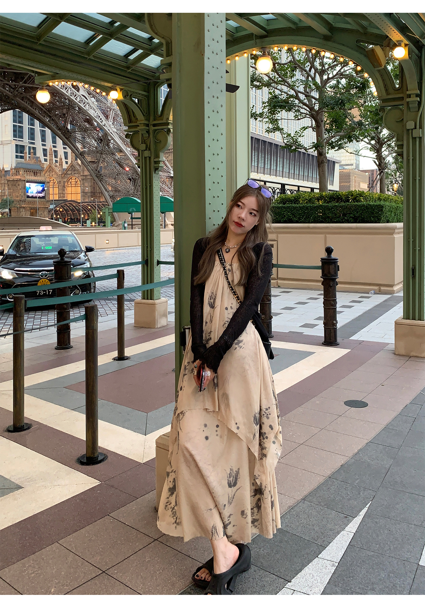 顏色分類 uma風黑肩帶雙層水墨印花洋裝