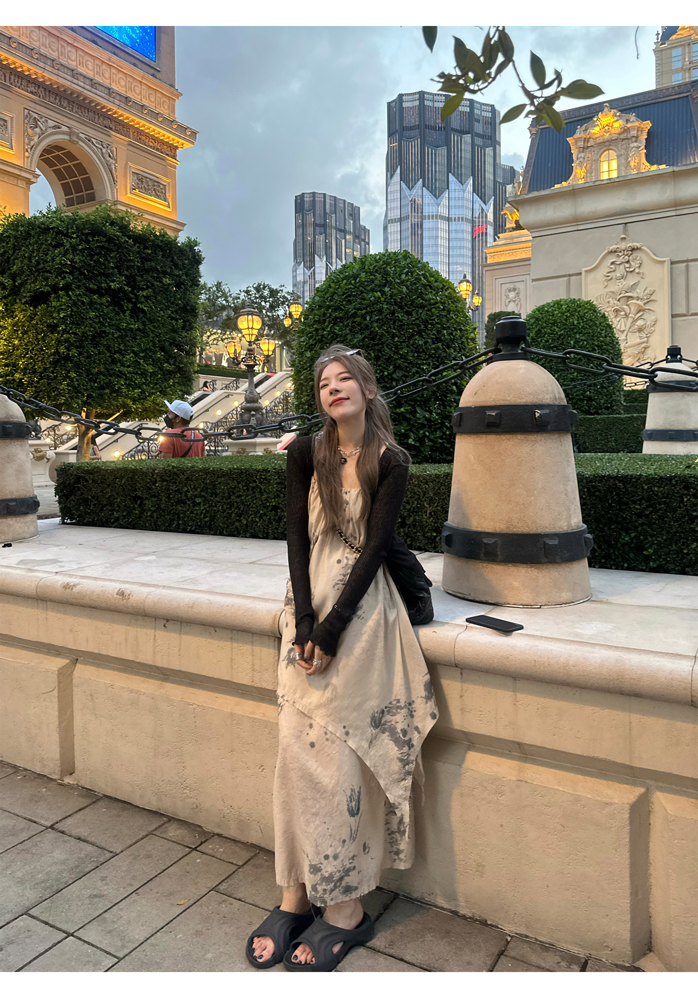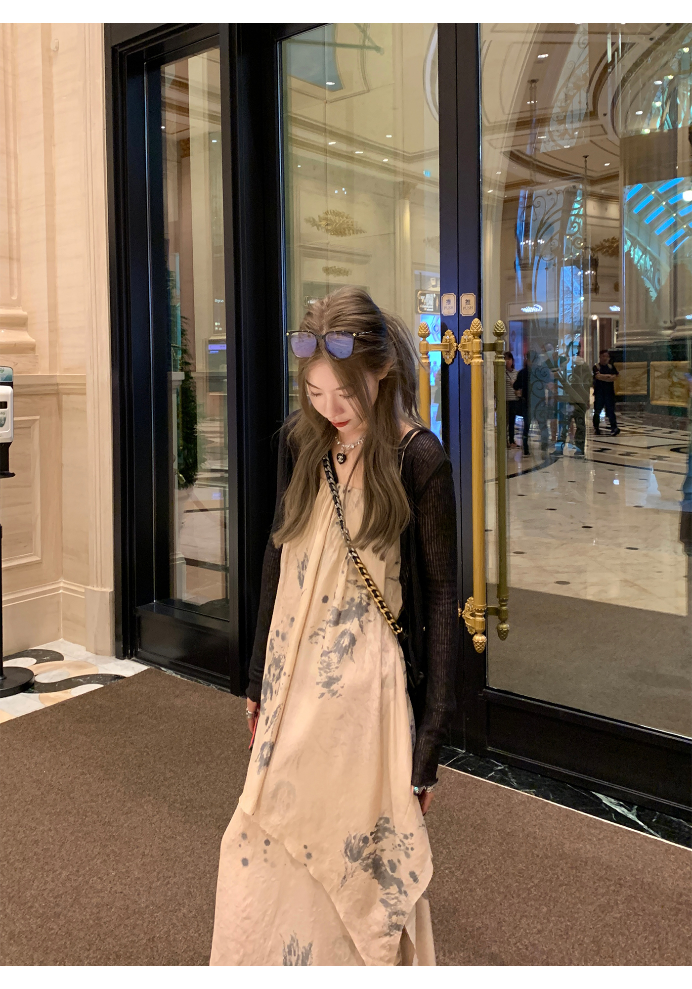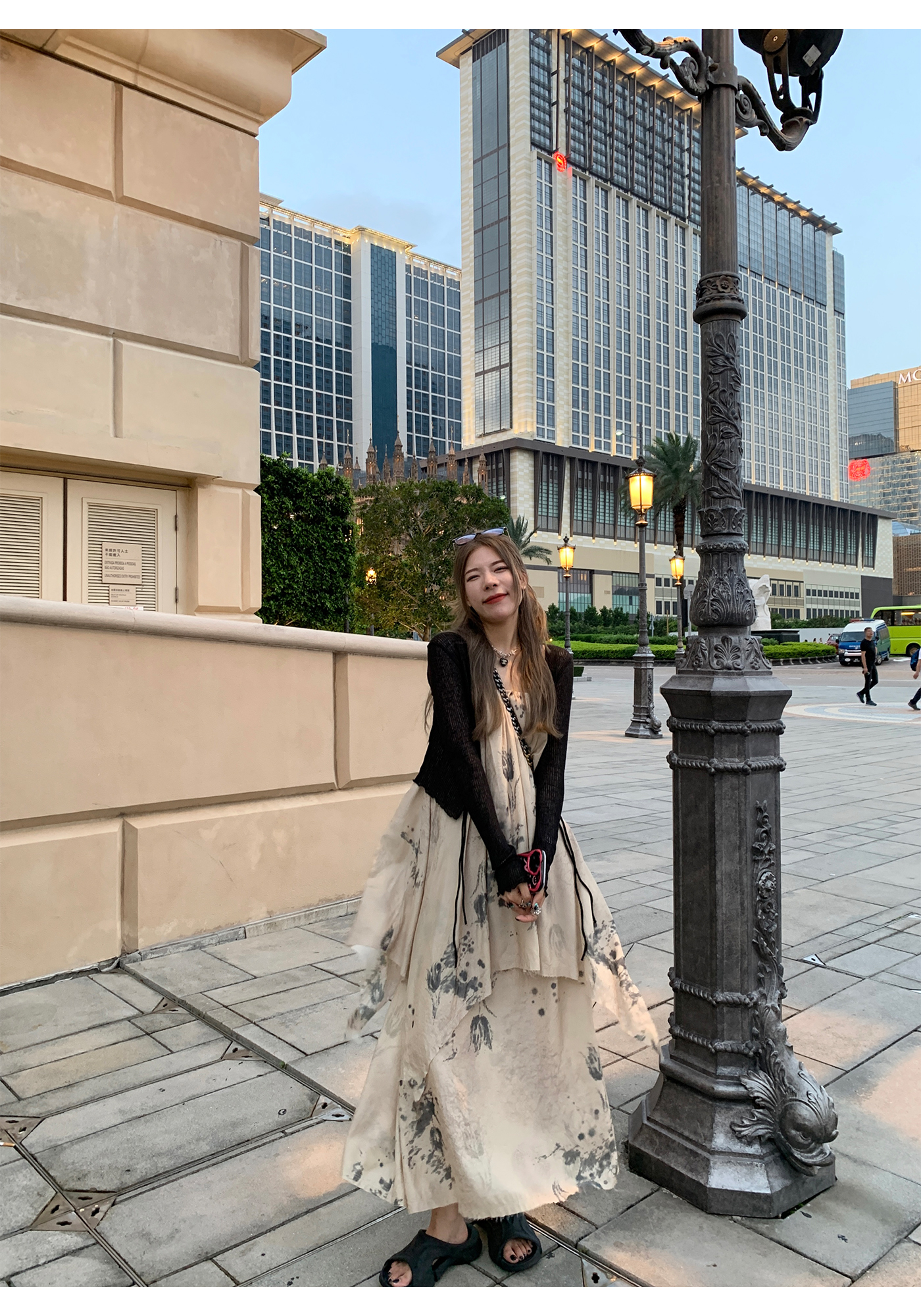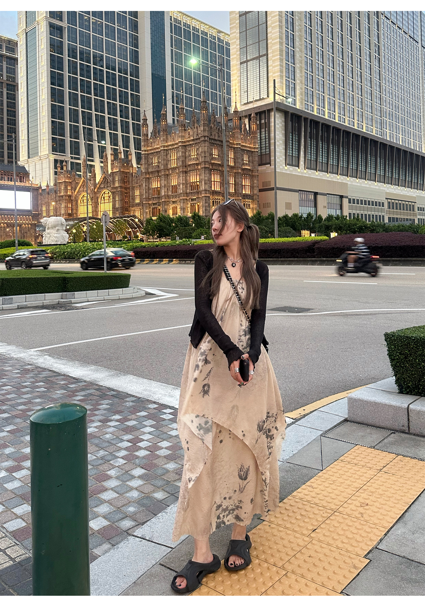 顏色分類 uma風黑肩帶雙層水墨印花洋裝