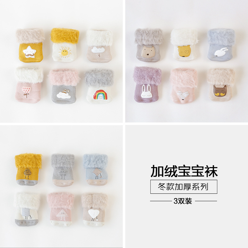 18秋冬新款加绒加厚保暖宝宝袜子卡通高筒婴儿袜0-1-3-5岁儿童袜
