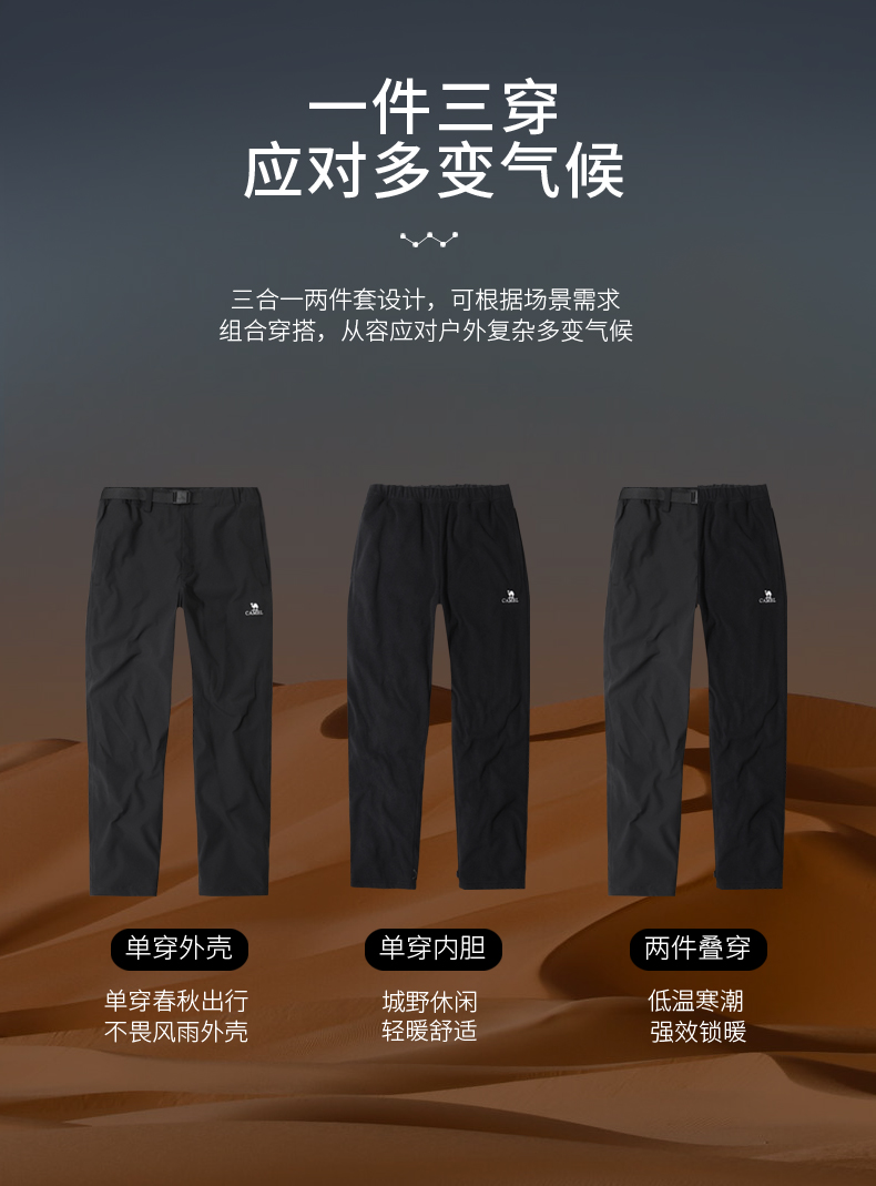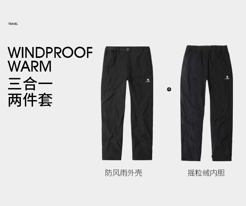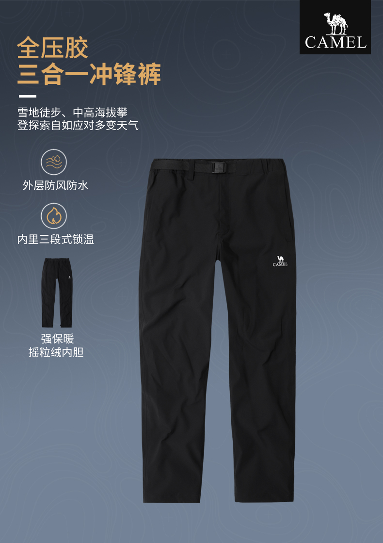 駱駝戶外衝鋒褲男三合一秋冬防風防水加厚保暖登山滑雪長褲羽絨褲