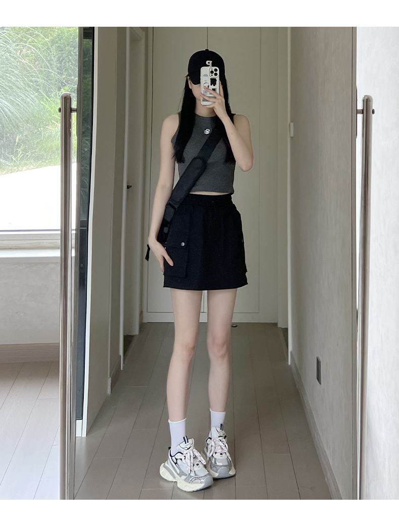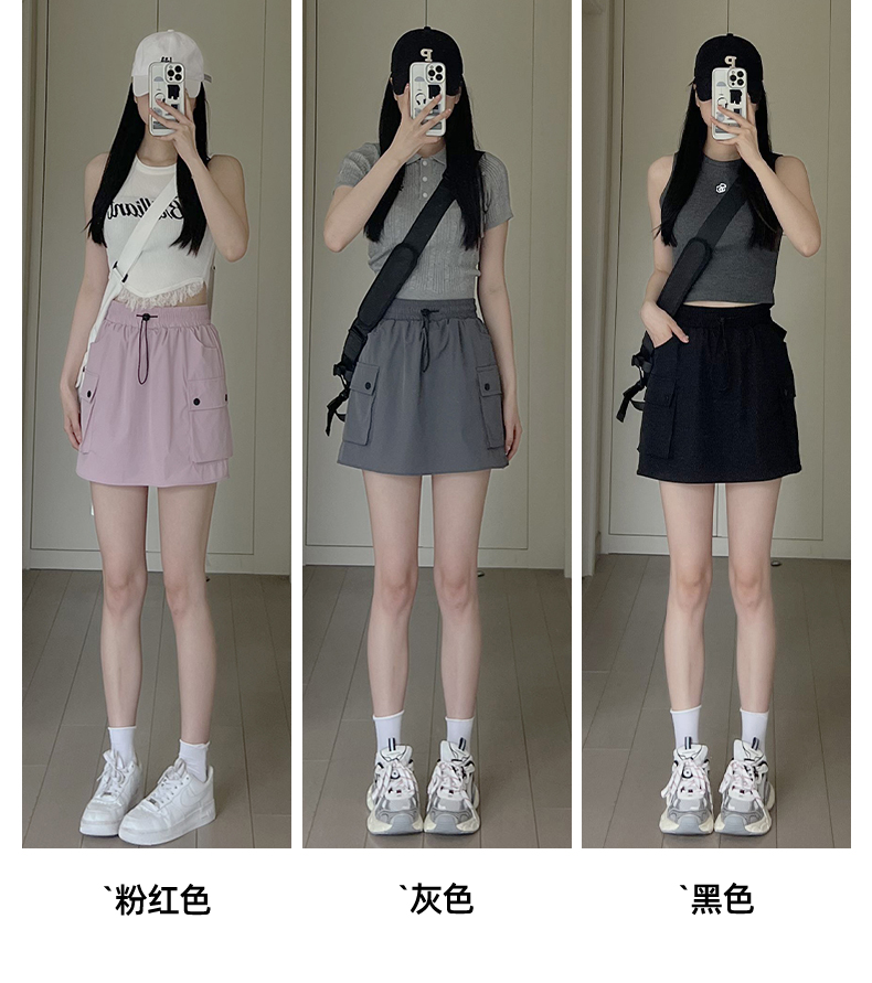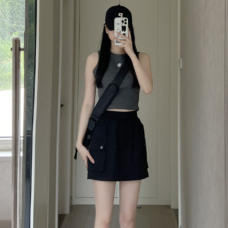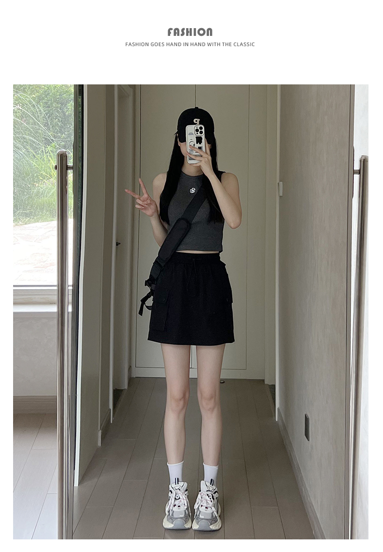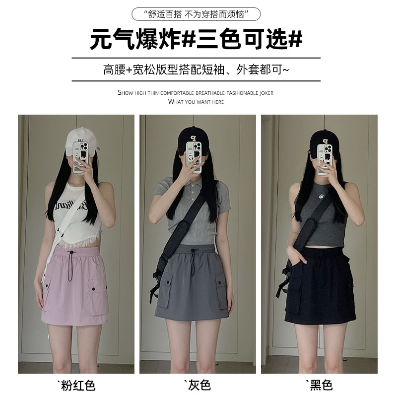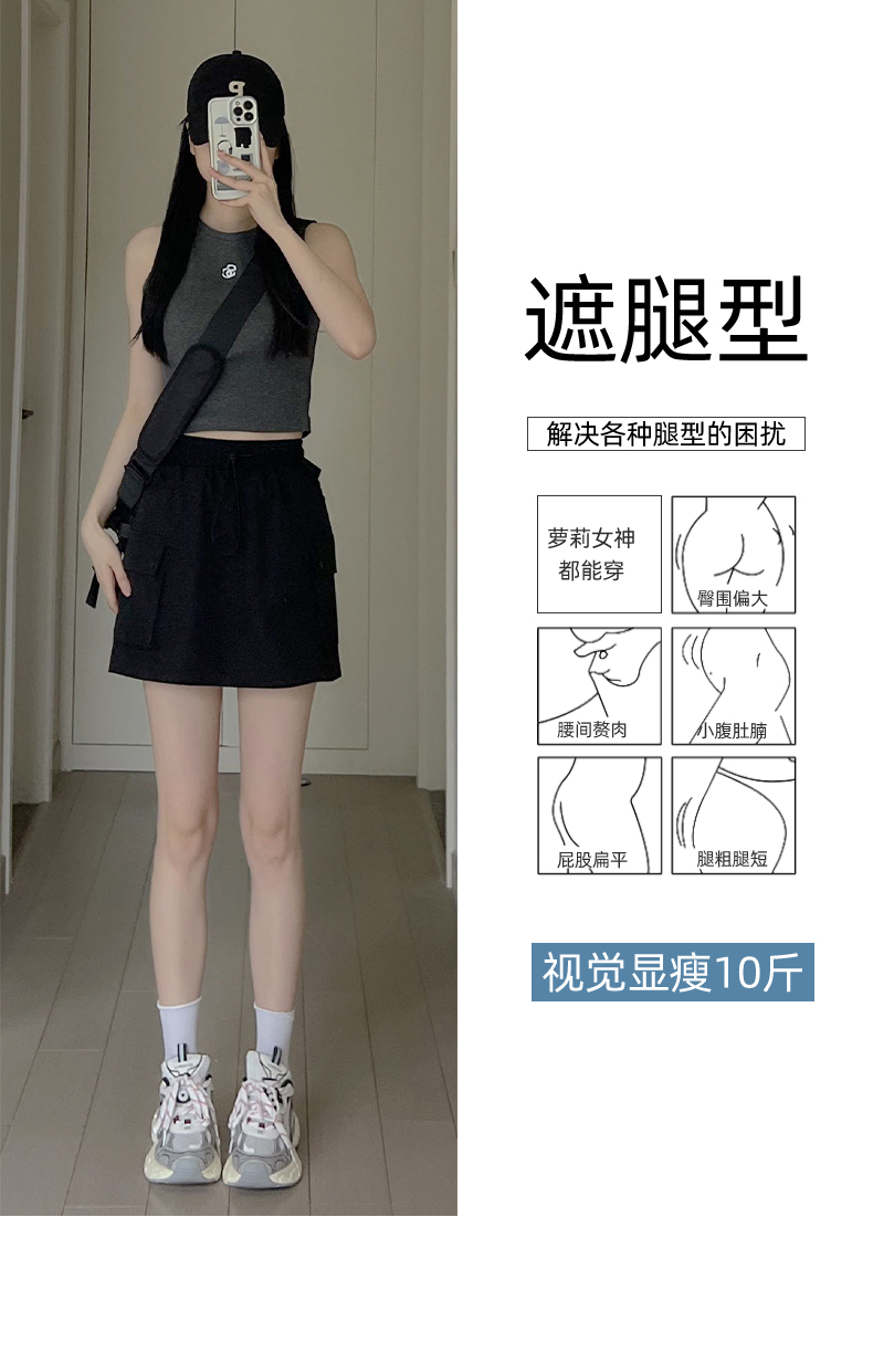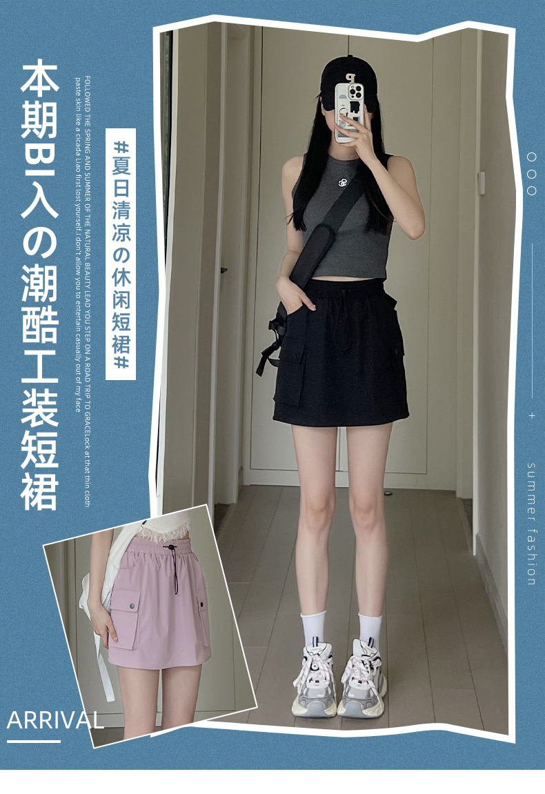 黑色美式工裝短裙女夏薄款2023新款速乾a字高腰顯瘦小個子半身裙