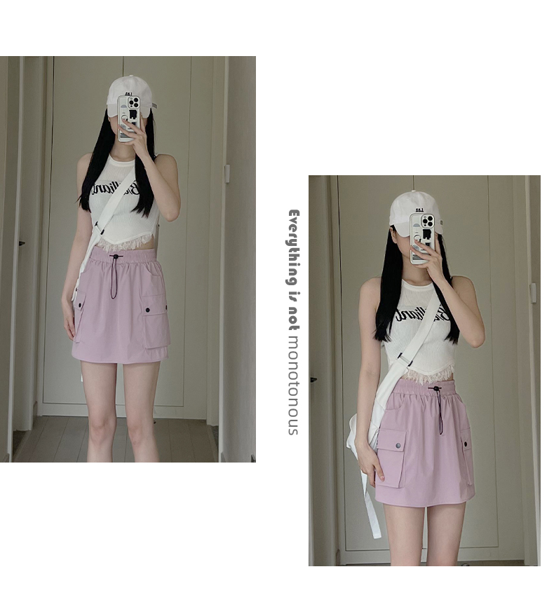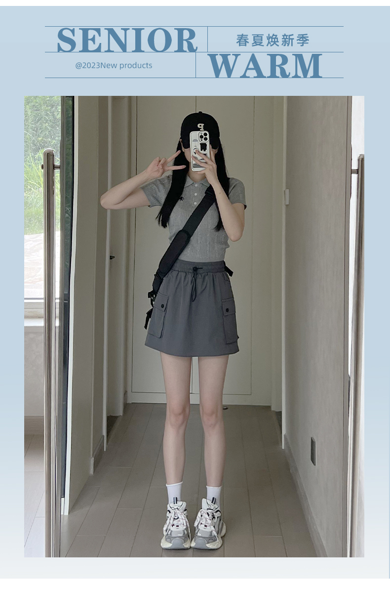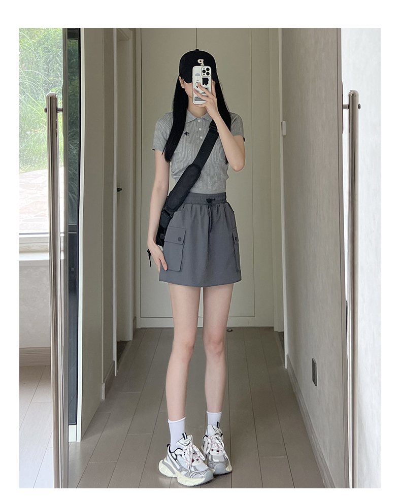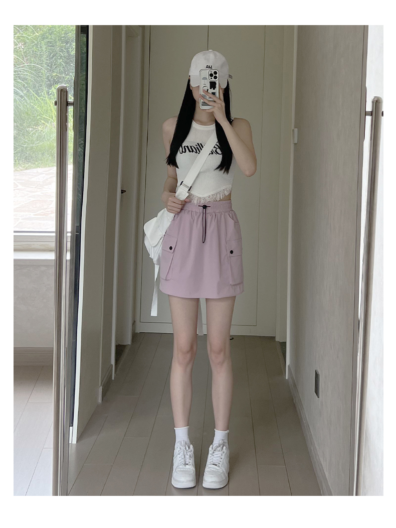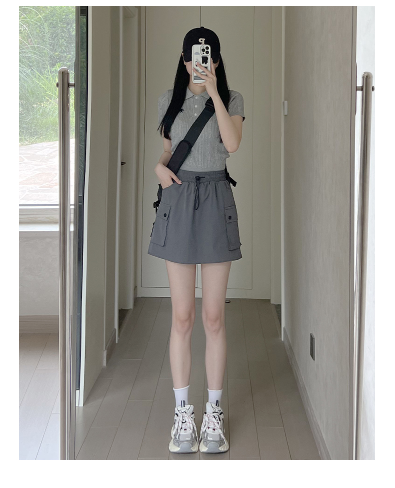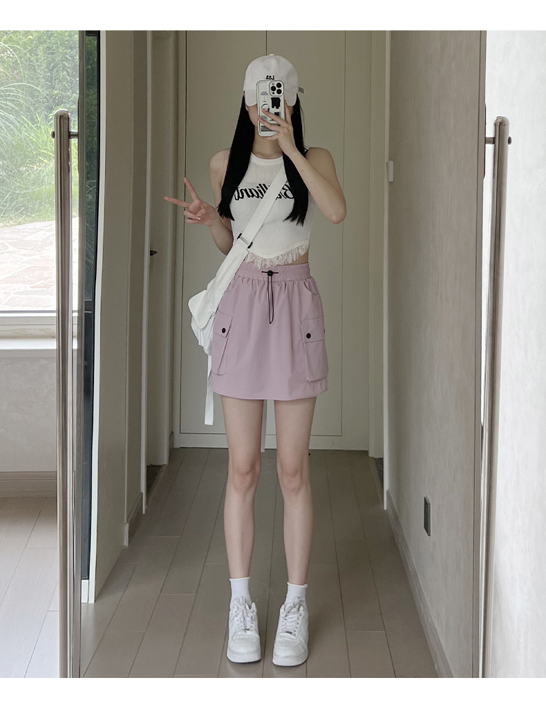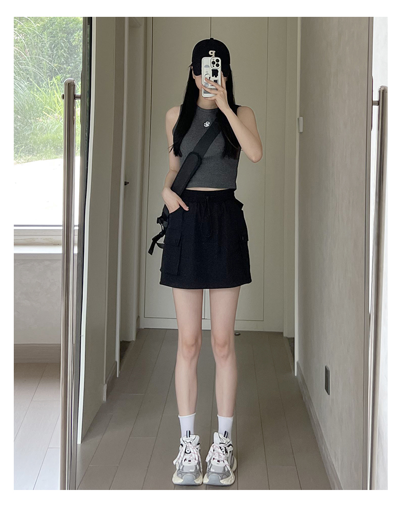 黑色美式工裝短裙女夏薄款2023新款速乾a字高腰顯瘦小個子半身裙