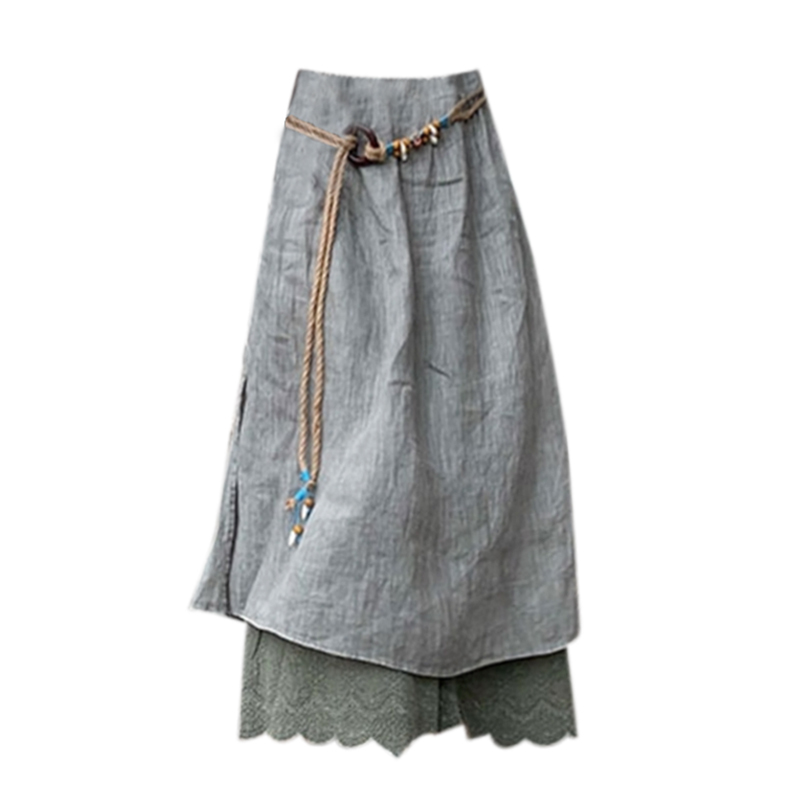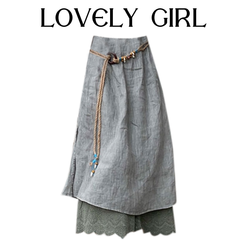 清倉秒殺品牌折扣復古慵懶風假兩件裙褲小眾設計感鏤空花邊闊腿褲