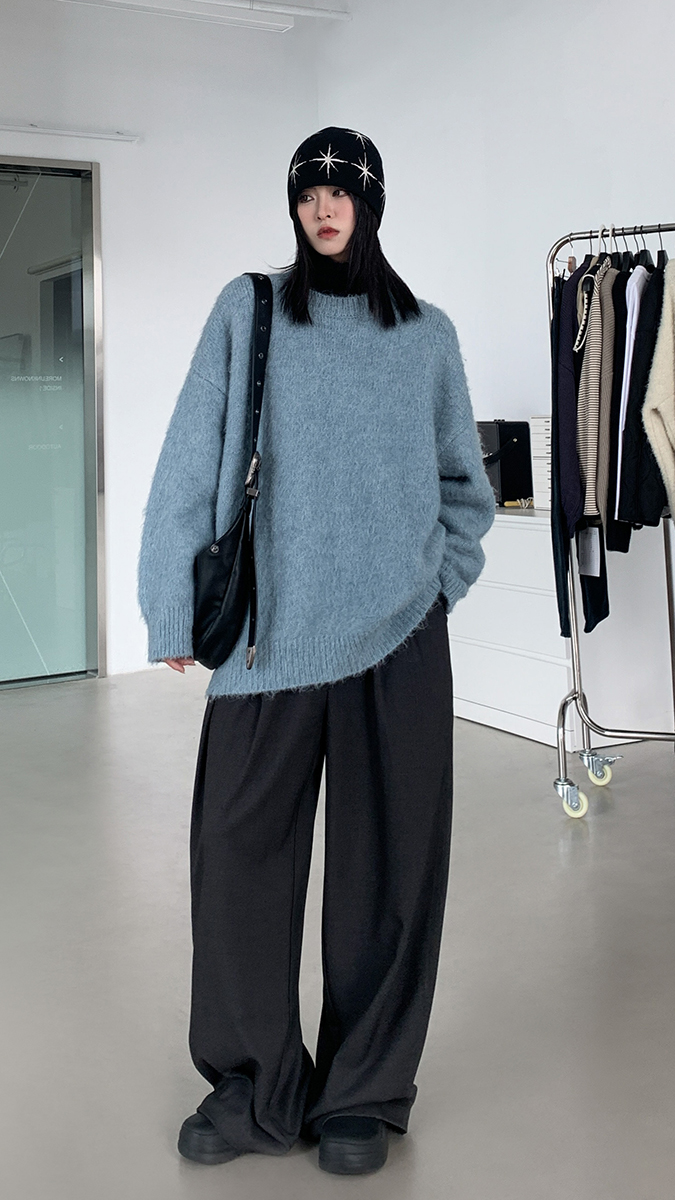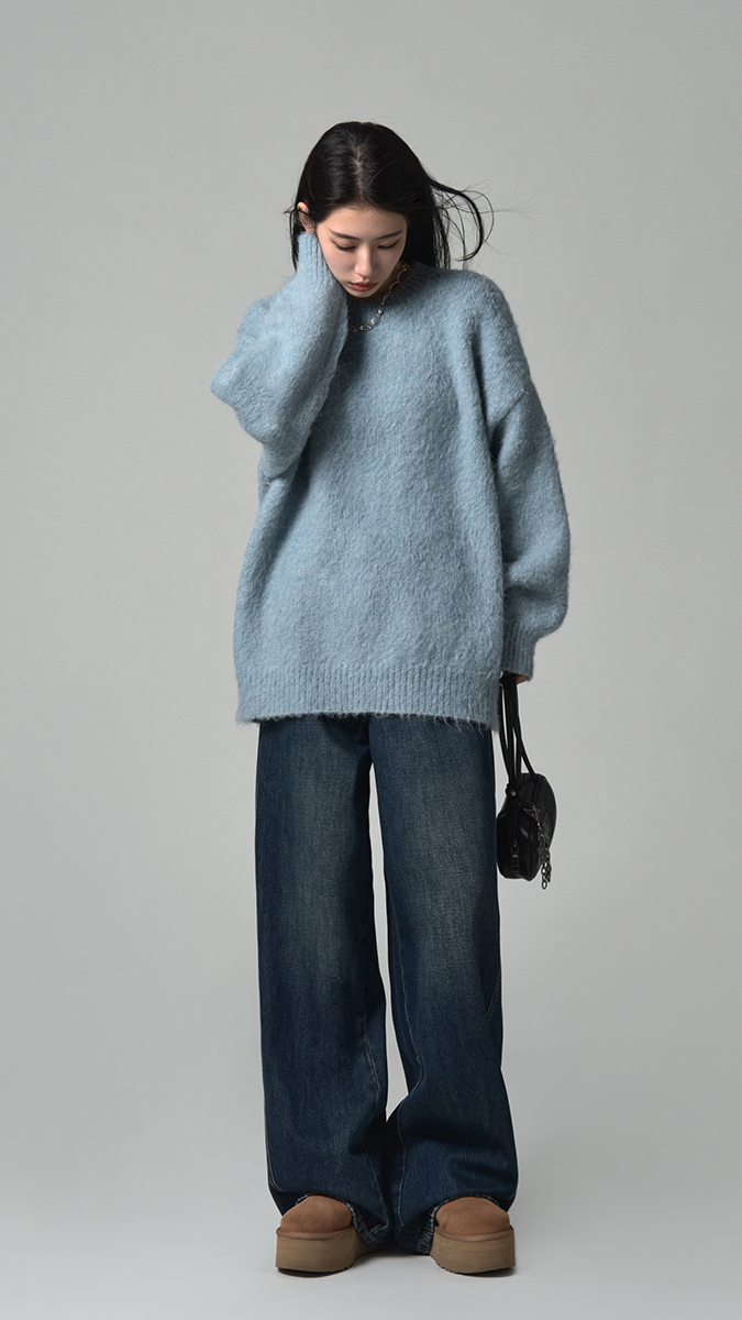SIXI四喜家秋冬 冰島雲霧 蓬鬆輕柔絨感圓領毛衣女顯瘦針織毛衫