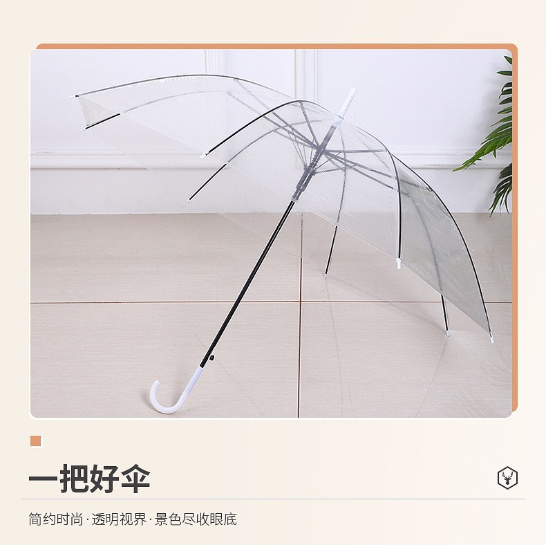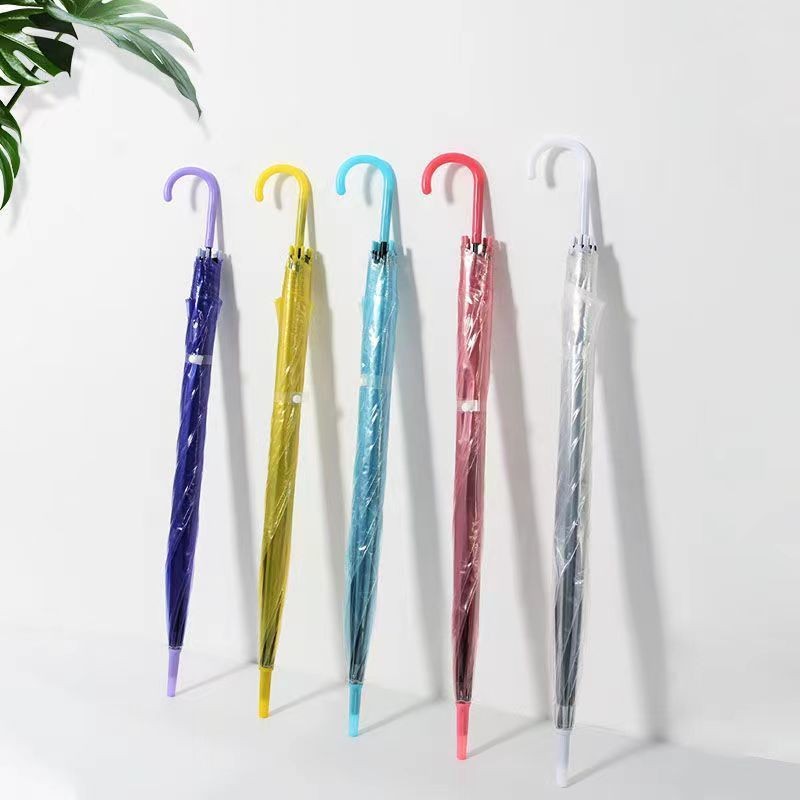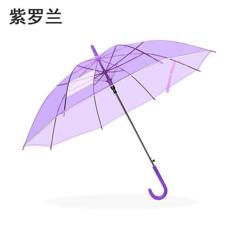 批发 l创意小清新长柄透明伞彩色直杆透明雨伞广告自动伞可加logo