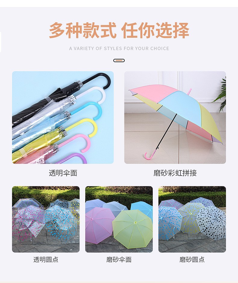 颜色 透明色,透明黑色,透明混色,磨砂白色,磨砂黑色,磨砂混色,彩虹西瓜伞