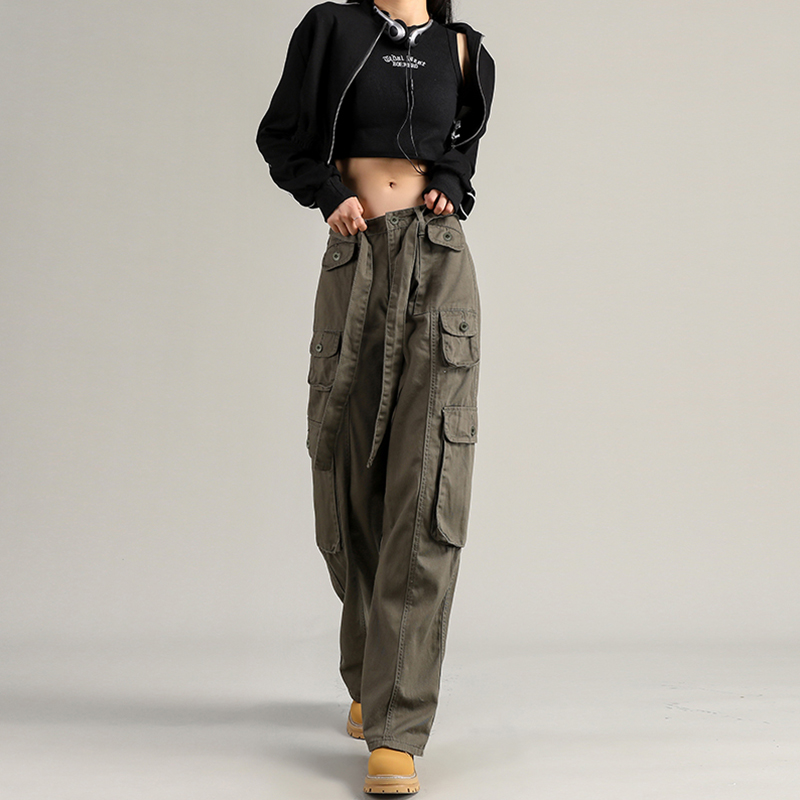 美式復古工裝褲女設計感高街多口袋嘻哈hiphop休閒直筒寬鬆vibe褲