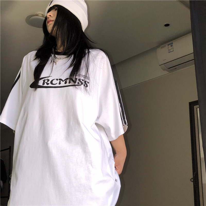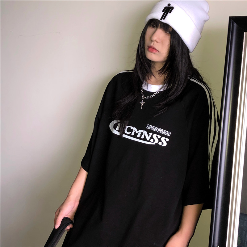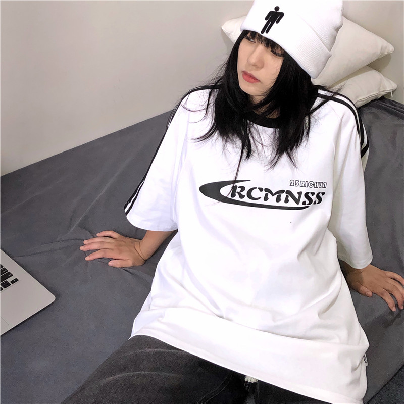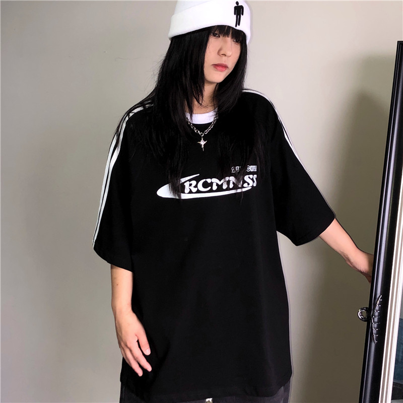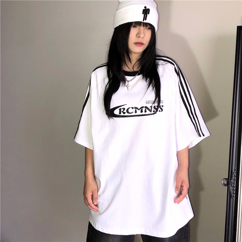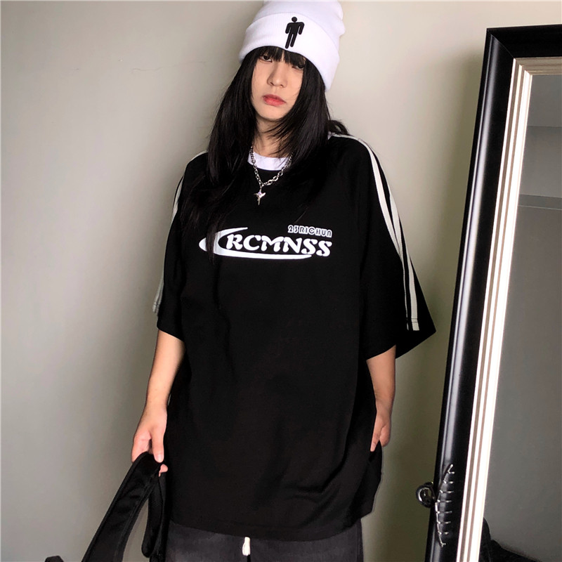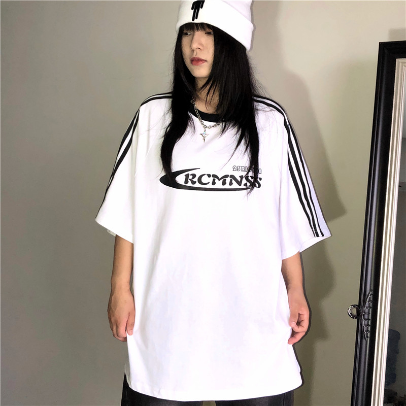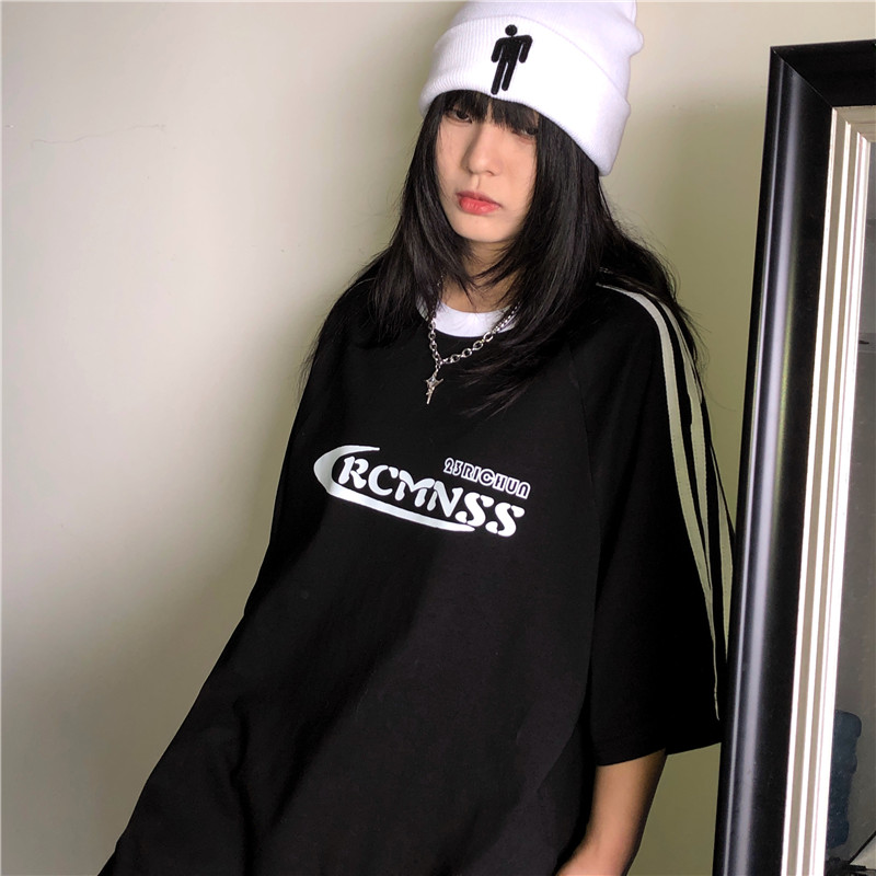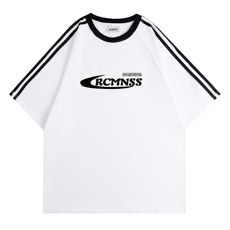 日春多元化 美式復古重磅撞色三條槓T恤插肩袖運動寬鬆情侶短袖潮