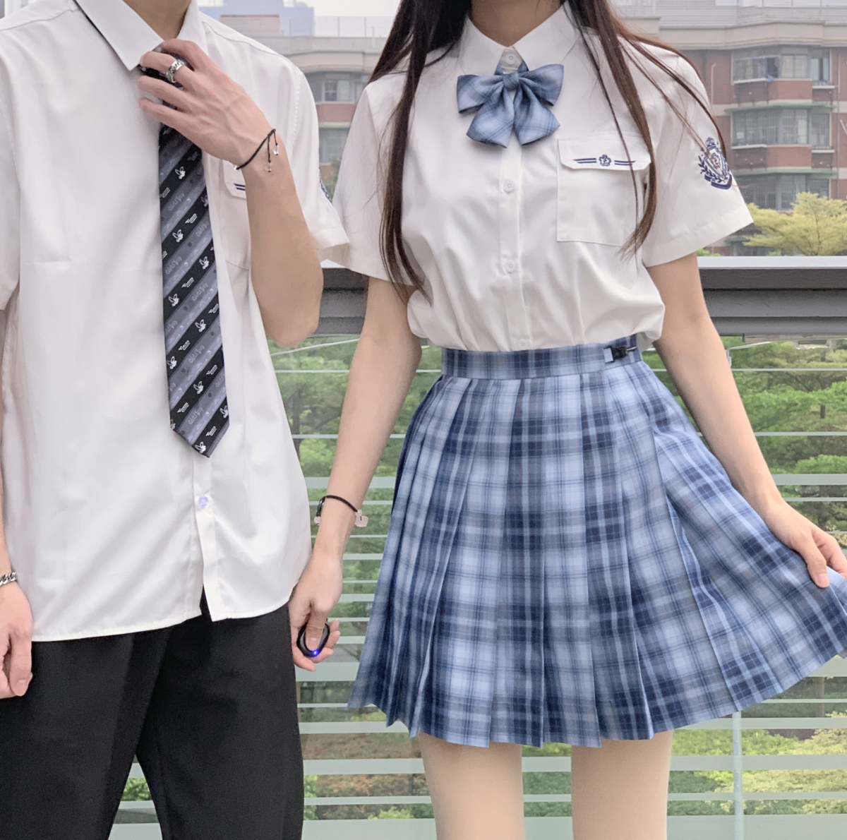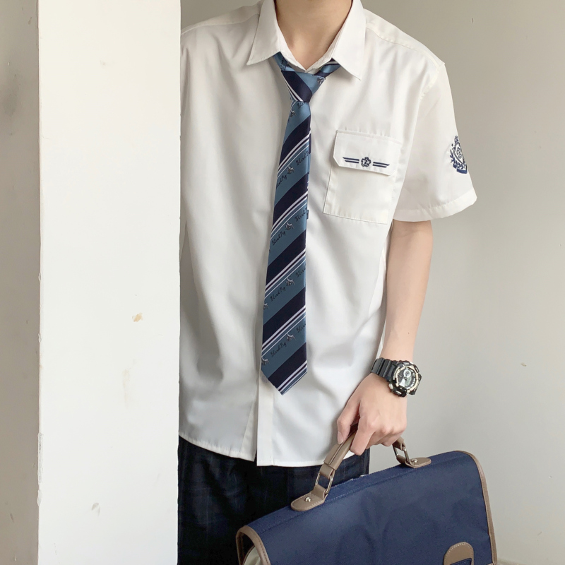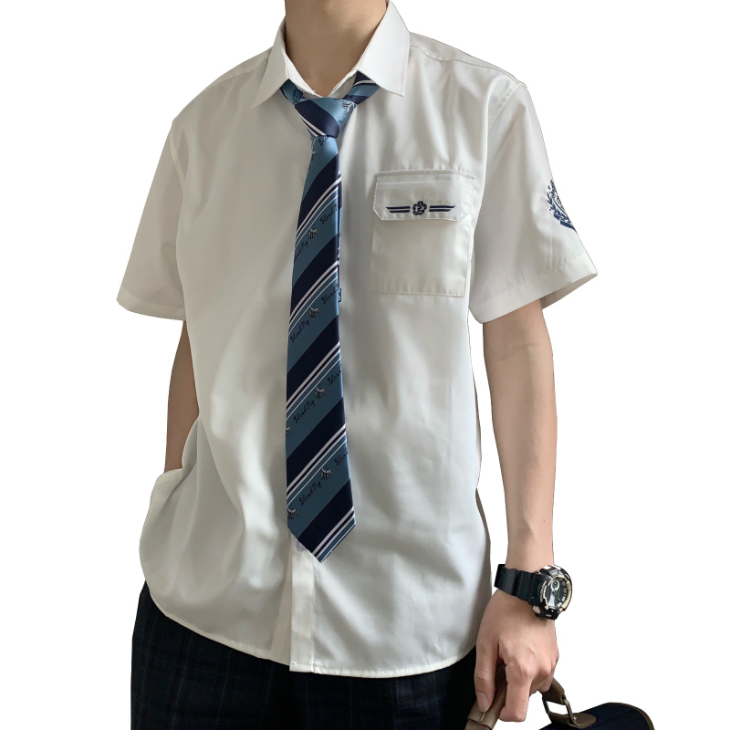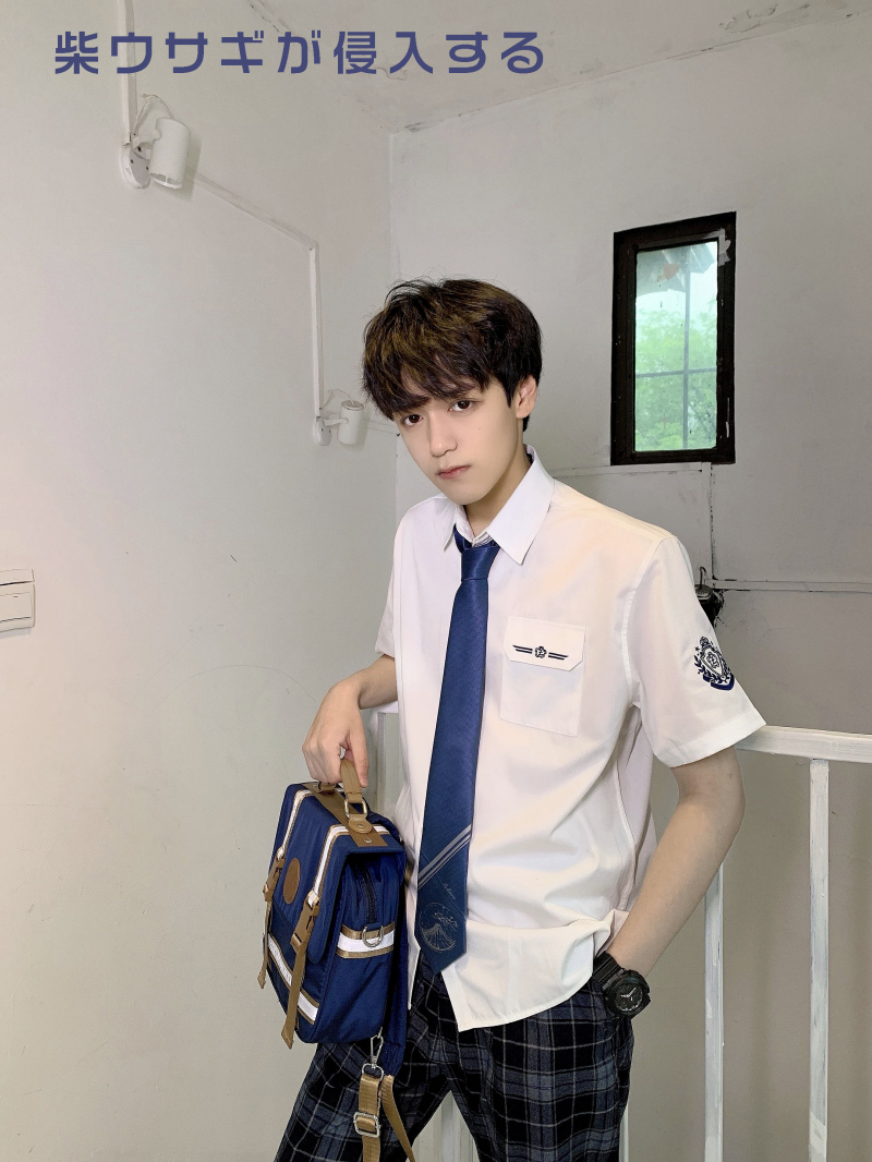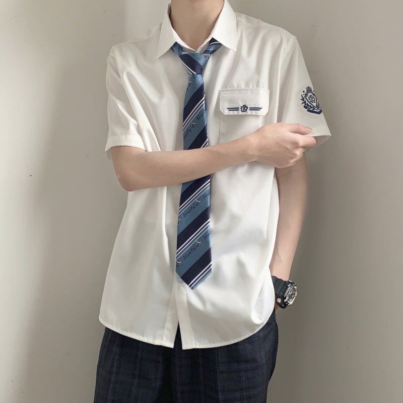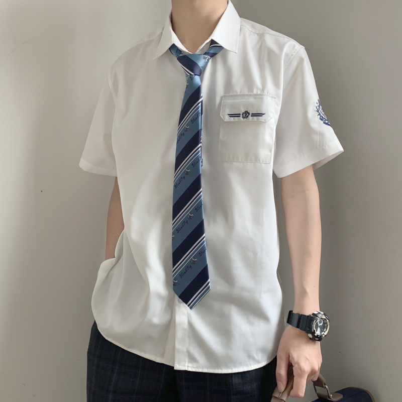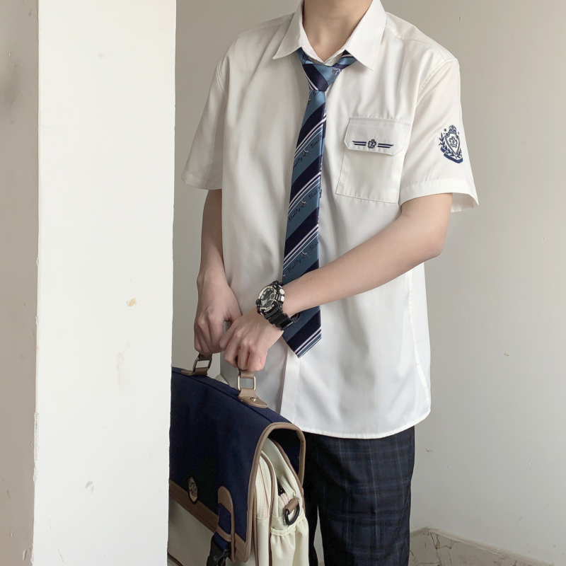 【現貨】崎治高 柴兔入侵原創刺繡JK/DK制服學院寬鬆情侶短袖襯衫