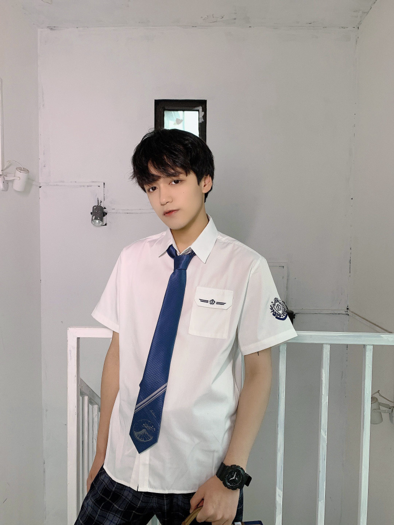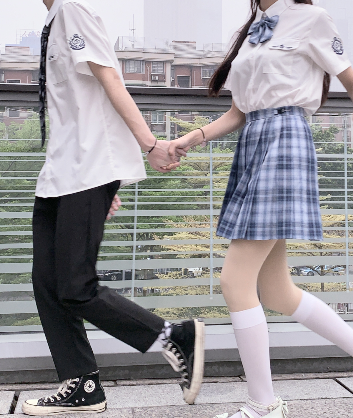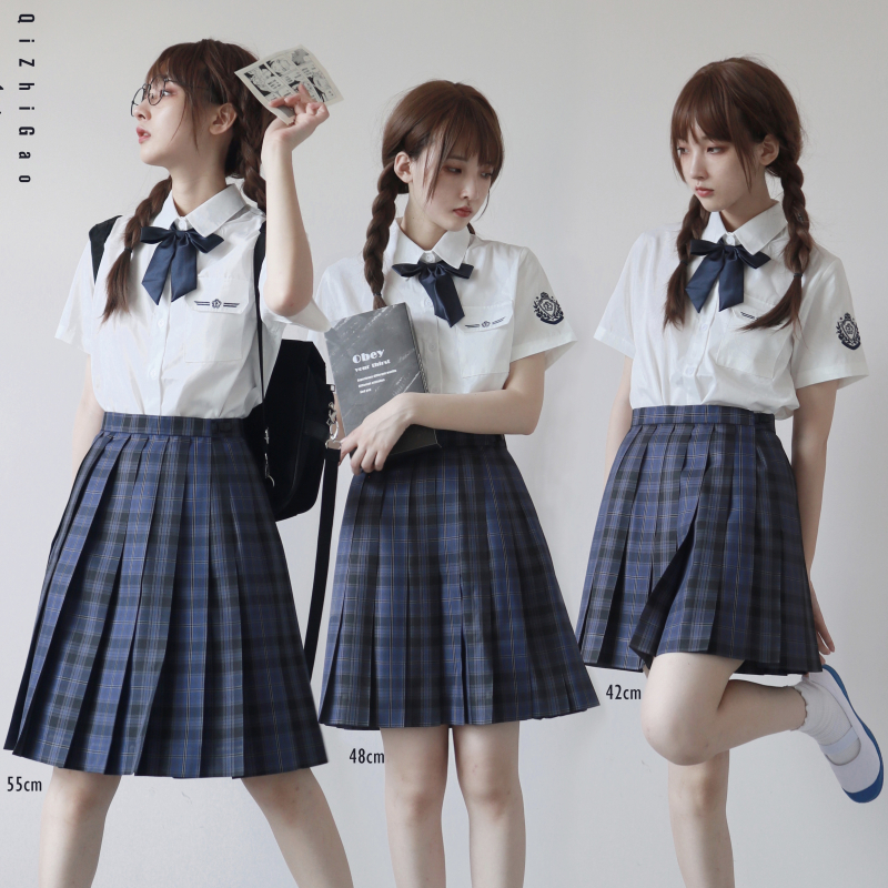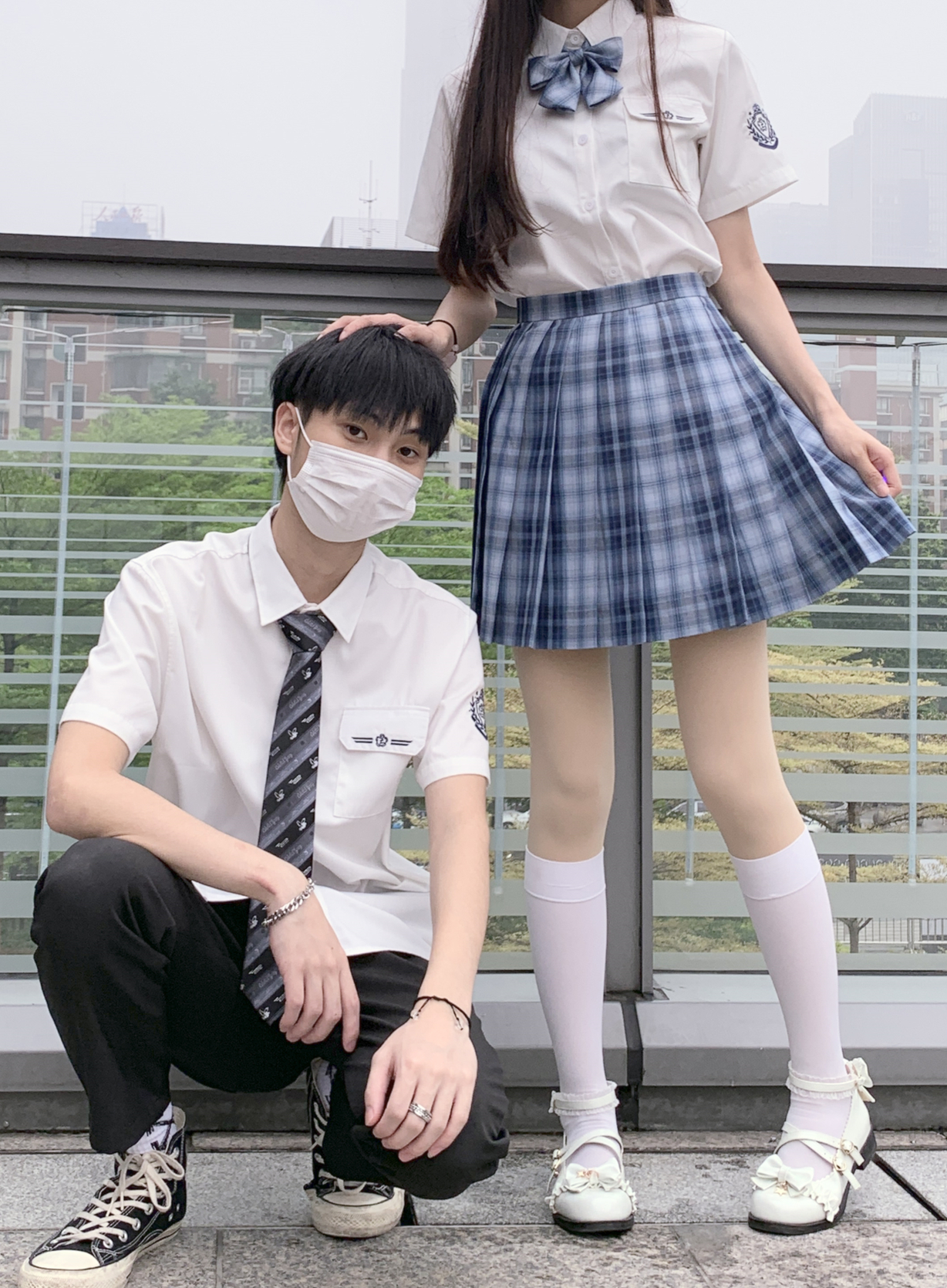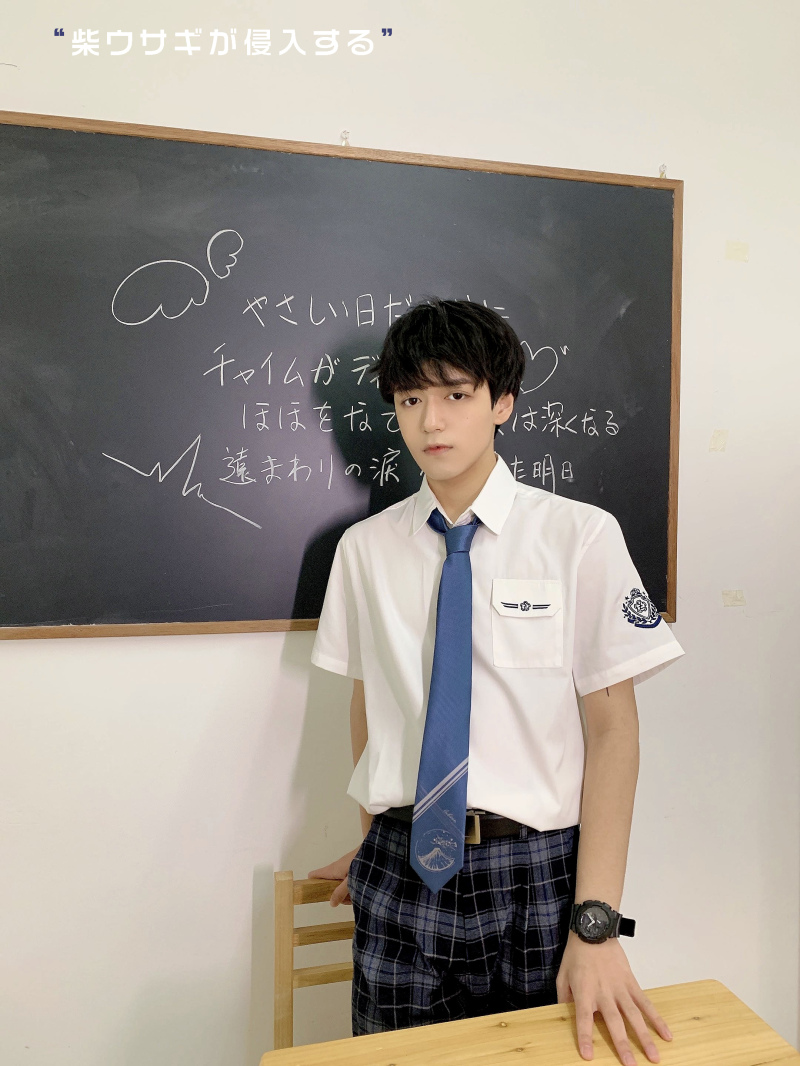 【現貨】崎治高 柴兔入侵原創刺繡JK/DK制服學院寬鬆情侶短袖襯衫