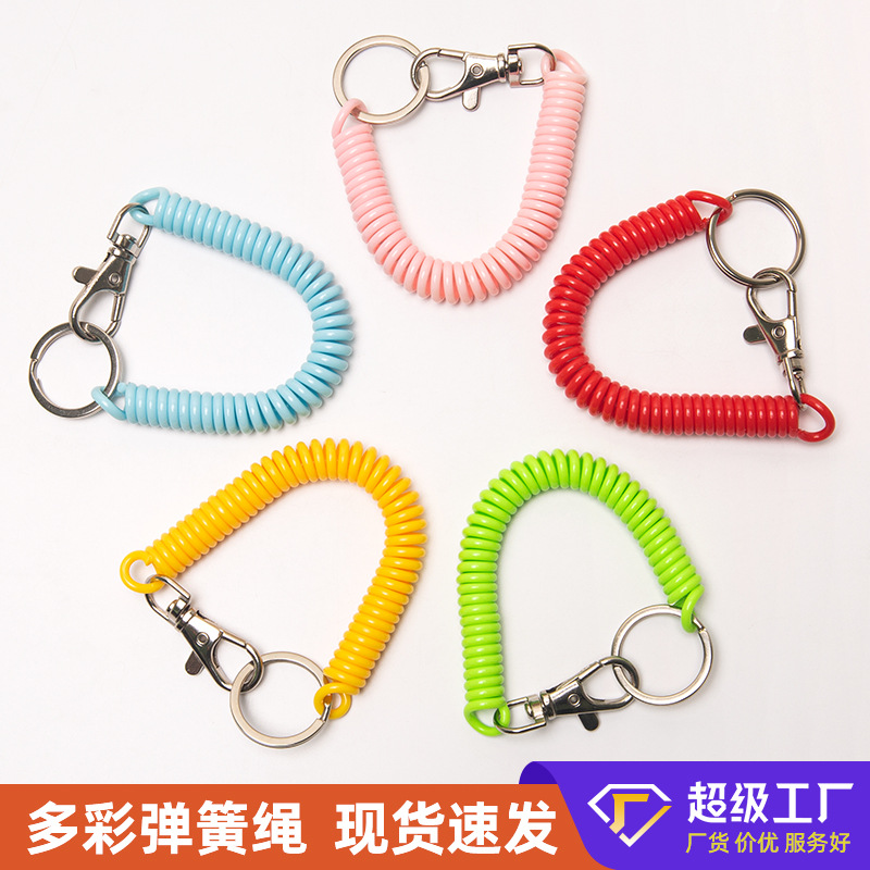 弹簧绳挂扣钥匙链电话线户外塑料包包防丢失手绳钥匙扣挂链绳批发