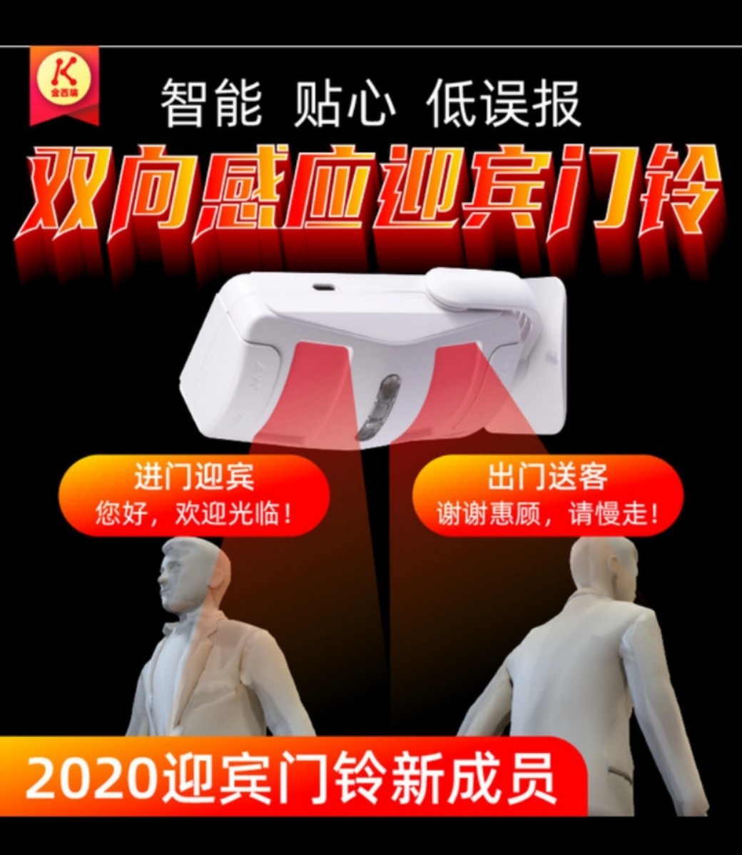双向红外线感应门铃迎宾器进来一个声音出去一个声音