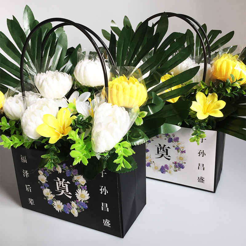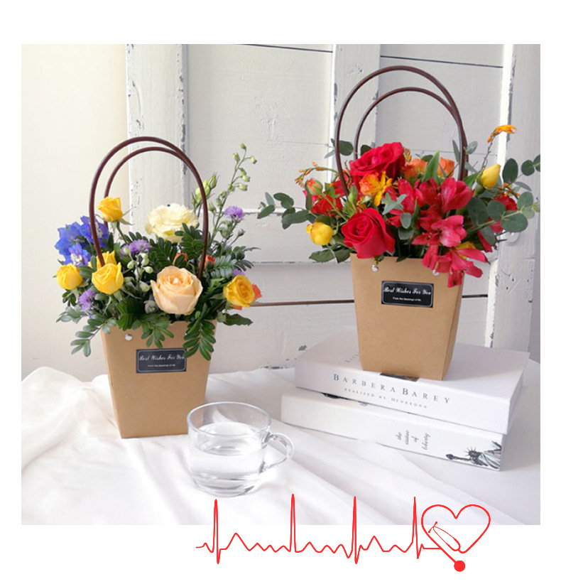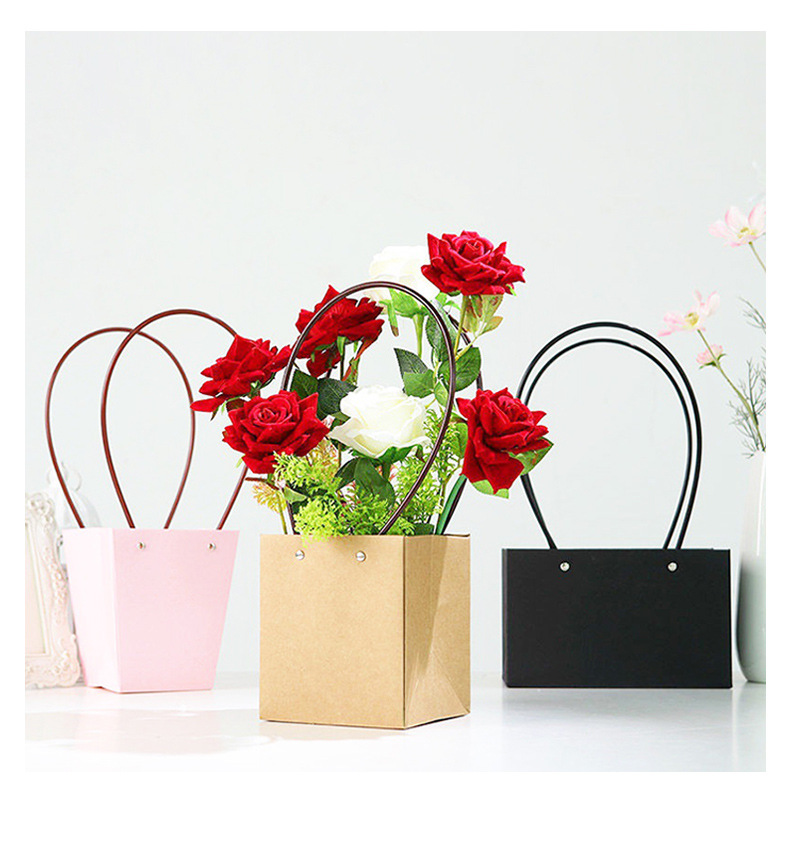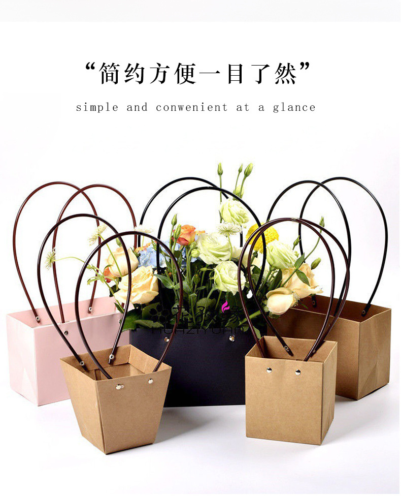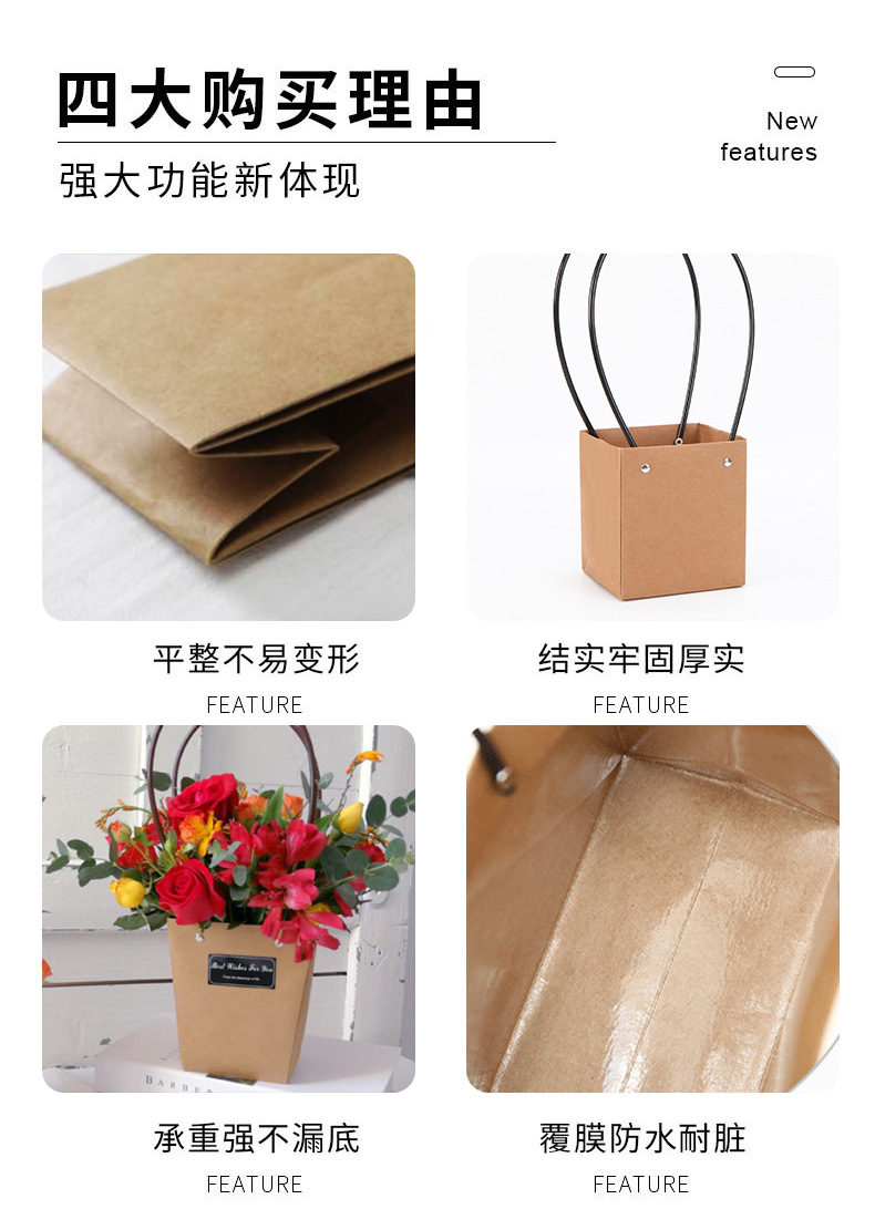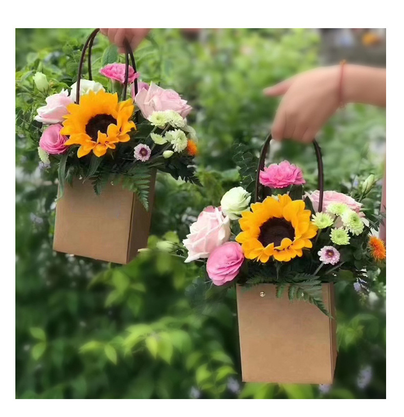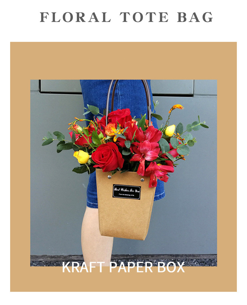 鲜花手提袋花艺包装材料花店花束插花袋覆膜防水牛皮纸花束手提袋