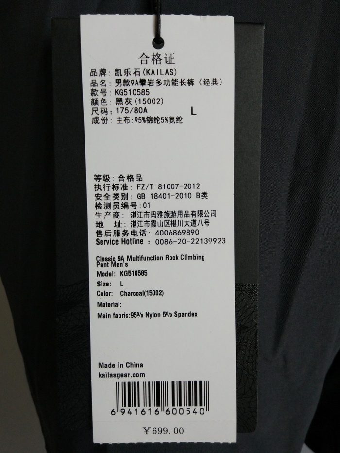 19款凱樂石KAILAS男女春夏戶外運動彈力9A攀巖速乾褲快乾長褲0585