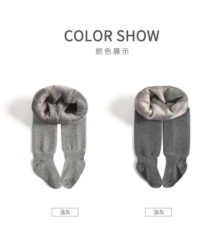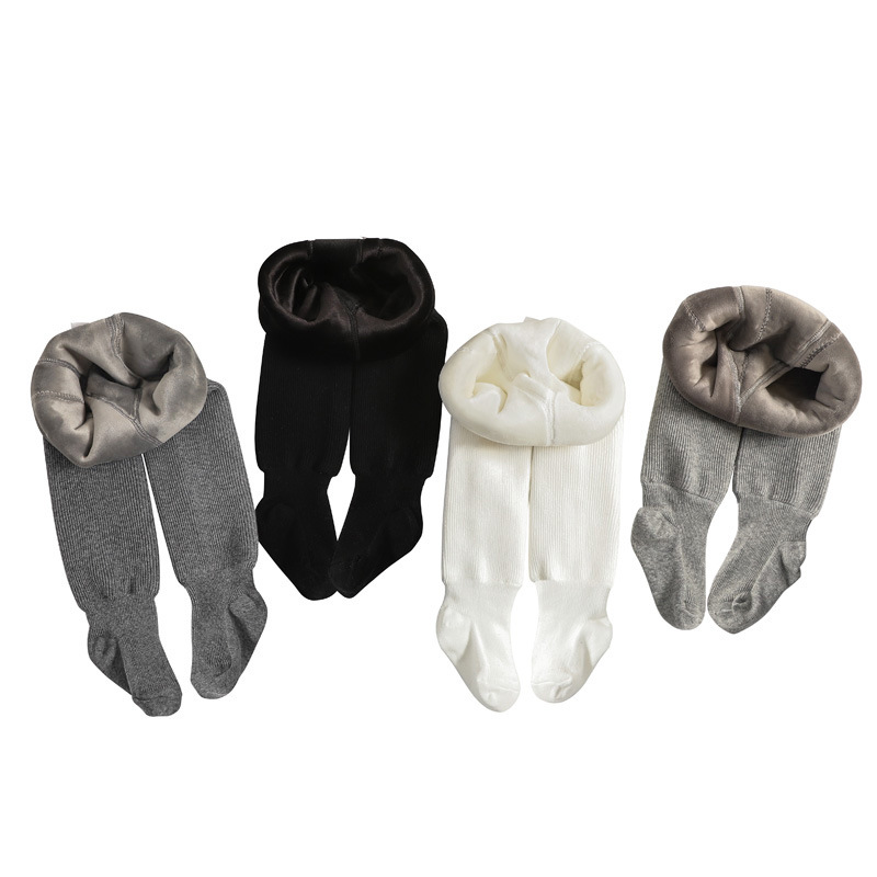 新款秋冬加厚加绒儿童连裤袜精梳棉女童纯色光板连脚裤宝宝打底裤