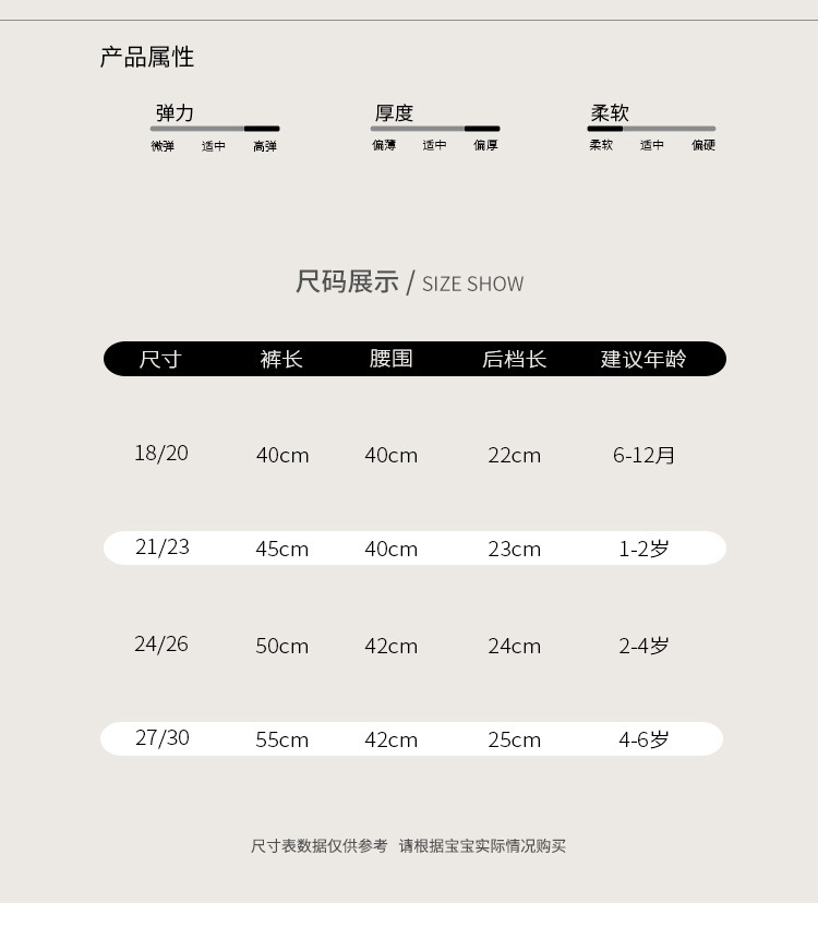 童袜尺码 18/20码6-12个月,21/23码1-2岁,24/26码2-4岁,27-30码4-6岁