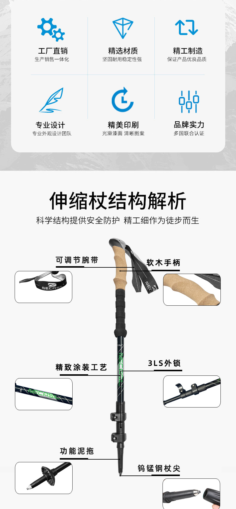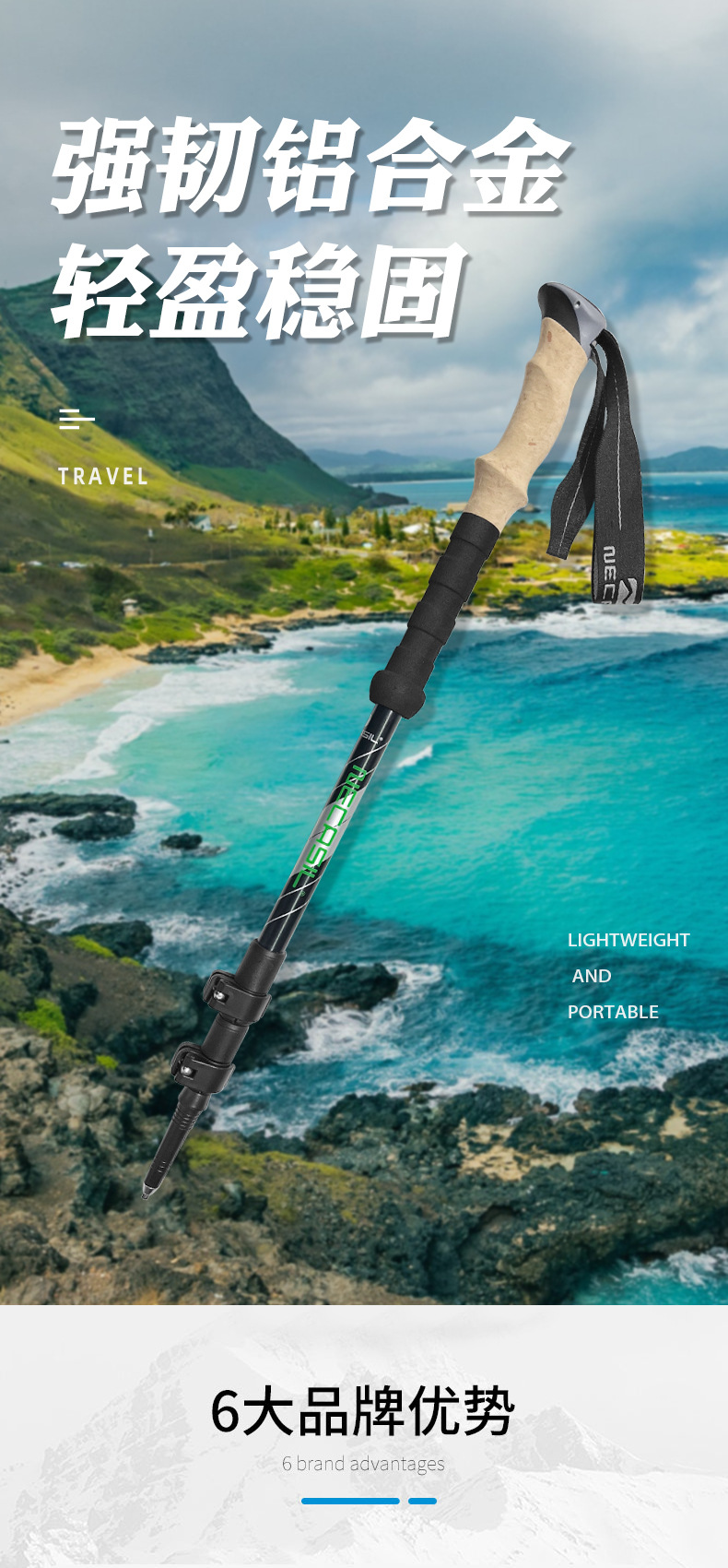 尼普森超輕摺疊登山杖鋁合金外鎖伸縮無碳素手杖戶外徒步爬山裝備