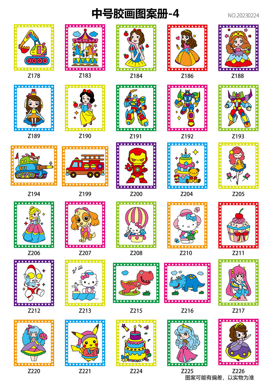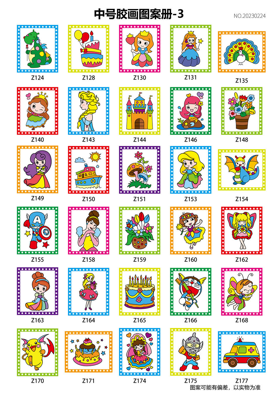 32k黑边胶画儿童DIY烤画 彩绘贴画工厂直供批发