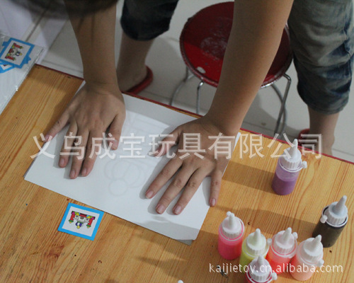 烤胶画是一种的深受少儿喜爱的手工制作产品。它是用彩色颜料(油膏)填入到带有边框的图案里,并用烤箱加以高温烘烤后,颜料即由液态凝固成胶皮状,并可从纸上或铝板上揭下贴在玻璃窗户、镜子、磁砖等光滑表面处装饰的一种画艺作品。产品颜色艳丽,制作简单,作品完成后可粘贴与玻璃、冰箱等光滑物体表面,丰富孩子们的个性空间,深受小朋友们喜欢。